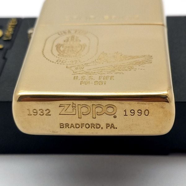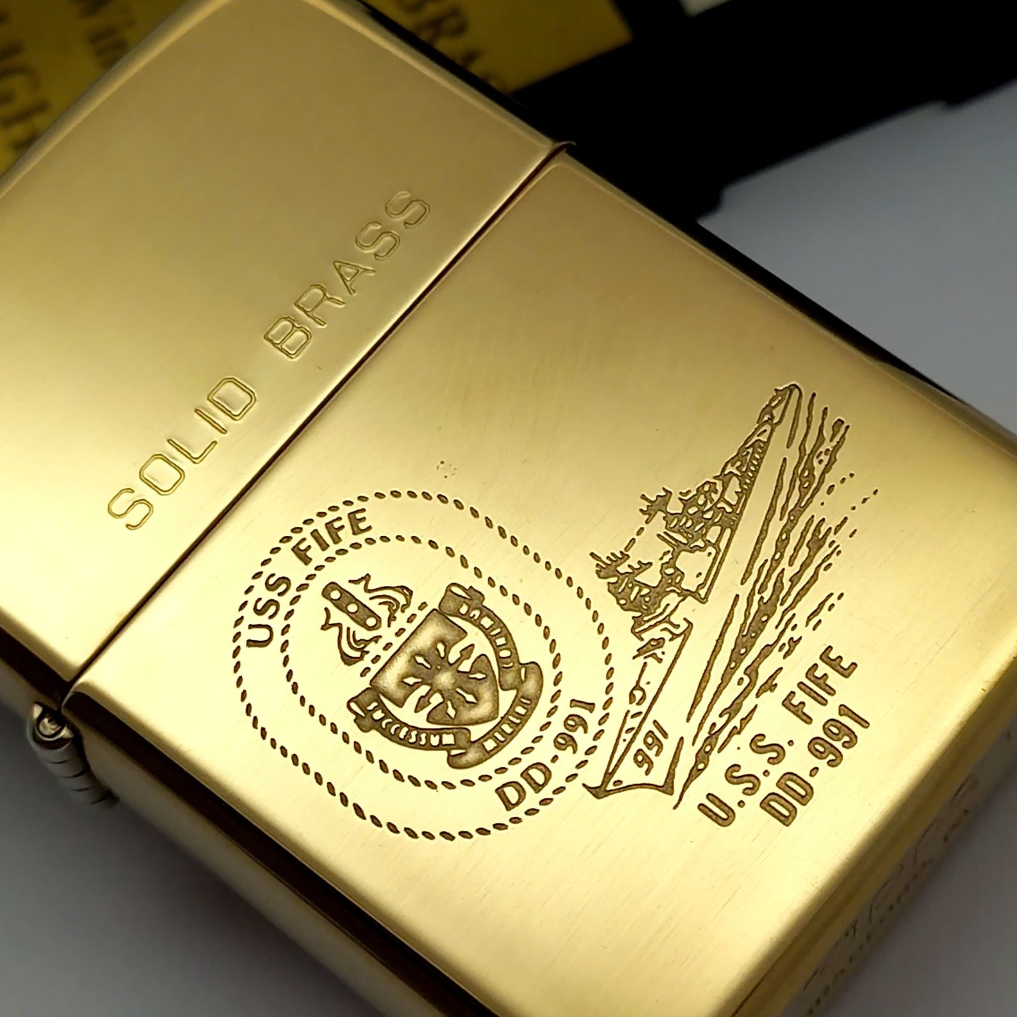 Bật Lửa Zippo Đồng Khối Solid Brass Chu Niên 1932 - 1990 Khắc Ăn Mòn Chủ Đề Tầu Chiến Hiếm Gặp ZQH185