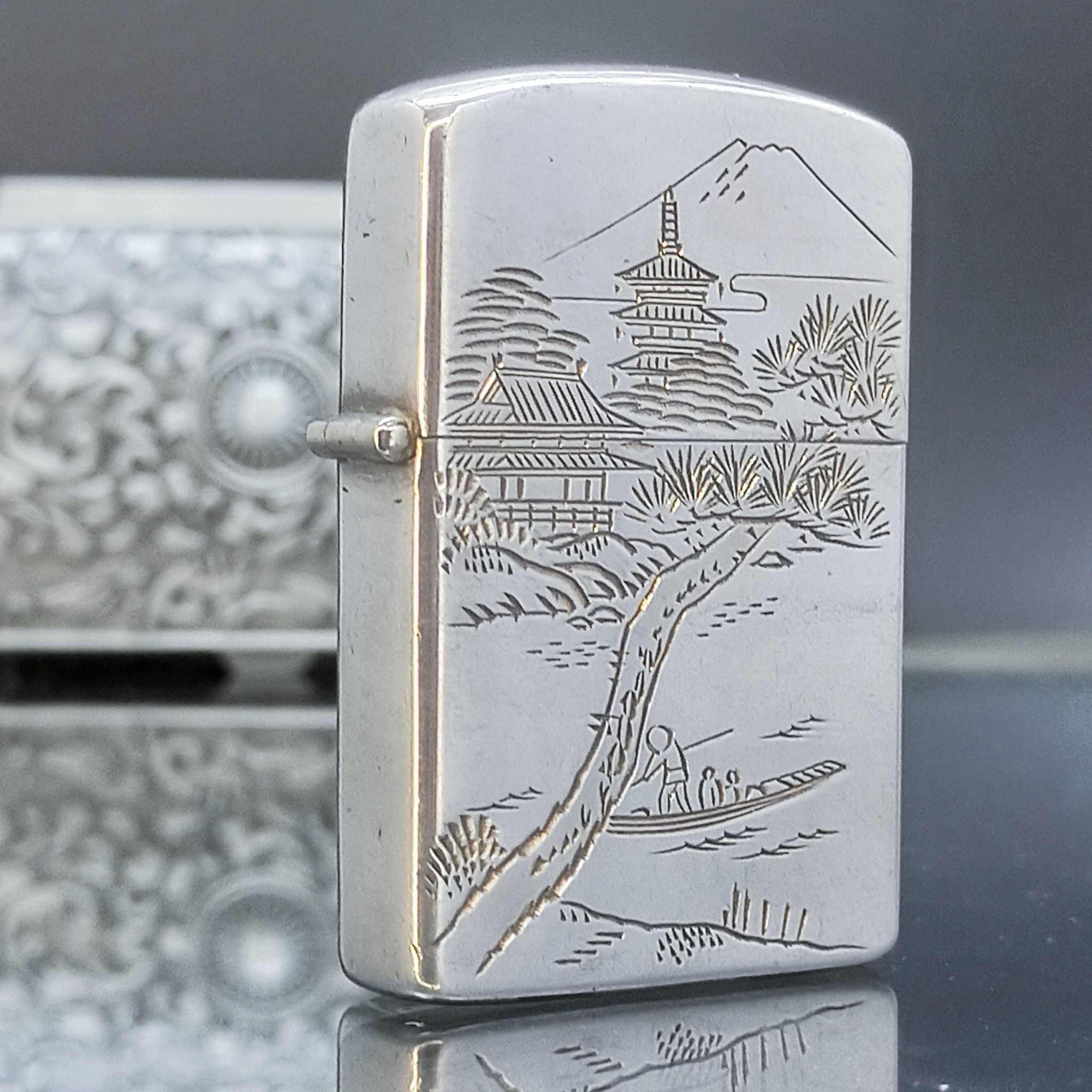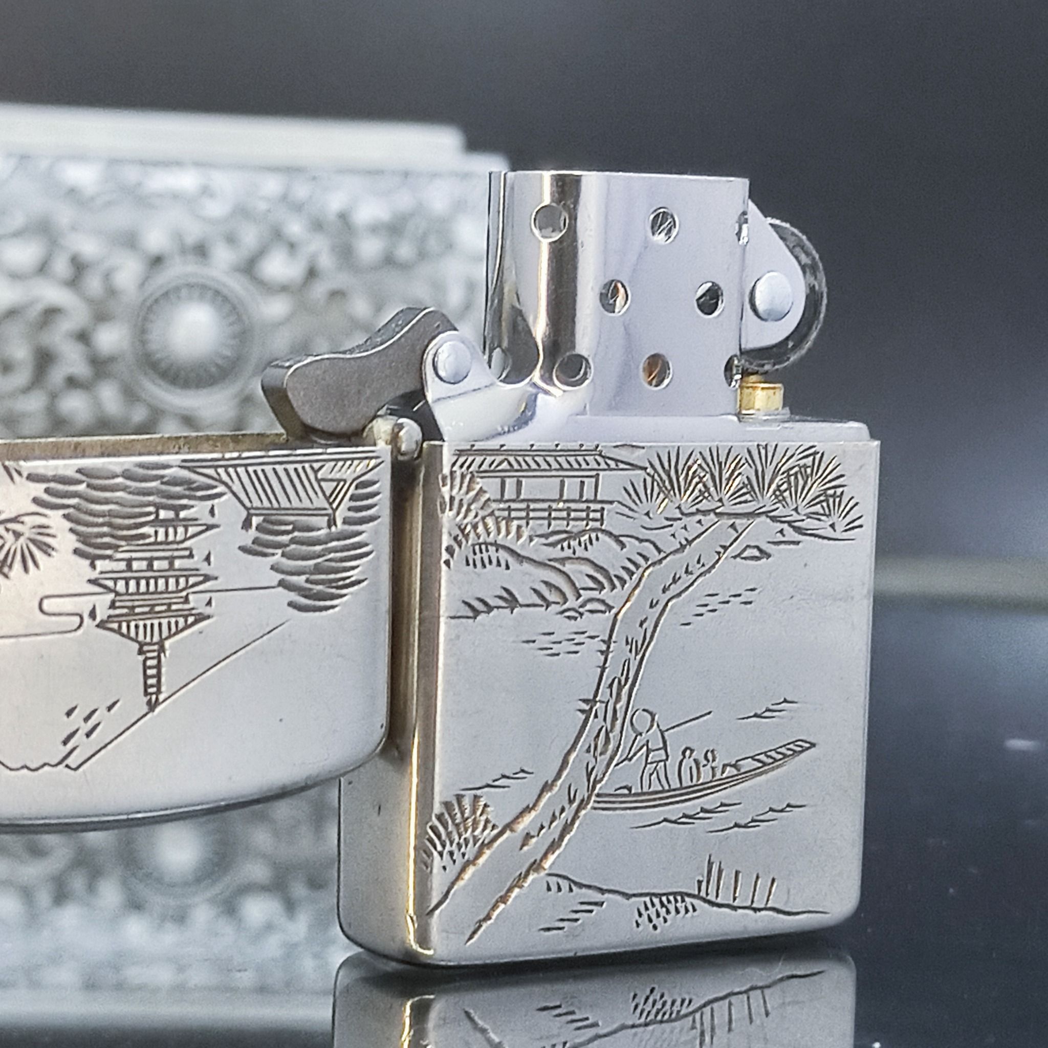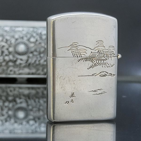 Bật Lửa Bạc Nhật Đúc Nguyên Khối SX Thủ Công Thập Niên 1950s BK17
