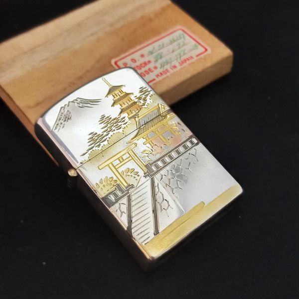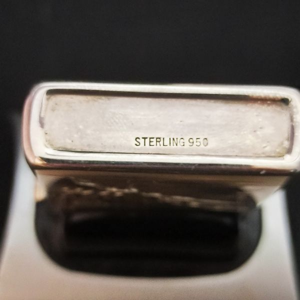 BẬT LỬA BẠC NHẬT KHẢM TAM KHÍ ĐÚC NGUYÊN KHỐI STERLING 950 KHẮC THỦ CÔNG HOA VĂN CỰC HIẾM SX THẬP NIÊN 1940S ZQH85
