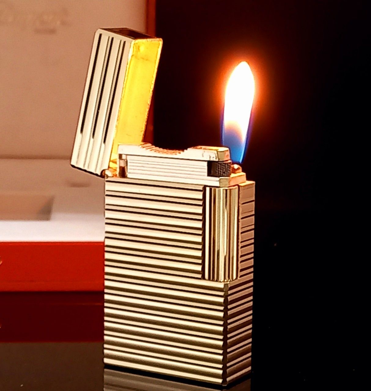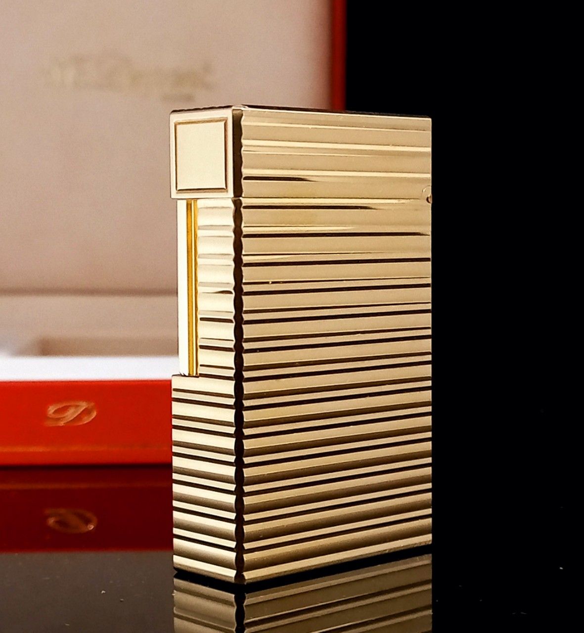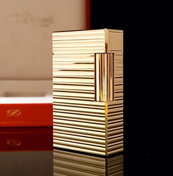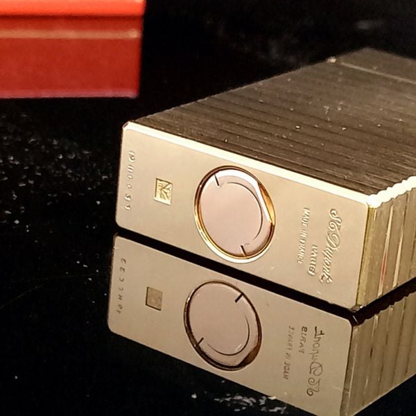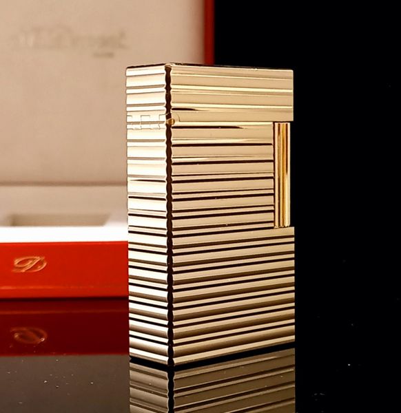 Bật Lửa Dupont Bọc Vàng Hồng Vân Sọc Ngang 1 Lỗ Phom Cao Cực Hiếm Đẹp DP113