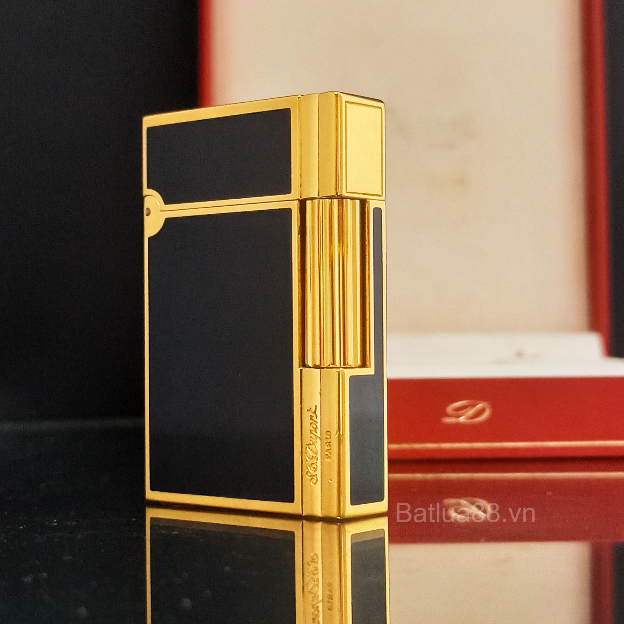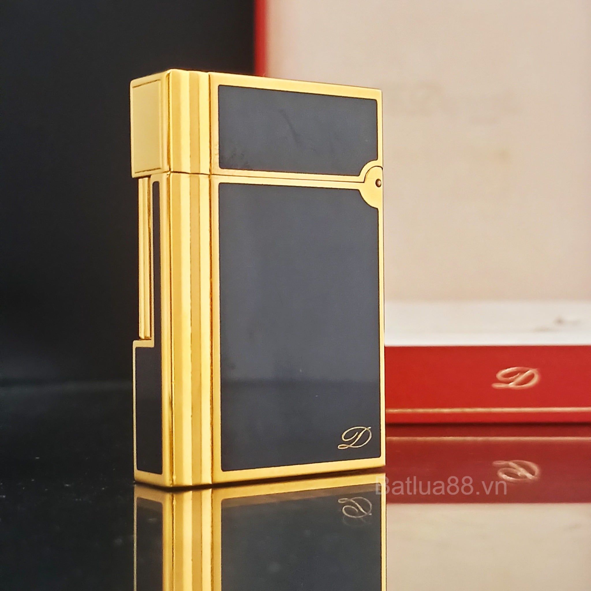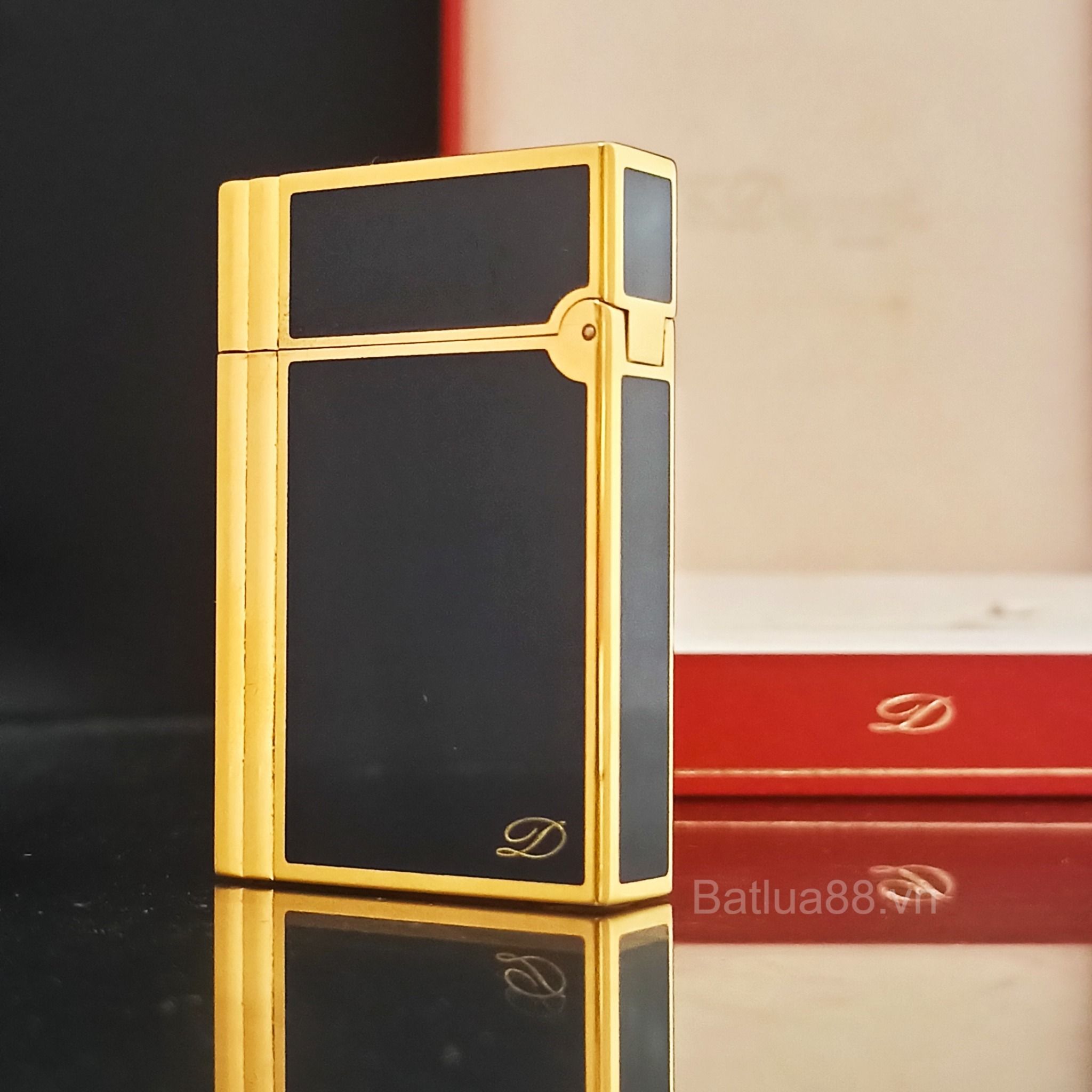 Bật Lửa Dupont Gasby Bọc Vàng Men Đen 2 Lỗ DP121