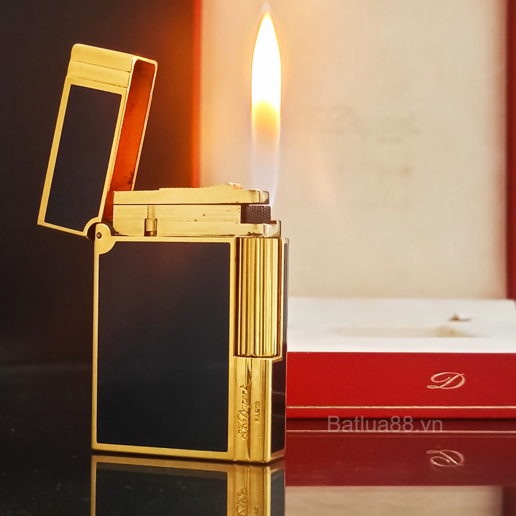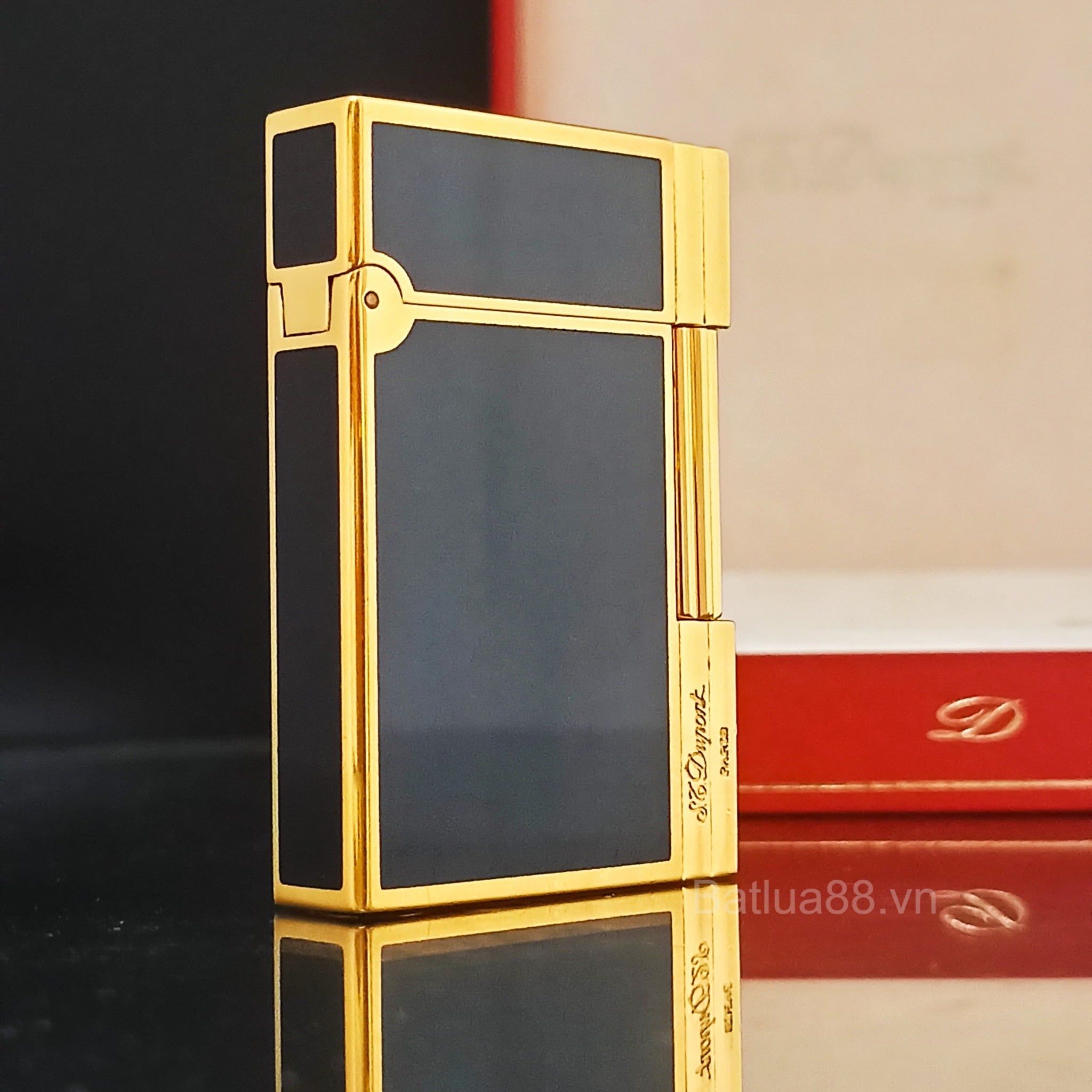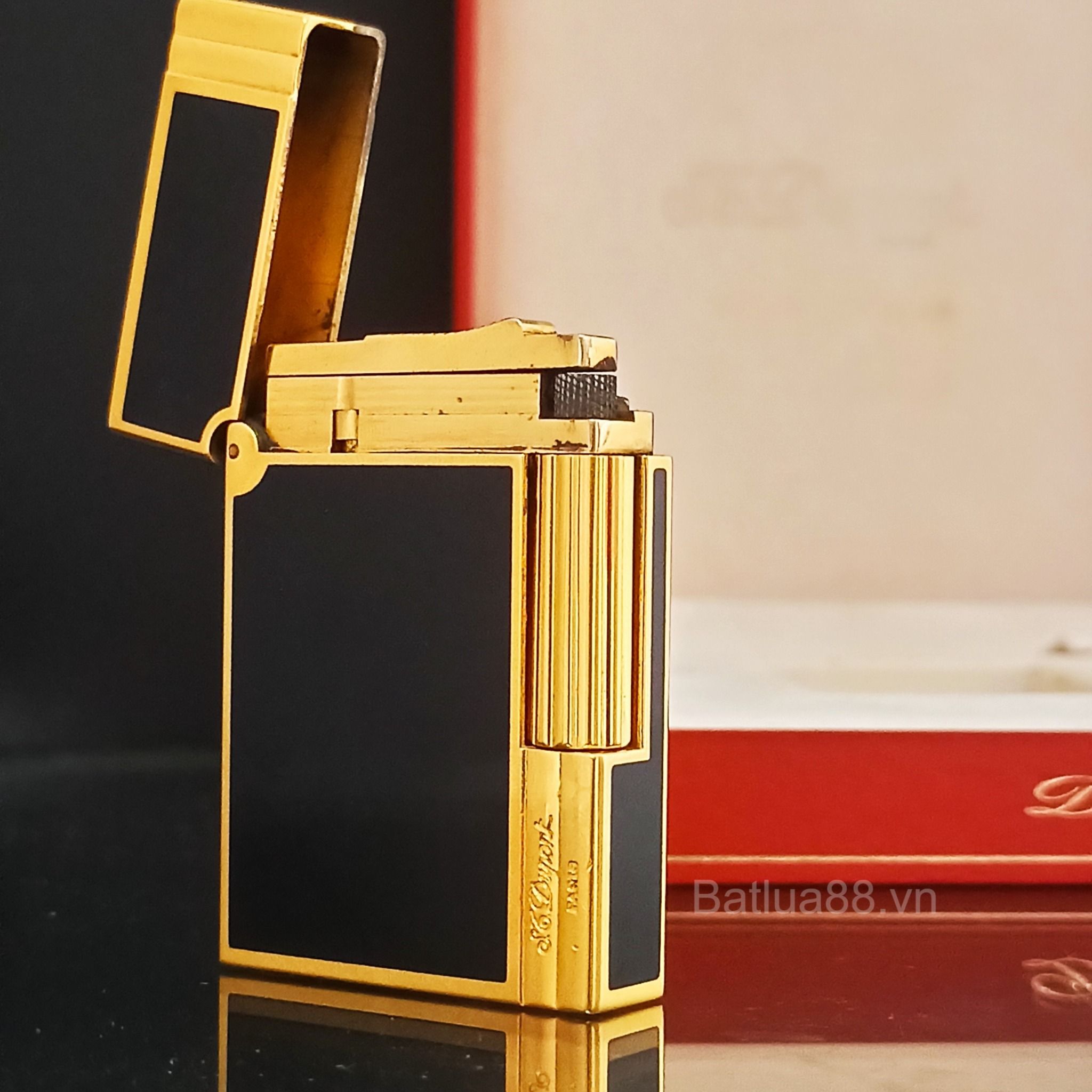Bật Lửa Dupont Gasby Bọc Vàng Men Đen 2 Lỗ DP121