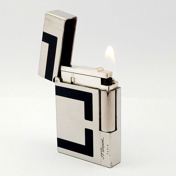 Bật Lửa Dupont Ligne 2 Phom Gasby Bọc Bạc Phủ Men Đen Họa Tiết DP165
