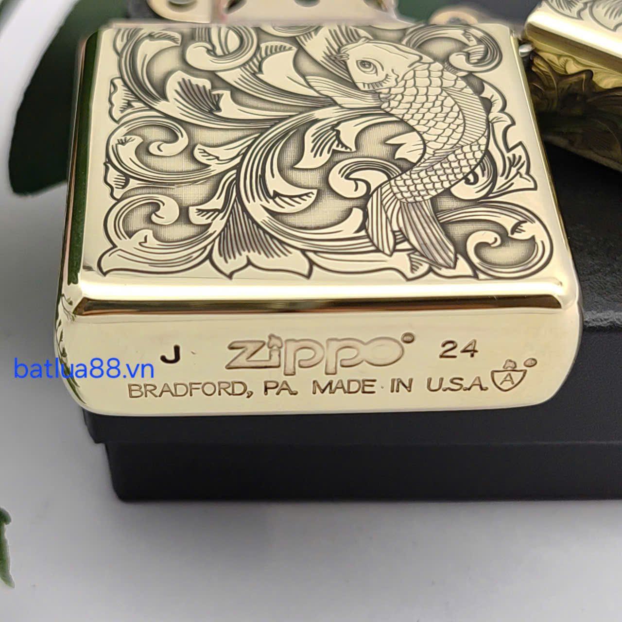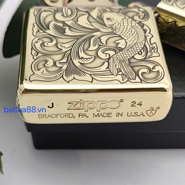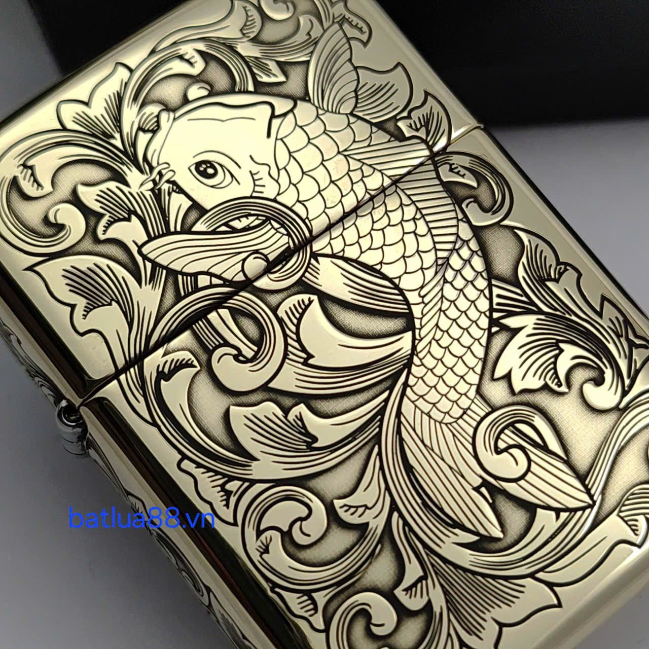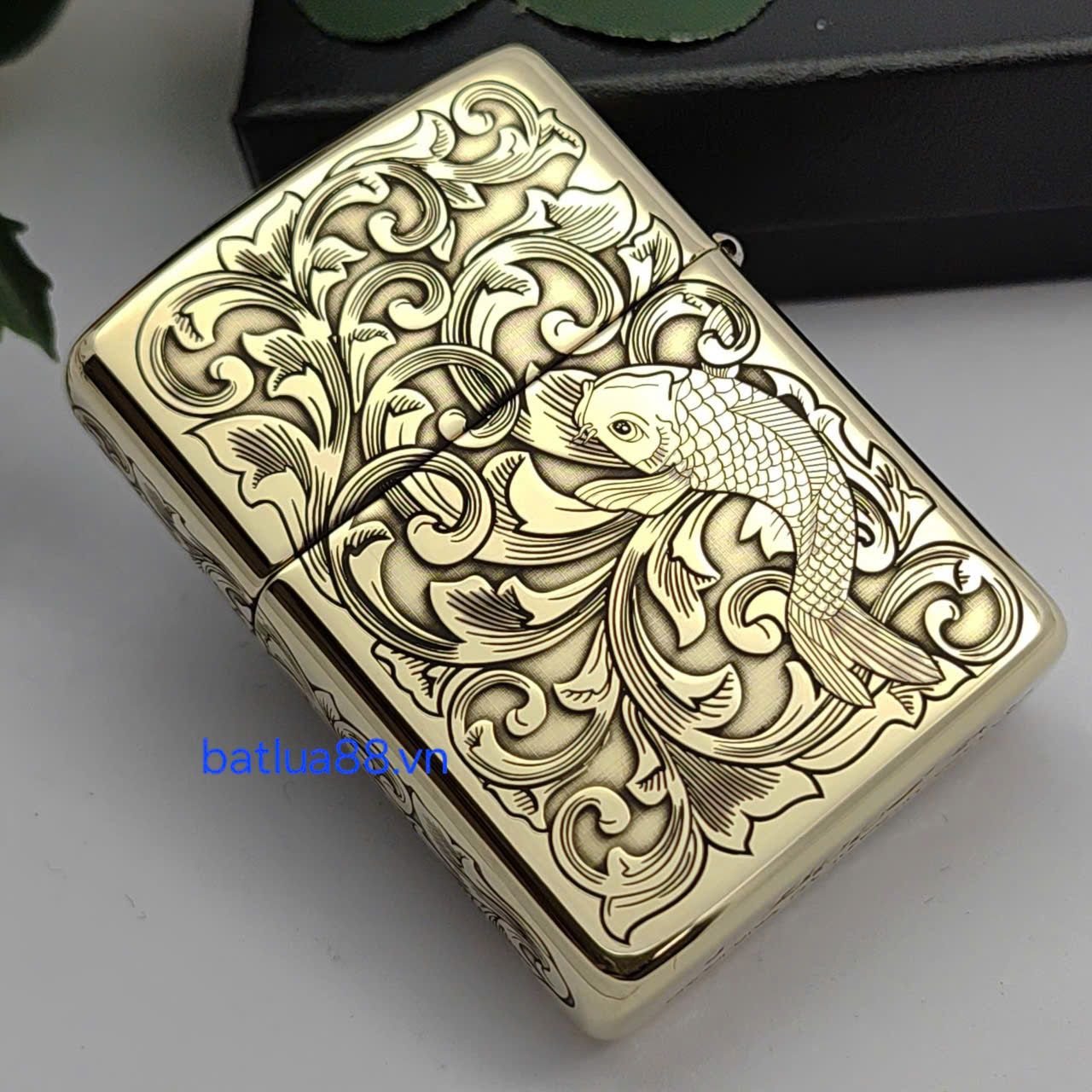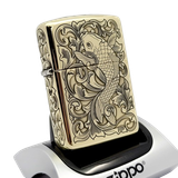 Bật Lửa Zippo Armor Đồng Nguyên Khối Khắc Chủ Đề Cá Chép Hoa Văn ZKB125