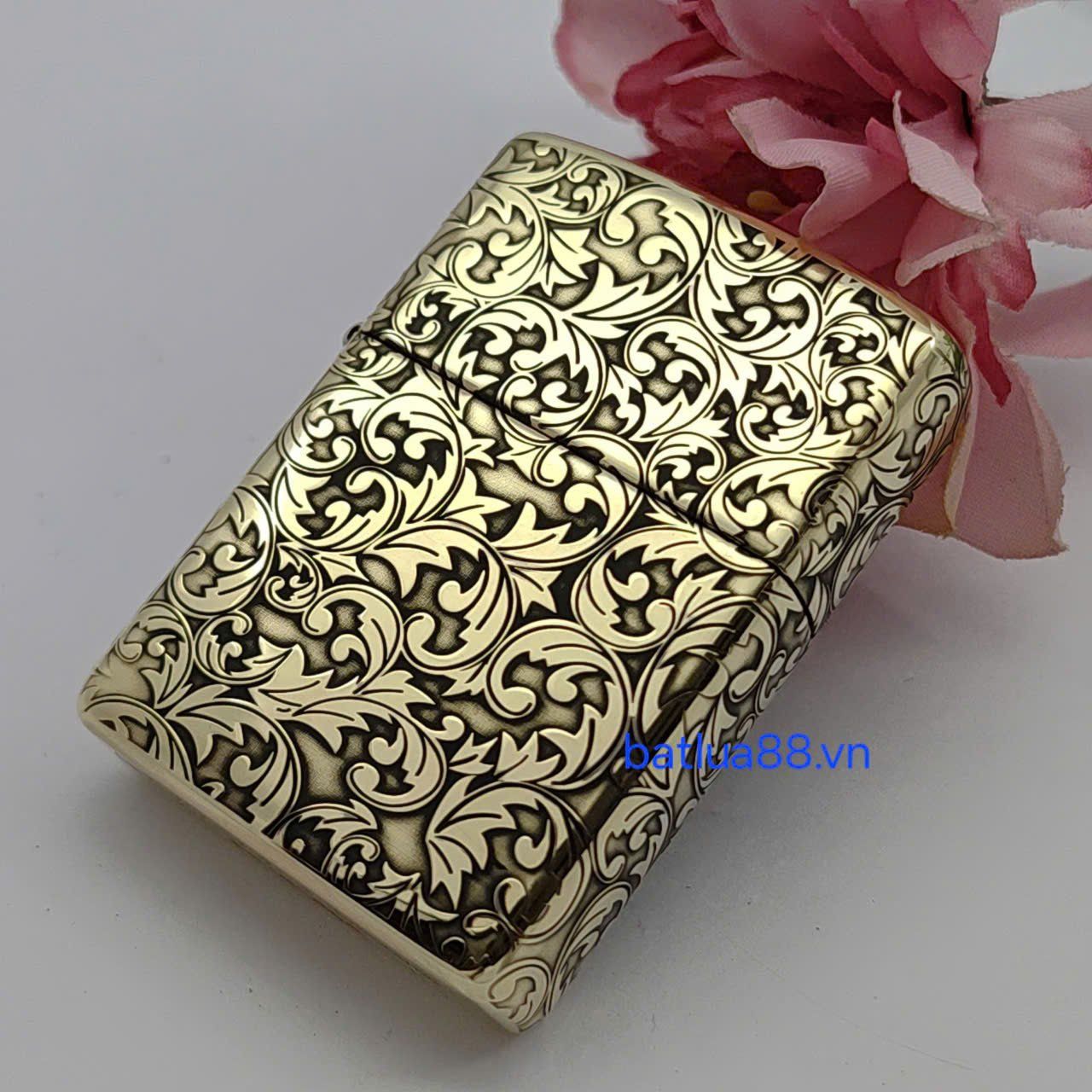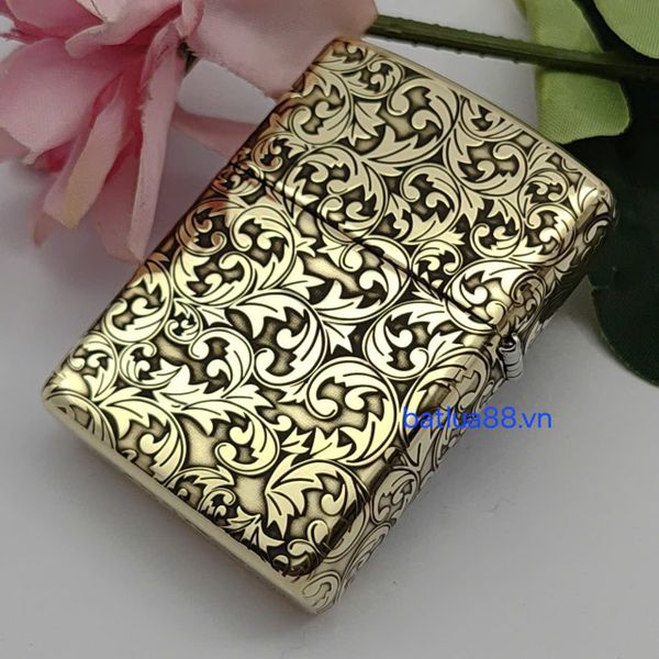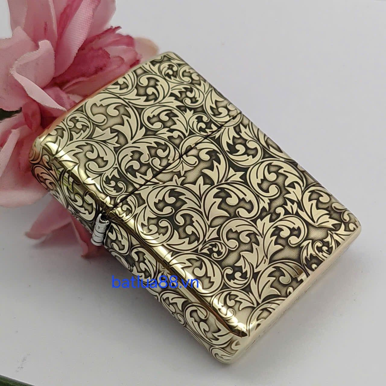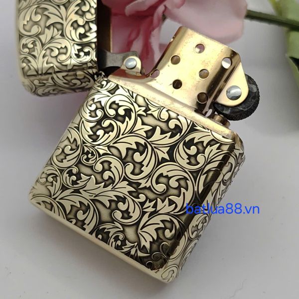 Bật Lửa Zippo Armor Đồng Nguyên Khối Khắc Chủ Đề Hoa Văn Dây Leo ZKB126