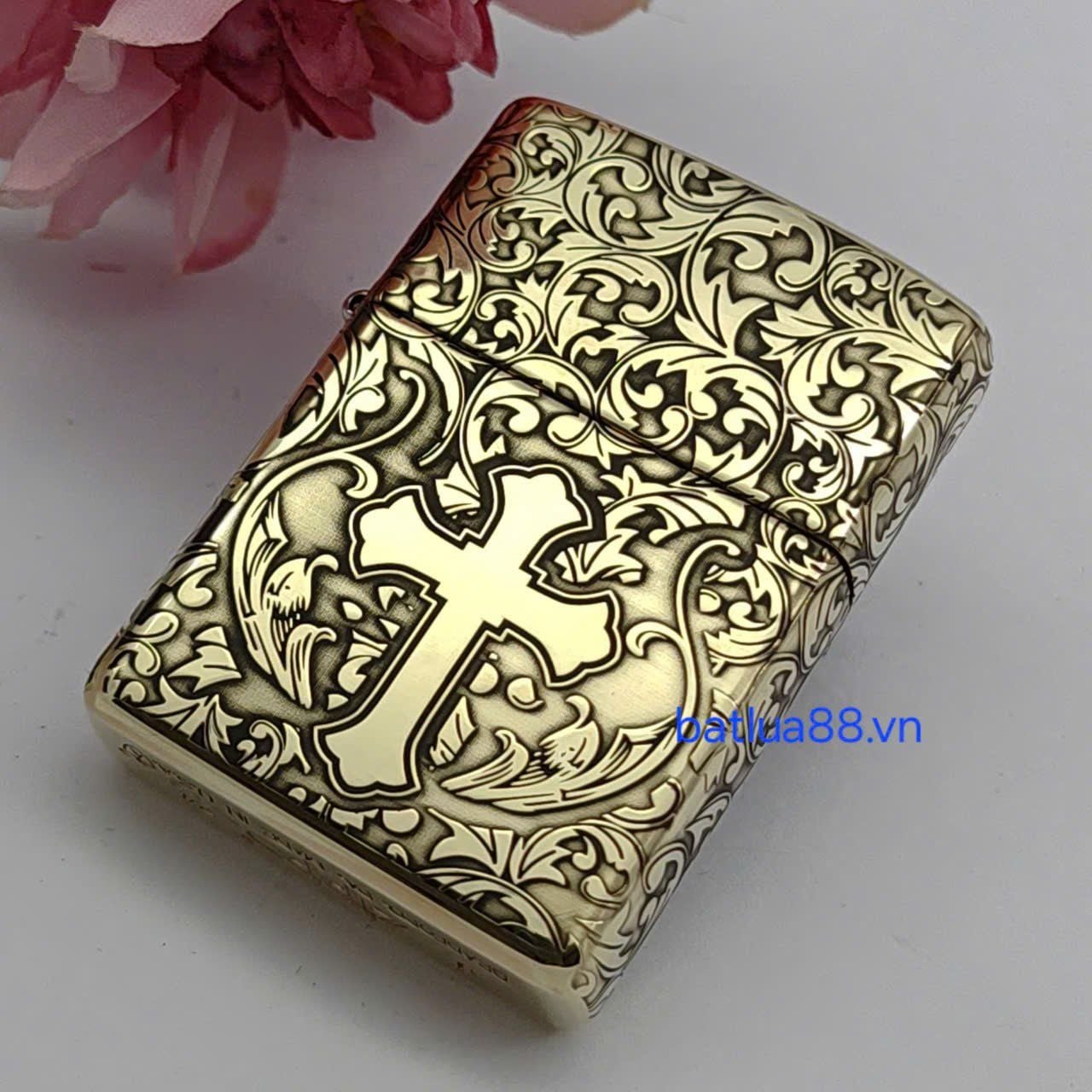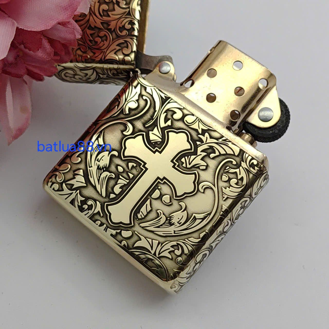 Bật Lửa Zippo Armor Đồng Nguyên Khối Khắc Chủ Đề Hoa Văn Thánh Giá ZKB127