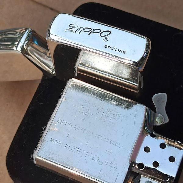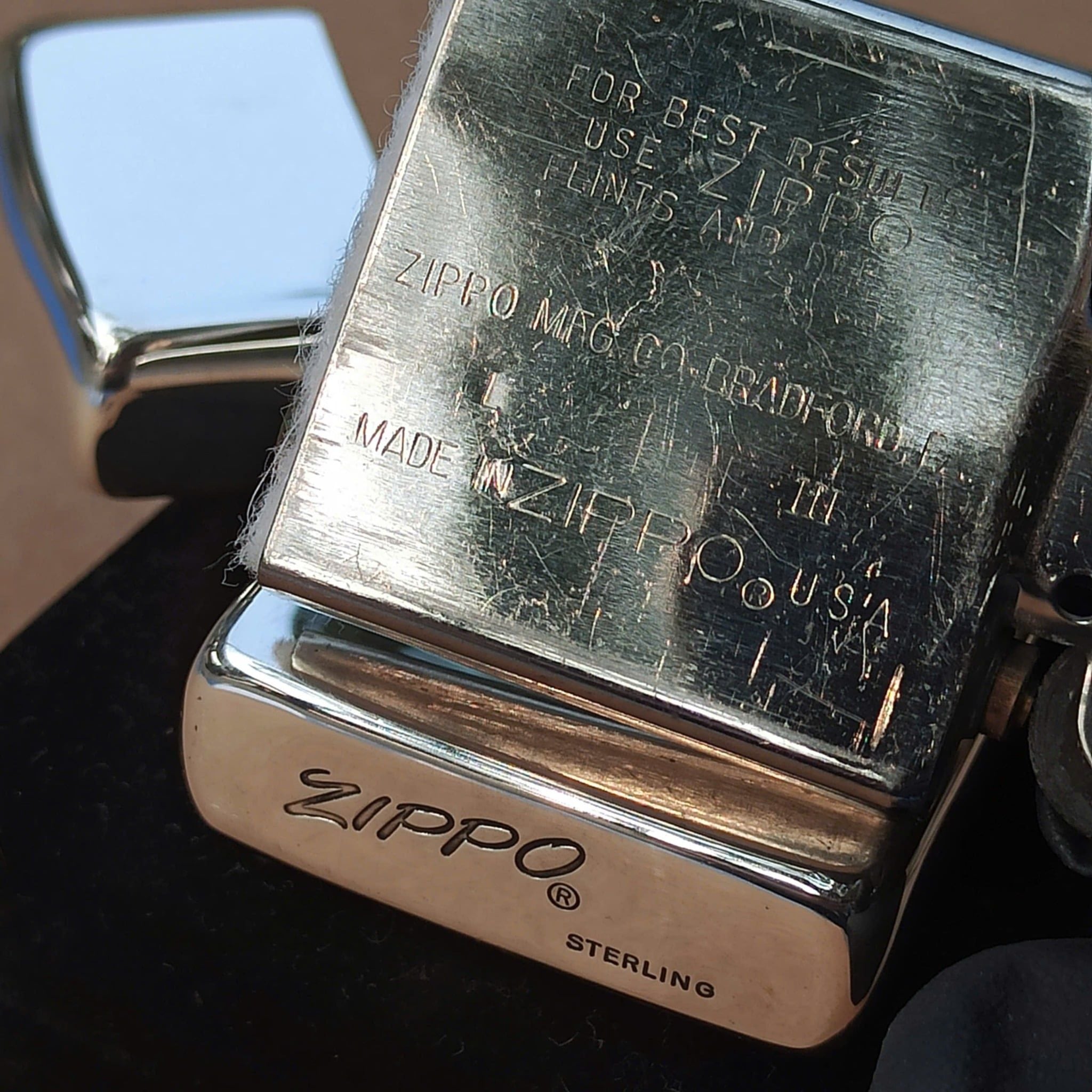 Bật Lửa Zippo Bạc Đúc Nguyên Khối Sterling Đời Cổ Chữ Xéo Năm Thập Niên 1980s ZBU26