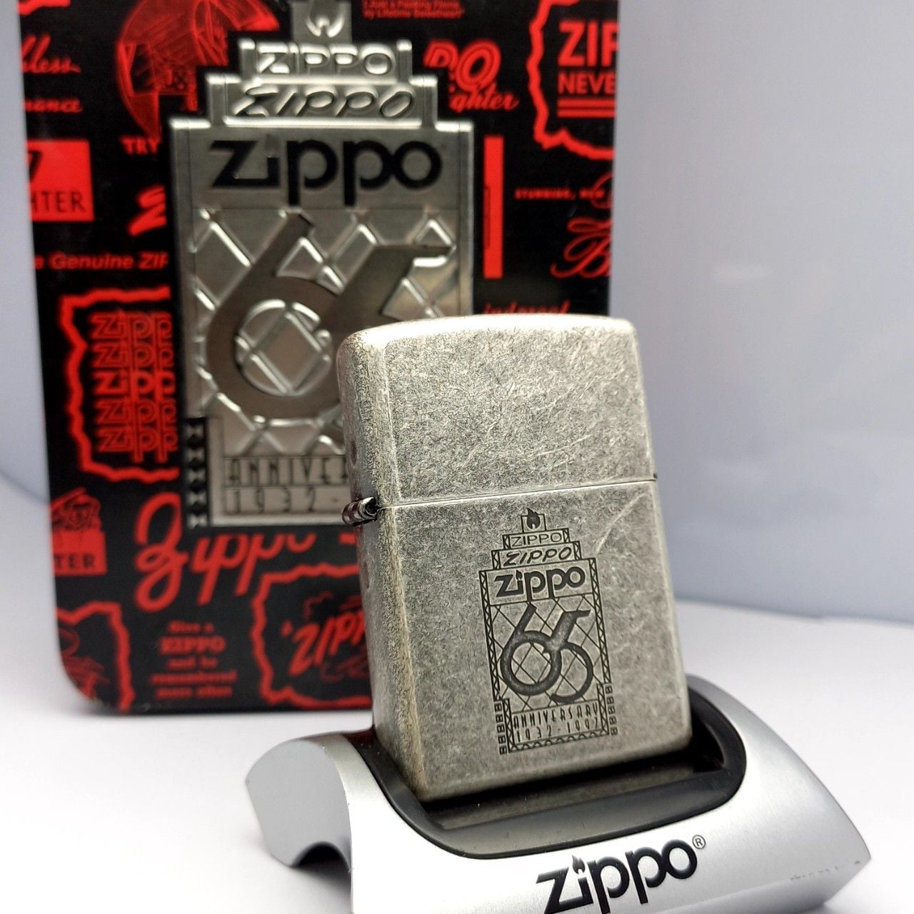 Bật Lửa Zippo Bản Kỷ Niệm 65th Thành Lập Hãng Zippo Antique Sliver Mạ Bạc Giả Cổ Đời XIII La Mã Năm 1997 ZS37