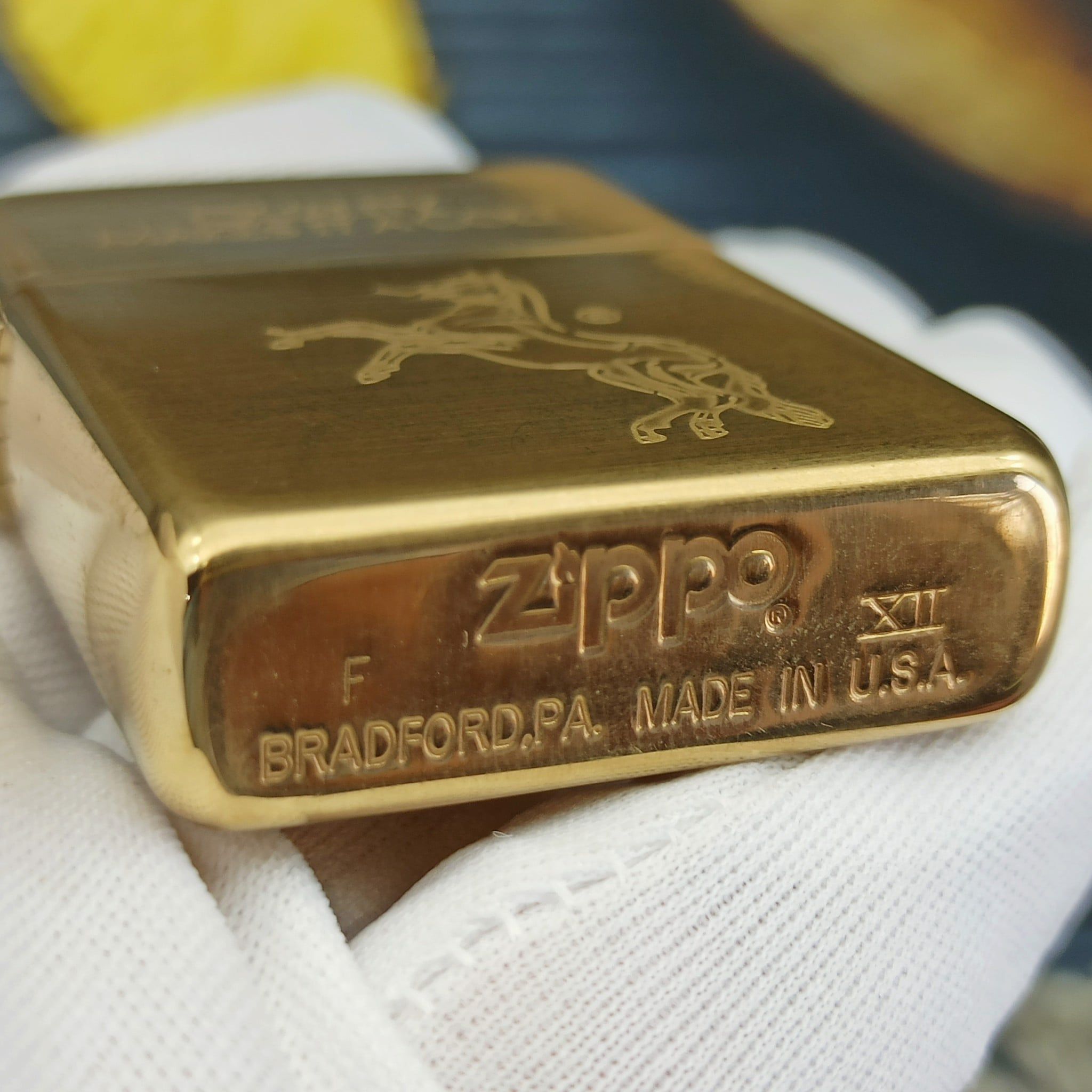- Sản Phẩm: Bật lửa Zippo Brass đồng nguyên khối ăn mòn a xít nguyên zin chính hãng chủ đề Ngựa Đua
