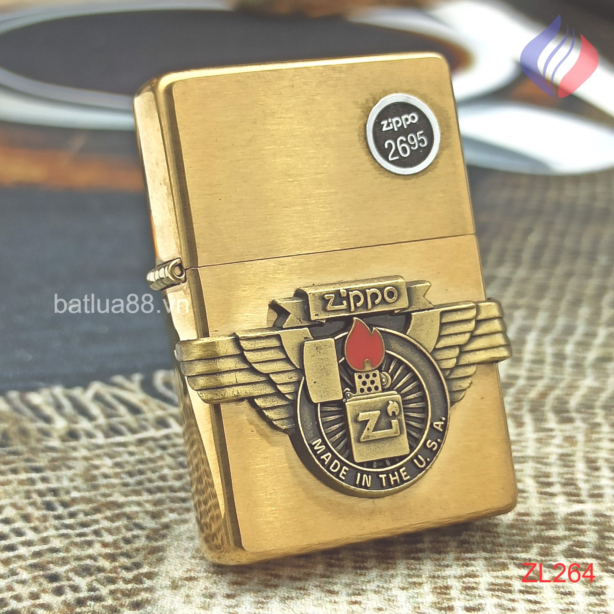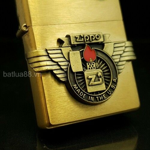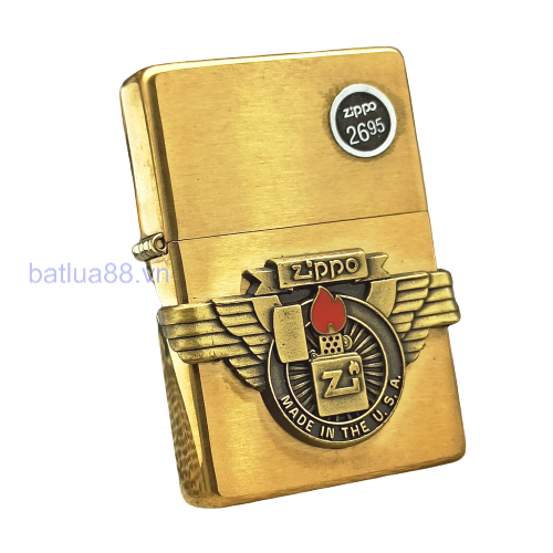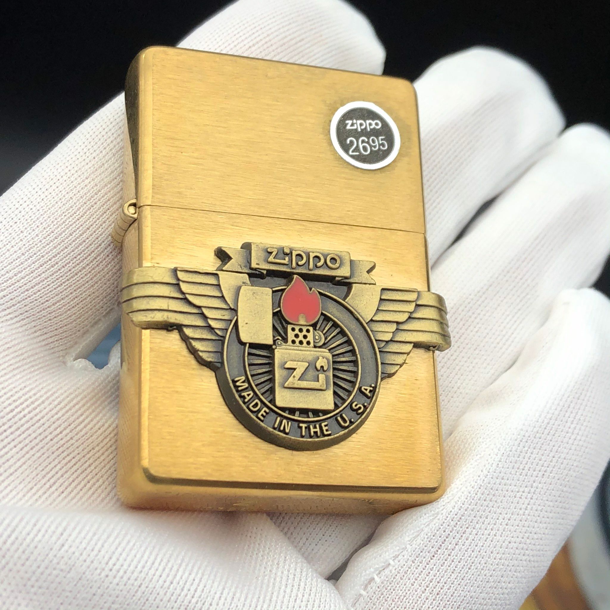 - Sản Phẩm: Bật lửa Zippo Brass đồng nguyên khối emblem đai chủ đề logo Zippo nguyên zin chính hãng.