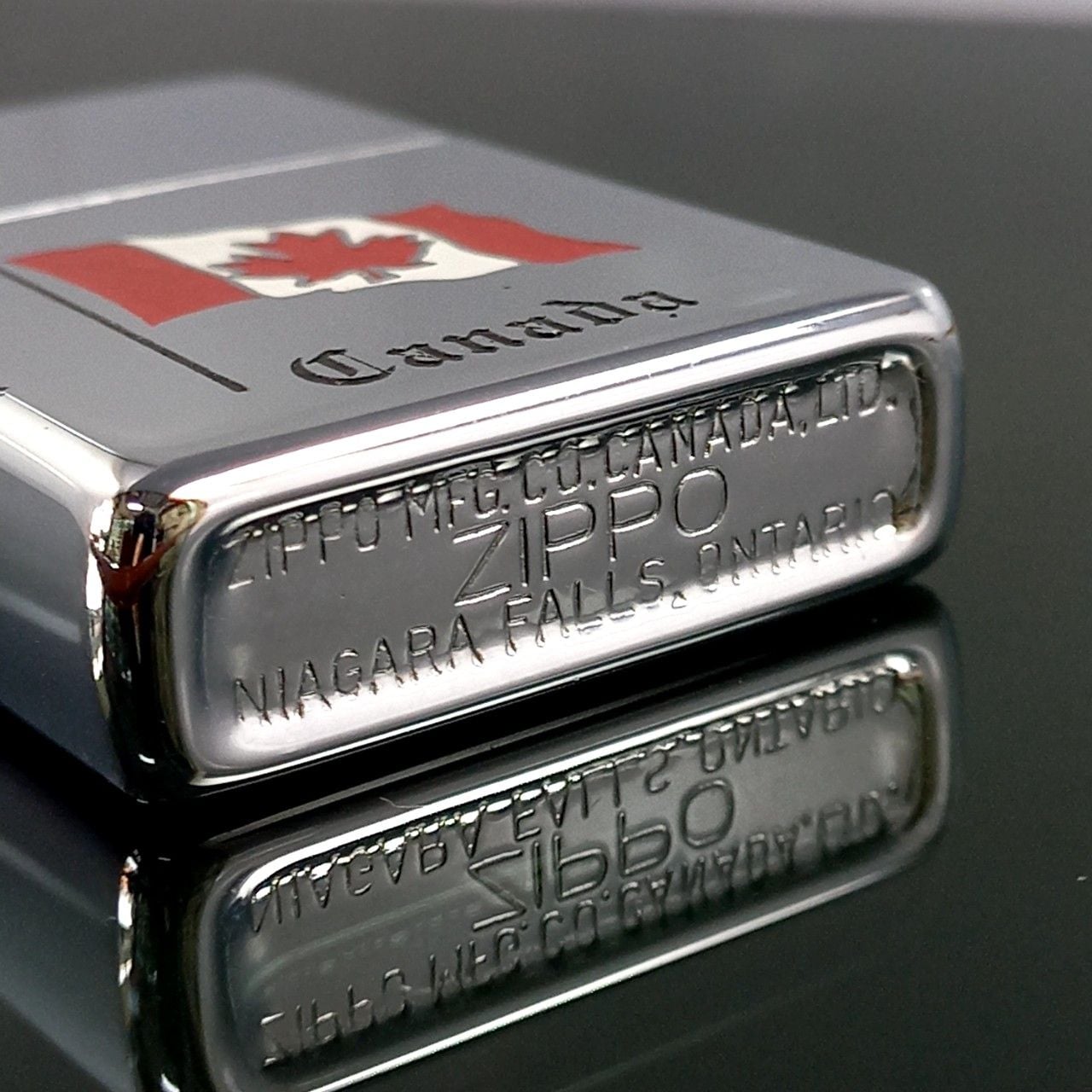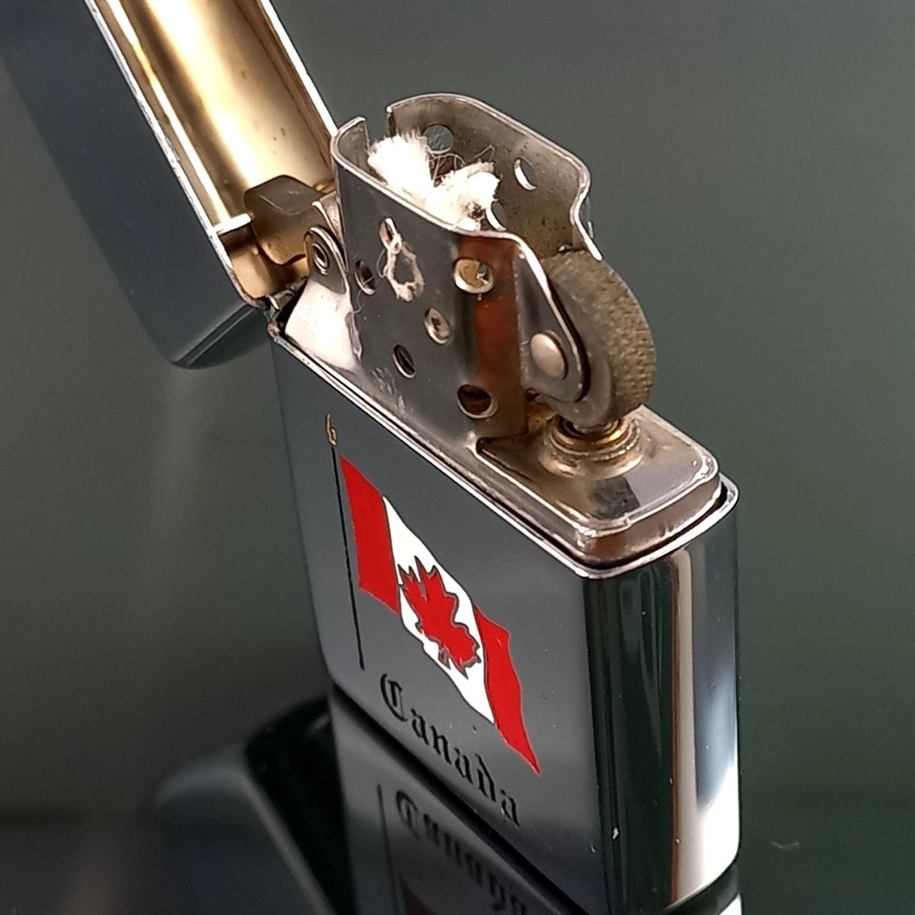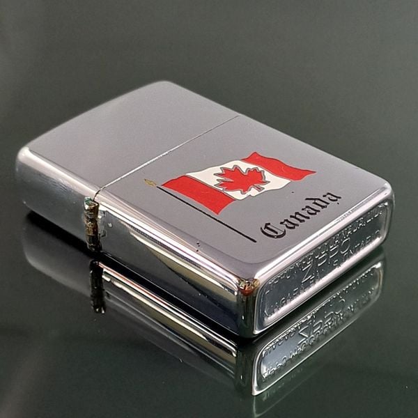 Bật Lửa Zippo Canada Khắc Ăn Mòn Phủ Sơn Quốc Kỳ Canada Hiếm Gặp Đời Mộc Đáy 3 Hàng Chữ Năm 1970 ZQH86