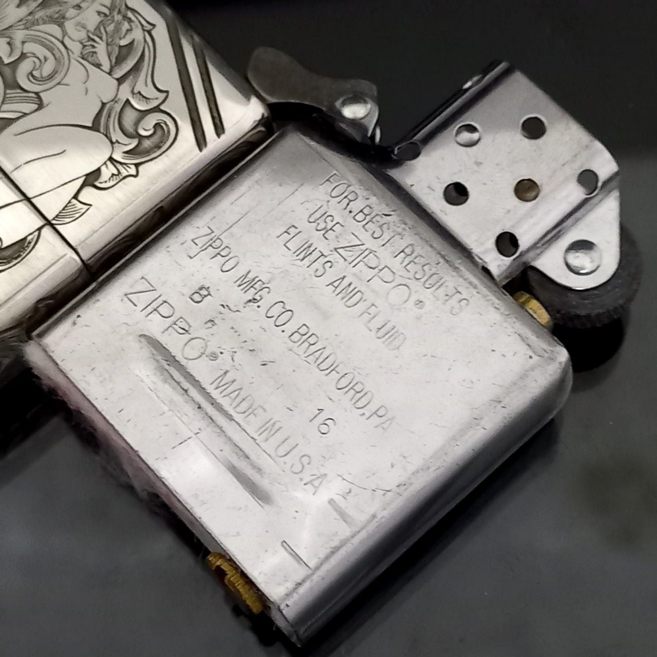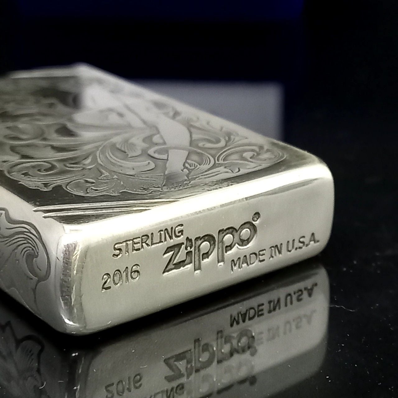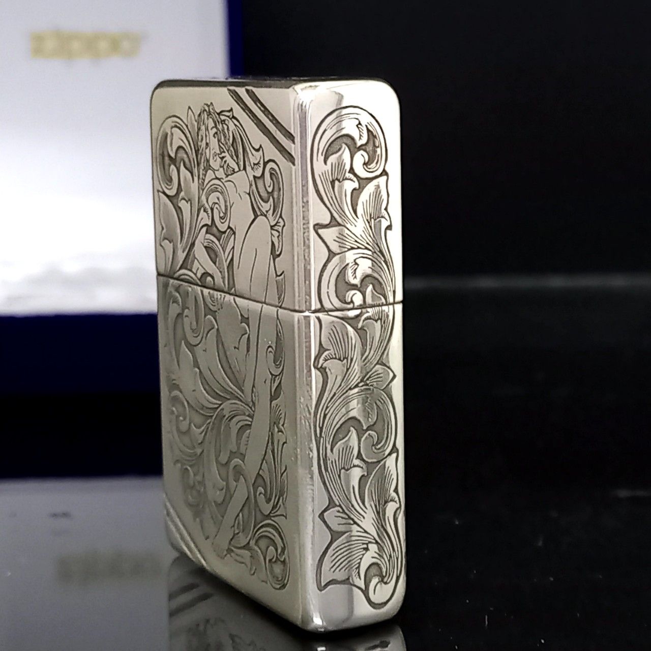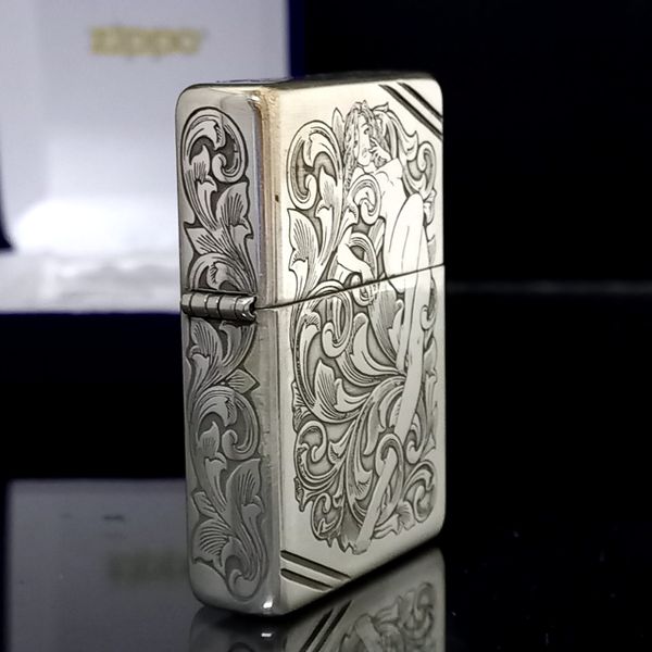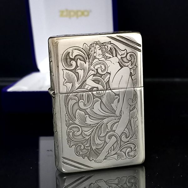 Bật Lửa Zippo Bạc Khối Sterling Khắc Hoa Văn Cô Gái Sexy 4 Mặt năm 2016 ZB64