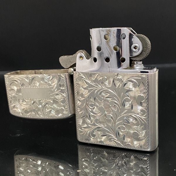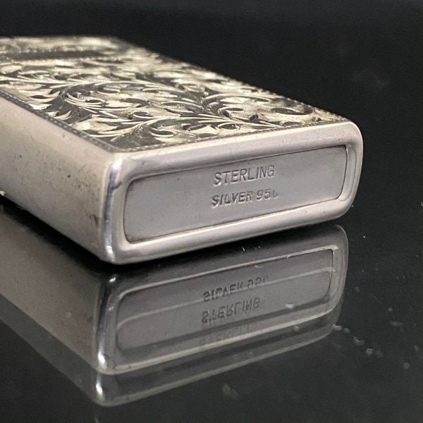 BẬT LỬA BẠC NHẬT ĐÚC NGUYÊN KHỐI STERLING 950 KHẮC HOA VĂN THỦ CÔNG BỞI NGHỆ NHÂN NHẬT SX THẬP NIÊN 1950S ZBU76