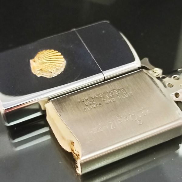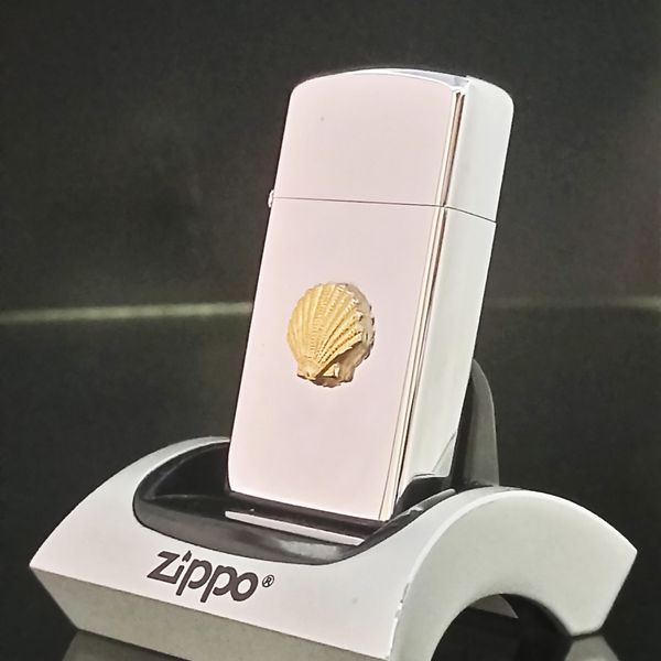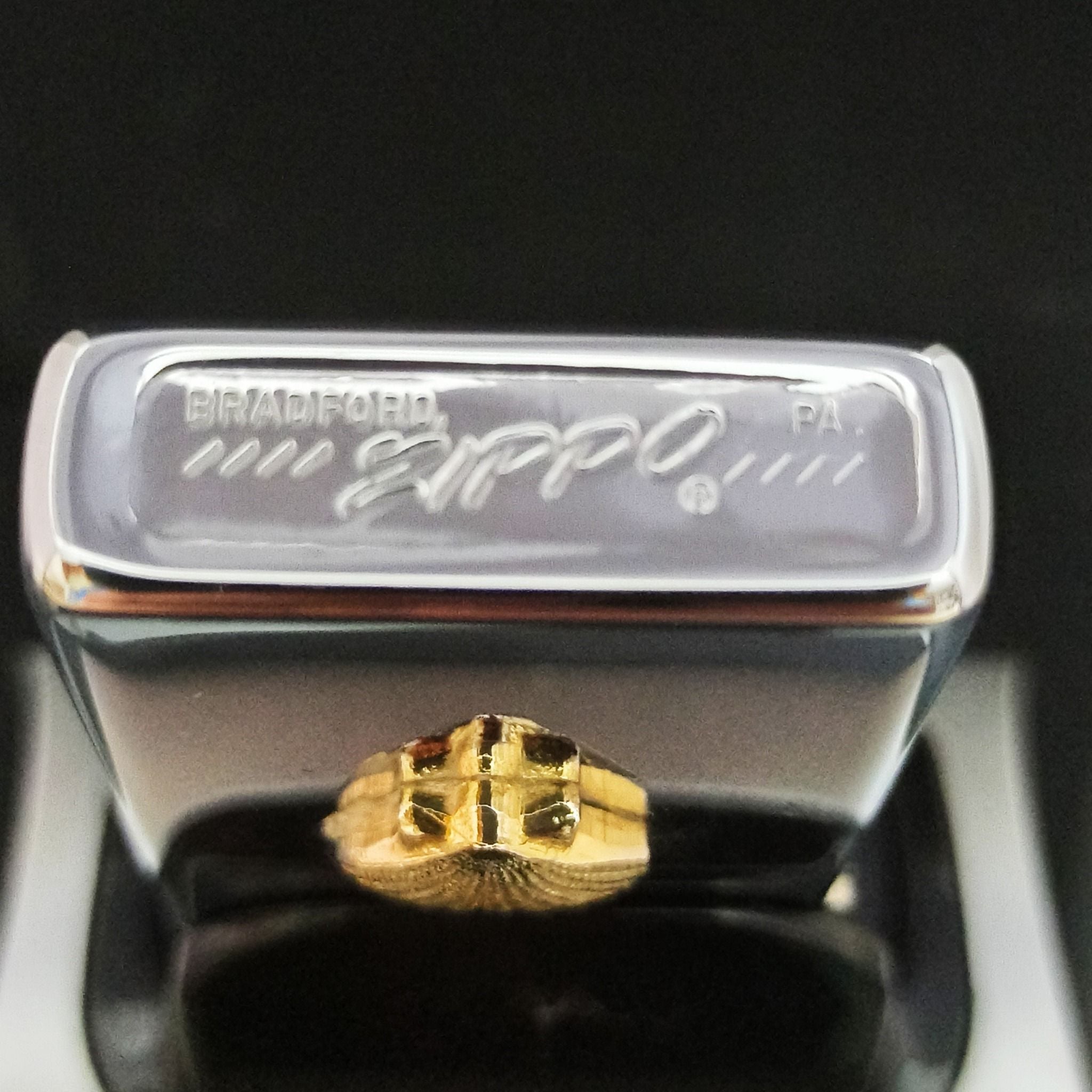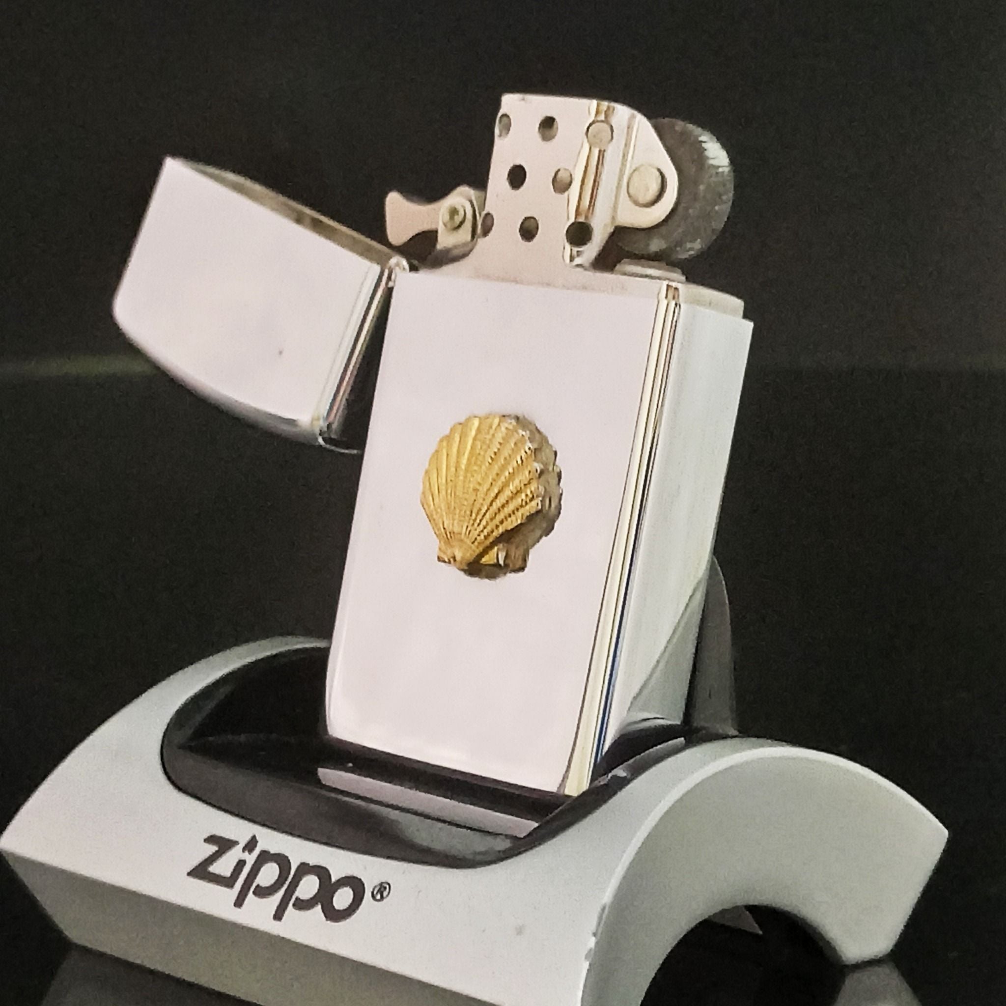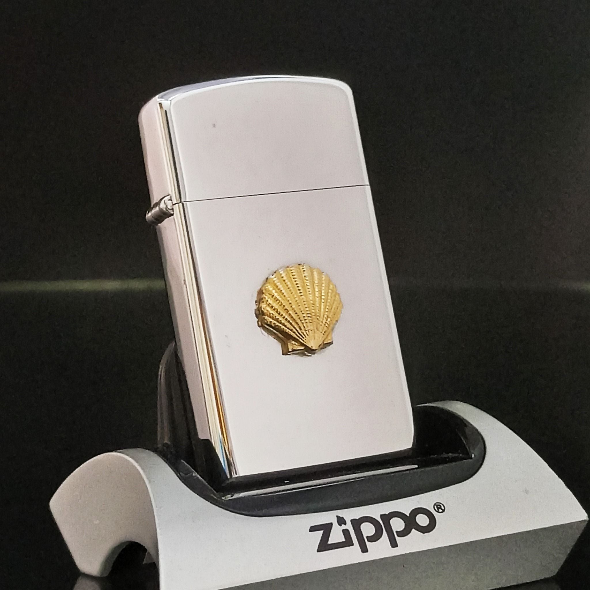 Bật Lửa Zippo Slim Cổ Đồng Khối Mạ Chrome Bóng HP Emblem Vàng Chính Hãng Đời 8 Vạch Sắc Năm 1974 ZC164