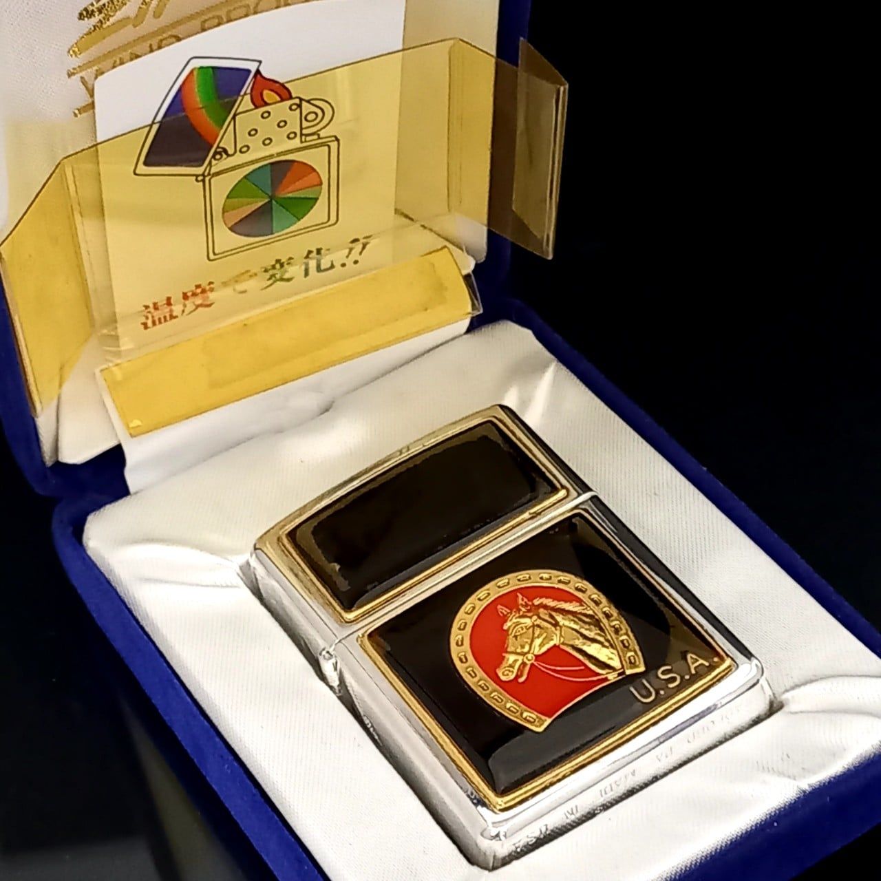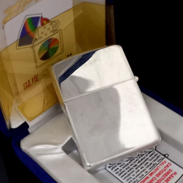 Bật Lửa Zippo Đồng Khối Mạ Chrome Bóng Emblem Dát Vàng Phủ Eboxy Đổi Mầu Theo Nhiệt Độ Rất Hiếm Chính Hãng Đời X La Mã Năm 1994 ZL451