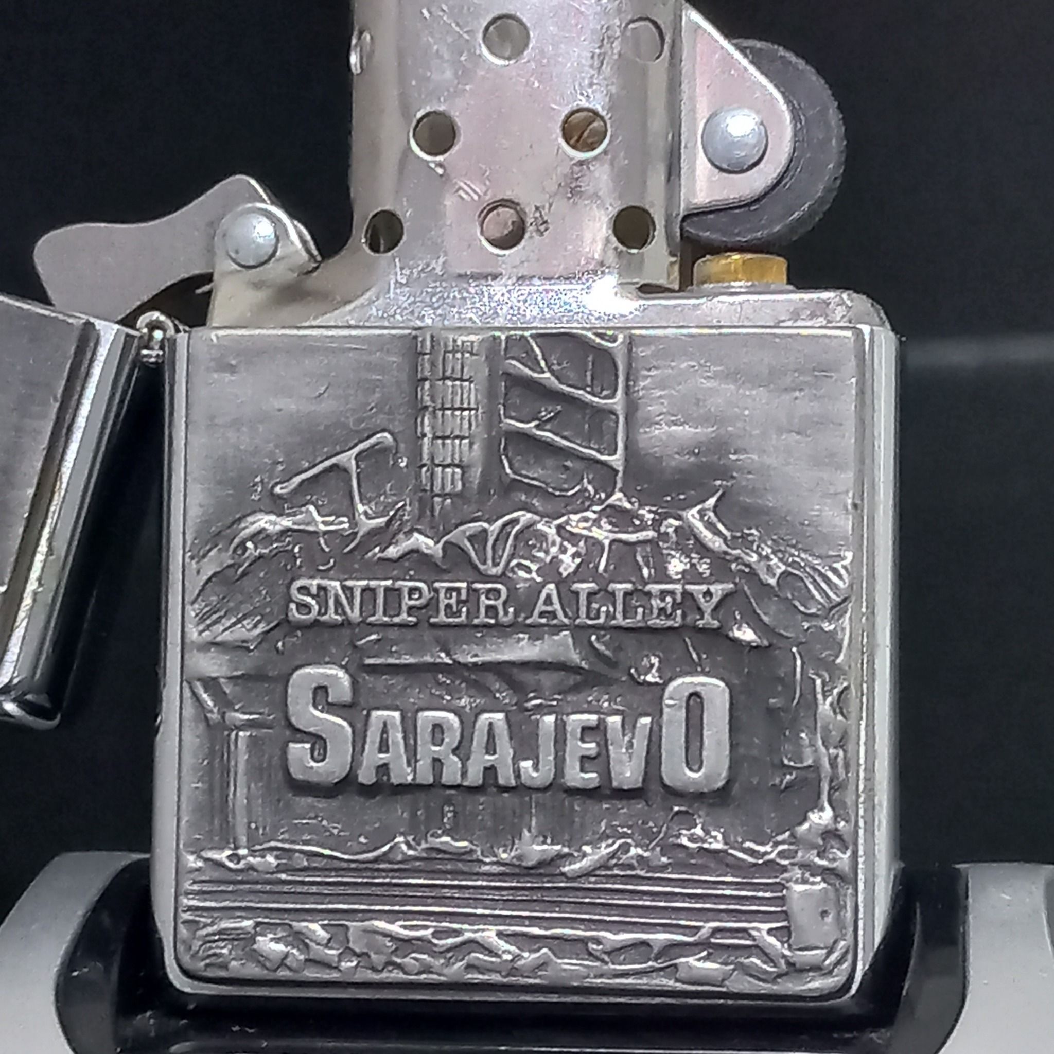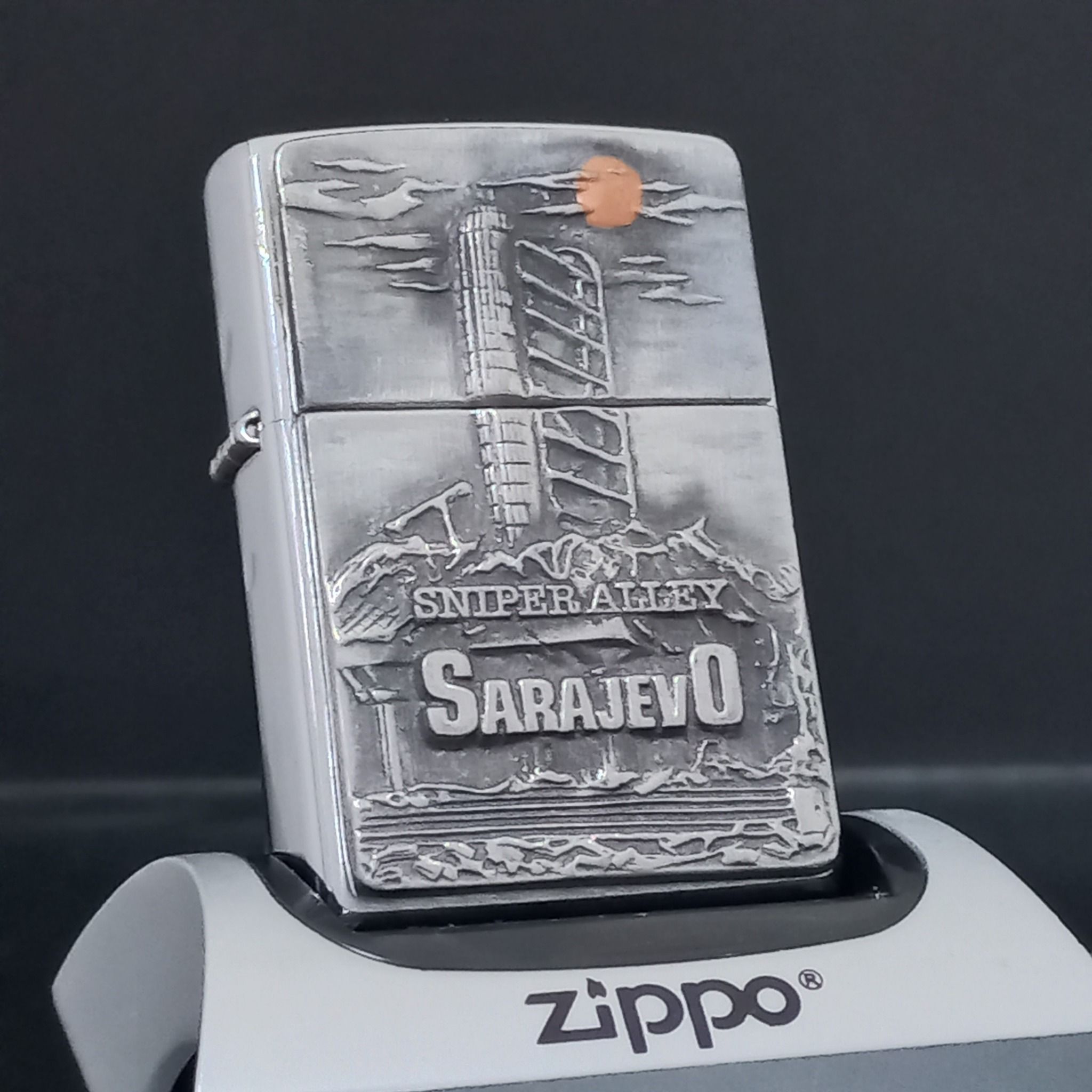 Bật Lửa Zippo Đồng Khối Mạ Chrome Emblem Chủ Đề Vùng Chiến Sự Bản Xuất Châu Âu Rất Hiếm Chính Hãng Đời XVI La Mã Năm 2000 ZL463