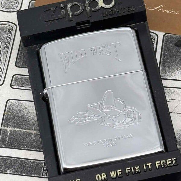 Bật Lửa Zippo Chrome Bóng Chủ Đề WILD WEST Đời V La Mã Năm 1989 ZL743
