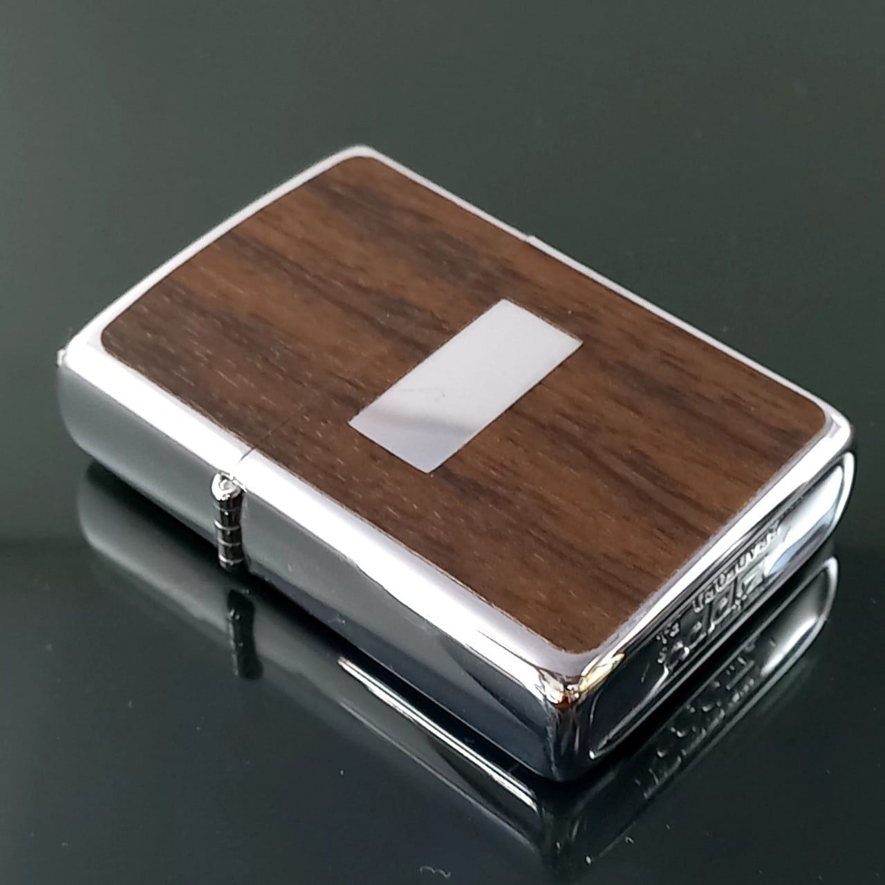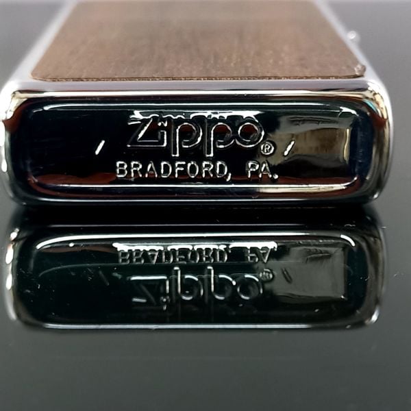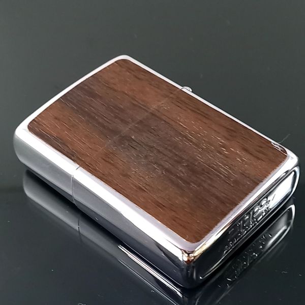 Bật Lửa Zippo Cổ Đồng Khối Mạ Chrome Ốp Gỗ 2 Mặt Đời 2 Vạch Sắc Năm 1980 ZC145