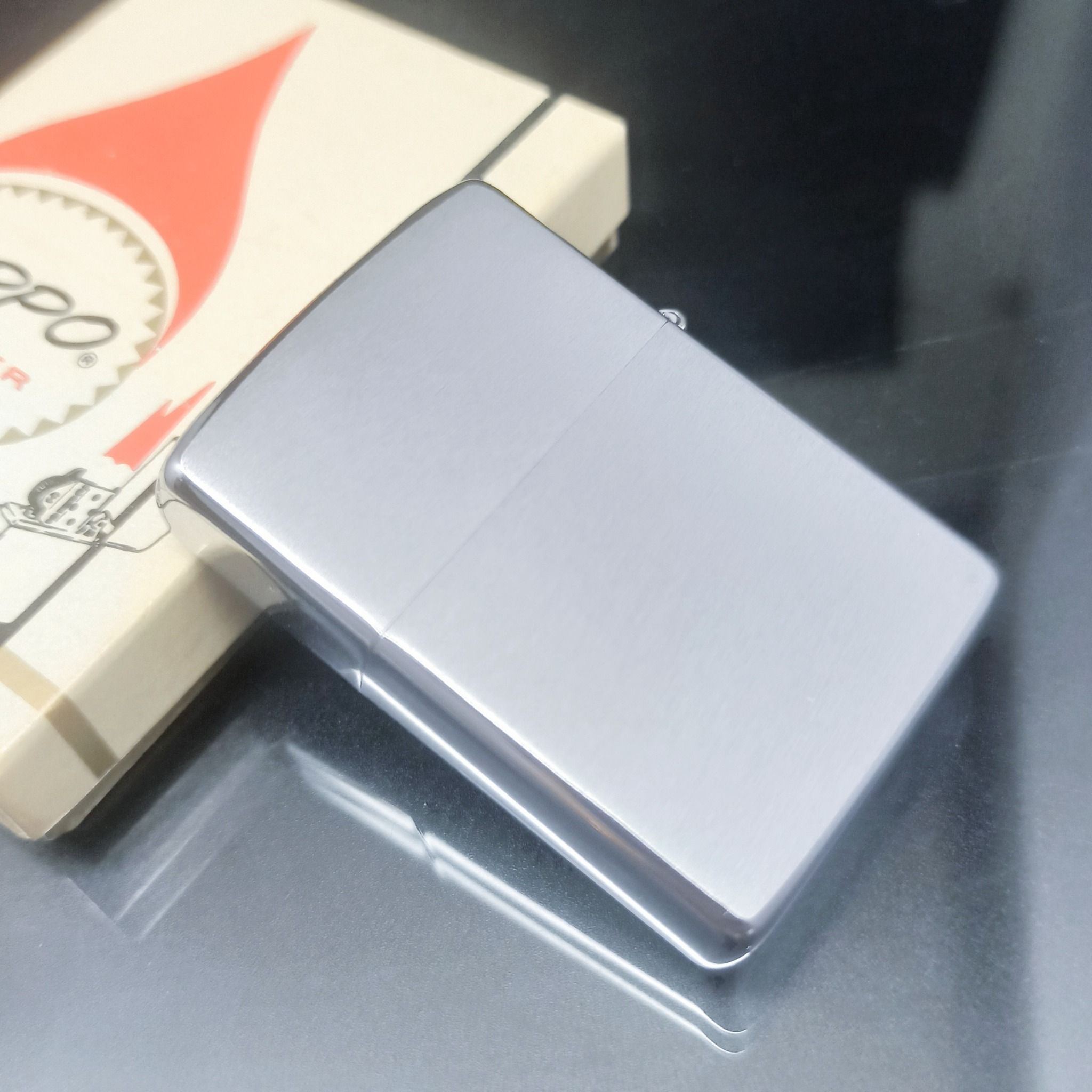 Bật Lửa Zippo Cổ Đồng Khối Mạ Chrome Phay Xước Chủ Đề Ăn Mòn Phủ Sơn Hiếm Gặp Năm 1975 Đời 7 Vạch Sắc ZC386