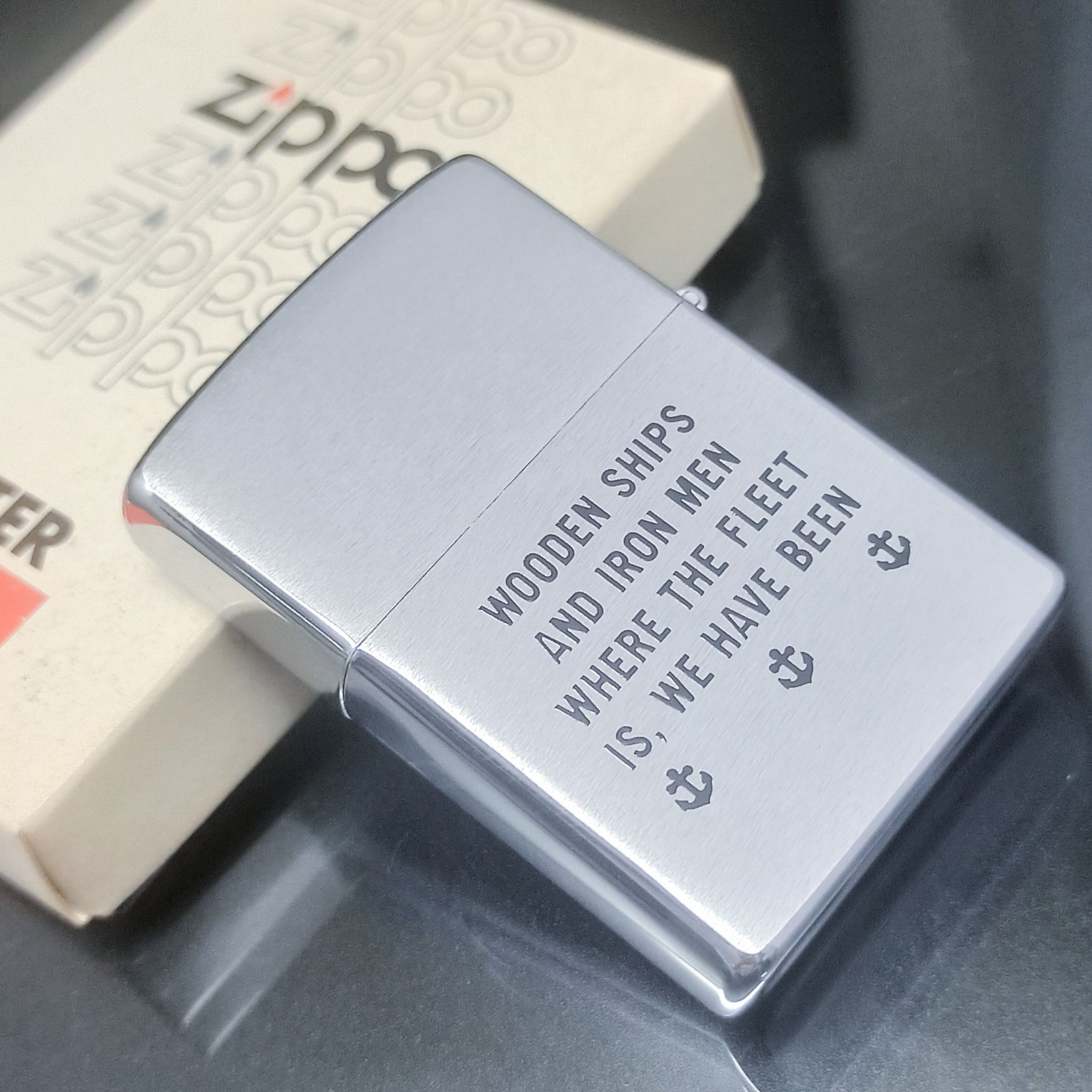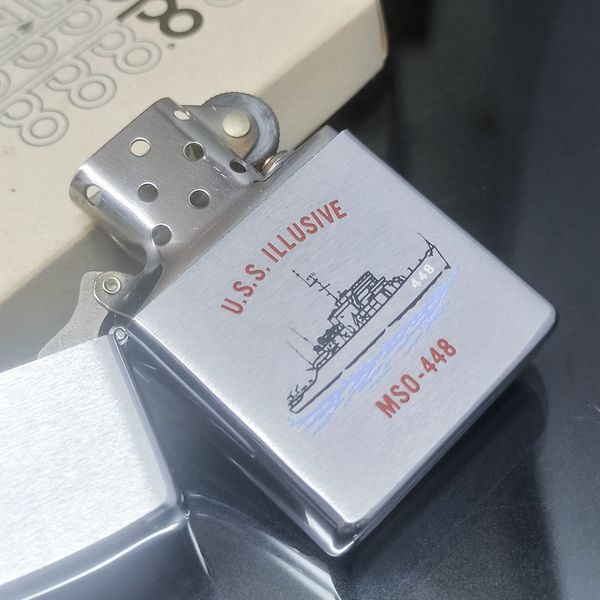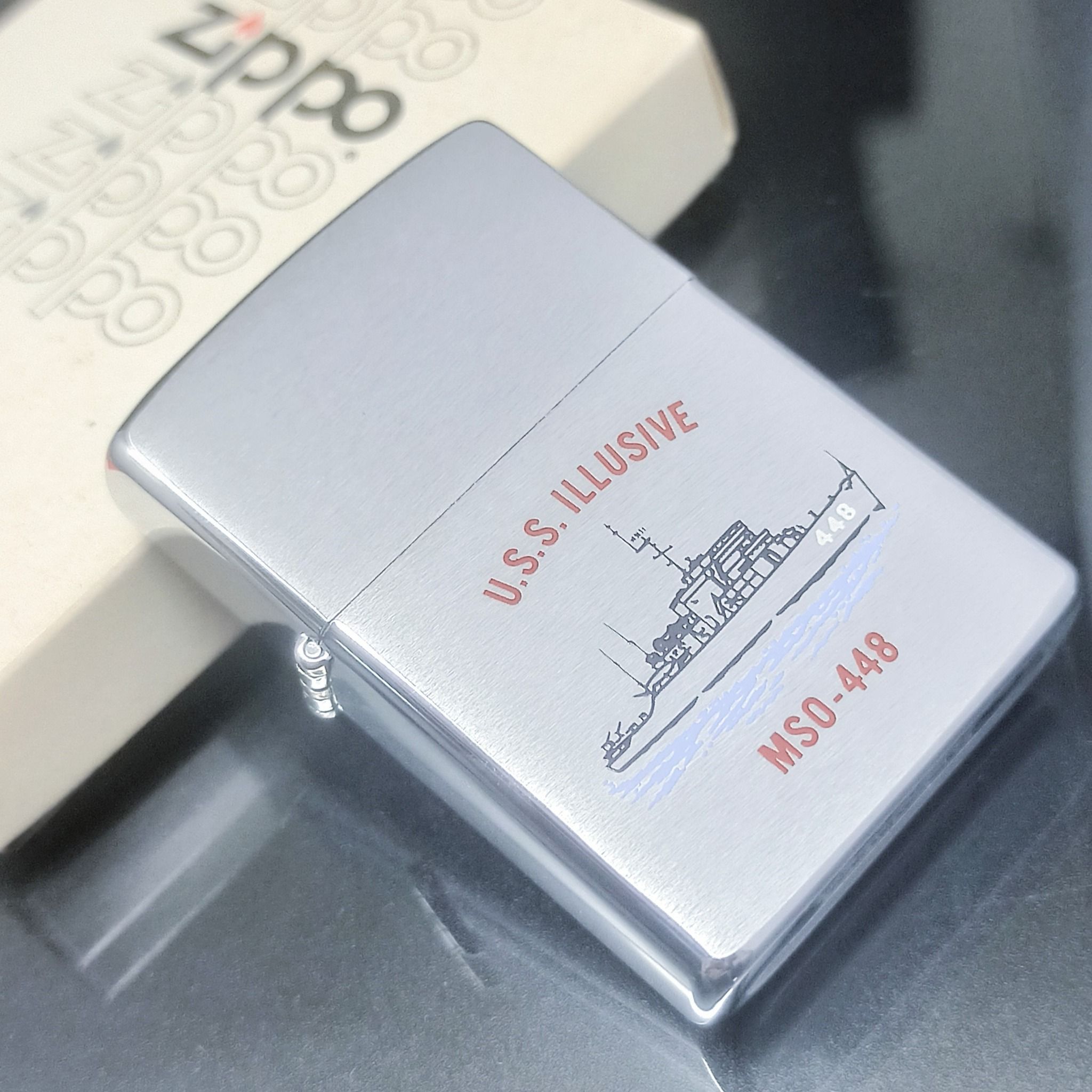 Bật Lửa Zippo Cổ Đồng Khối Mạ Chrome Phay Xước Chủ Đề Tầu Chiến Ăn Mòn Phủ Sơn Hiếm Gặp Năm 1981 Đời 1 Vạch Sắc ZC388