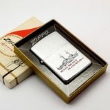 Bật Lửa Zippo Cổ Đồng Khối Mạ Chrome Phay Xước Chủ Đề Tầu Chiến Khắc Ăn Mòn Phủ Sơn Hiếm Gặp Năm 1966 Đời 8 Vạch Thẳng ZC400