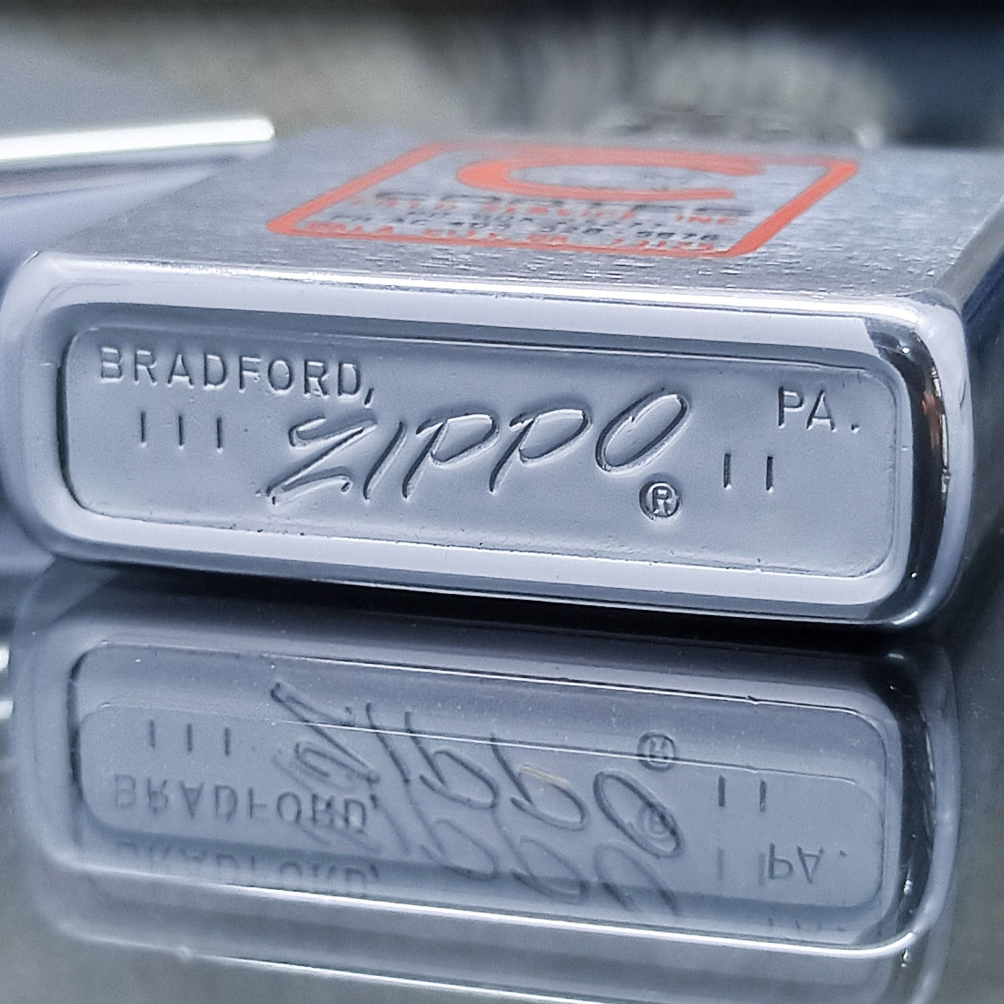 Bật Lửa Zippo Cổ Đồng Khối Mạ Chrome Phay Xước Khắc Ắn Mòn Chủ Đề Nguyên Zin Chính Hãng Cực Hiếm, Đời 5 Vạch Thẳng Năm 1969 ZC202