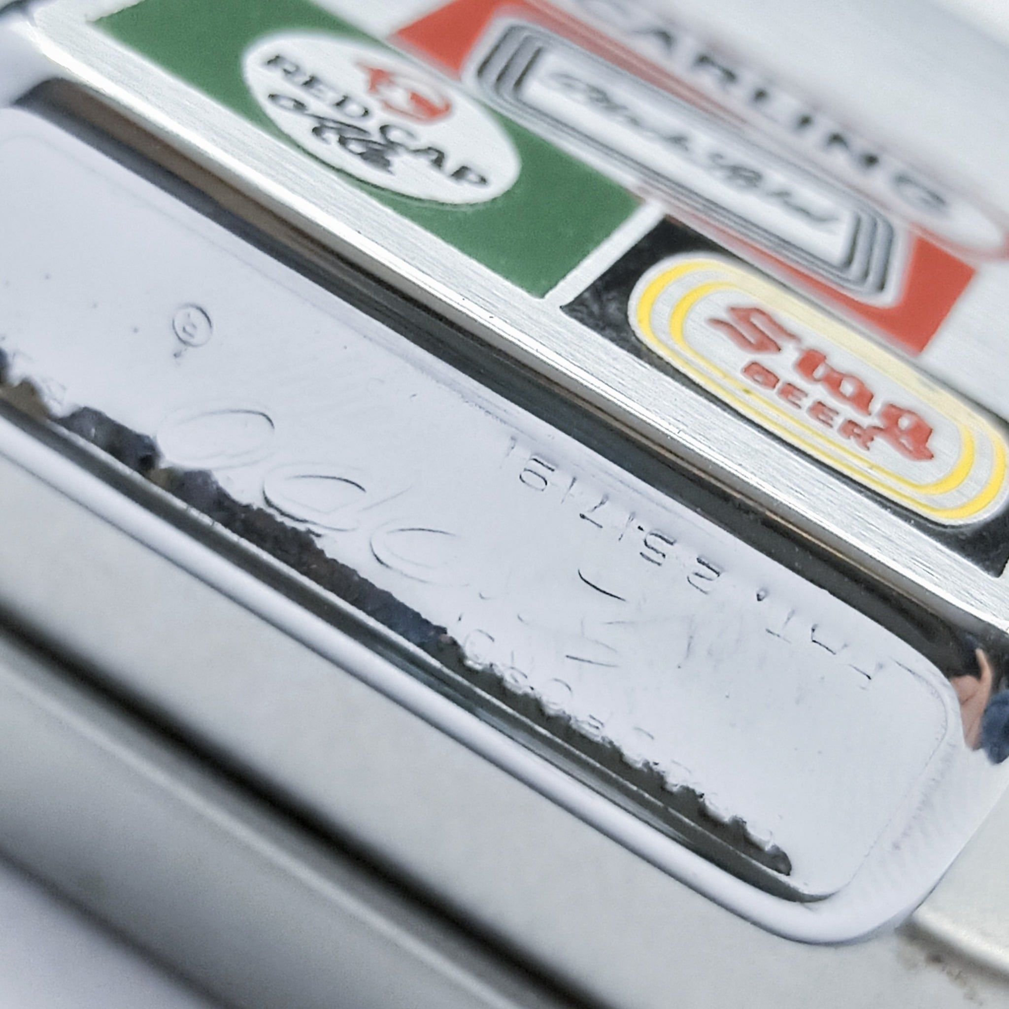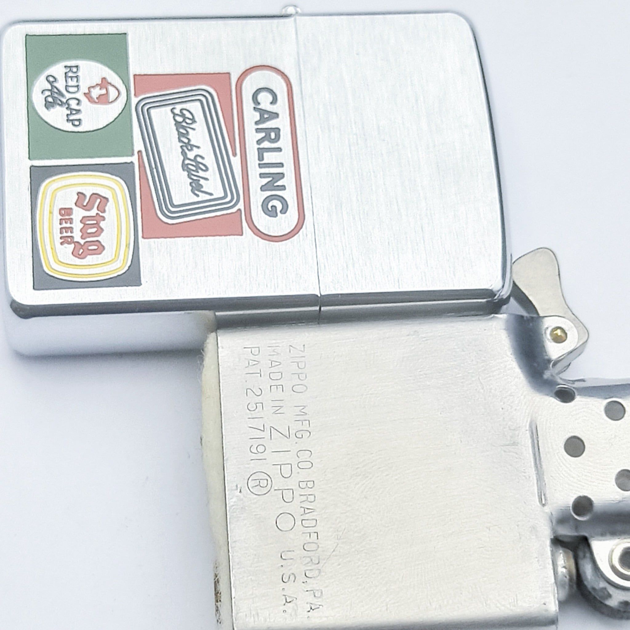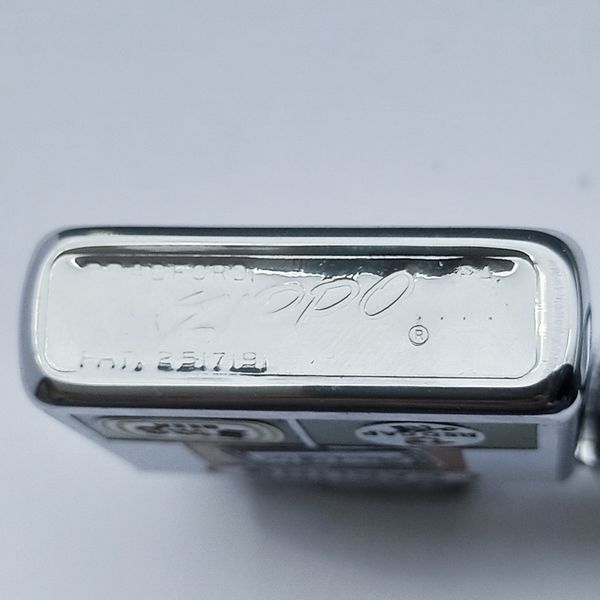 Bật Lửa Zippo Cổ Đồng Khối Mạ Chrome Phay Xước Khắc Ăn Mòn Phủ Sơn Năm 1957 Đời 8 Chấm Pat Lệch ZC197