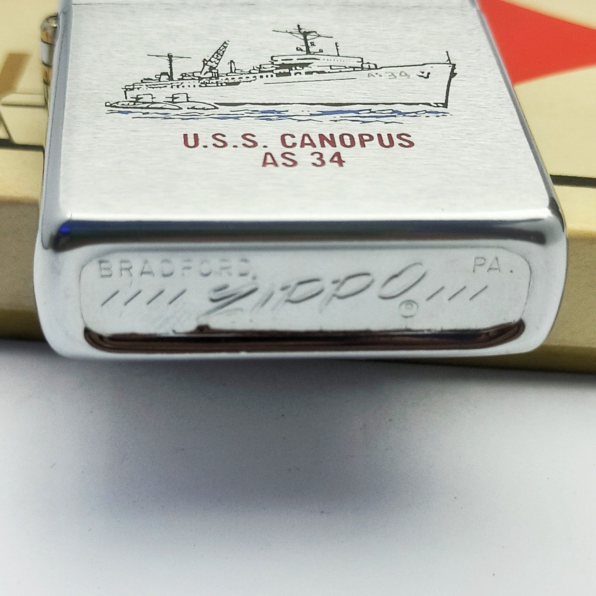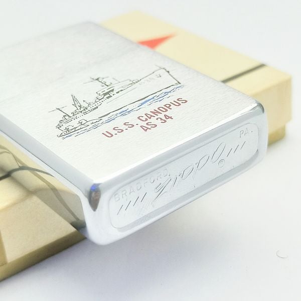 Bật Lửa Zippo Cổ Đồng Khối Mạ Chrome Phay Xước Khắc Ăn Mòn Phủ Sơn Tầu Chiến Hiếm Gặp Năm 1975 Đời 7 Vạch Sắc ZC294