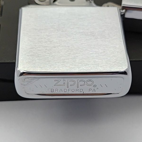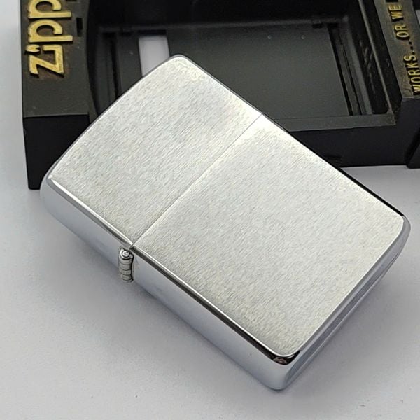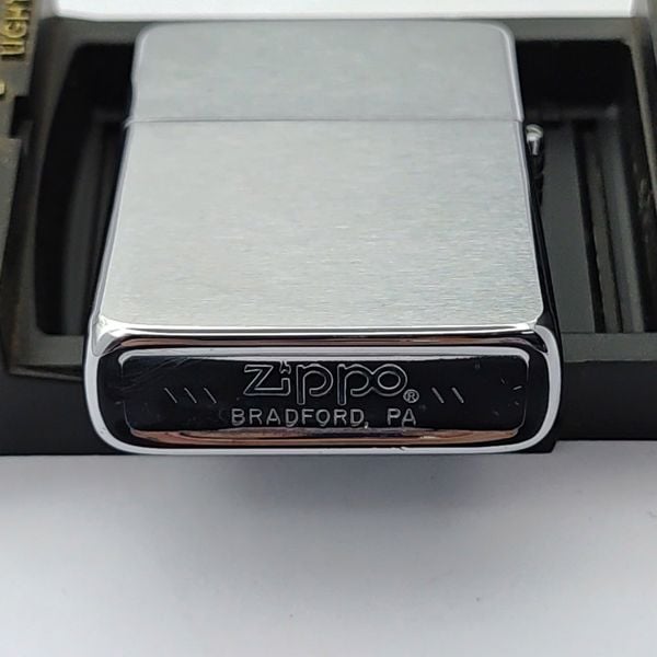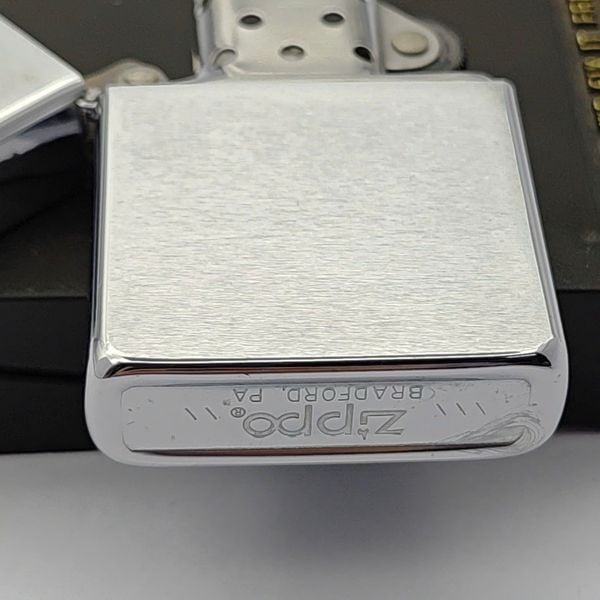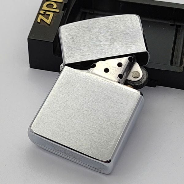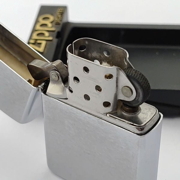 Bật Lửa Zippo Cổ Đồng Khối Mạ Chrome Phay Xước Trơn Năm 1985 Đời 5 Vạch Huyền ZC475