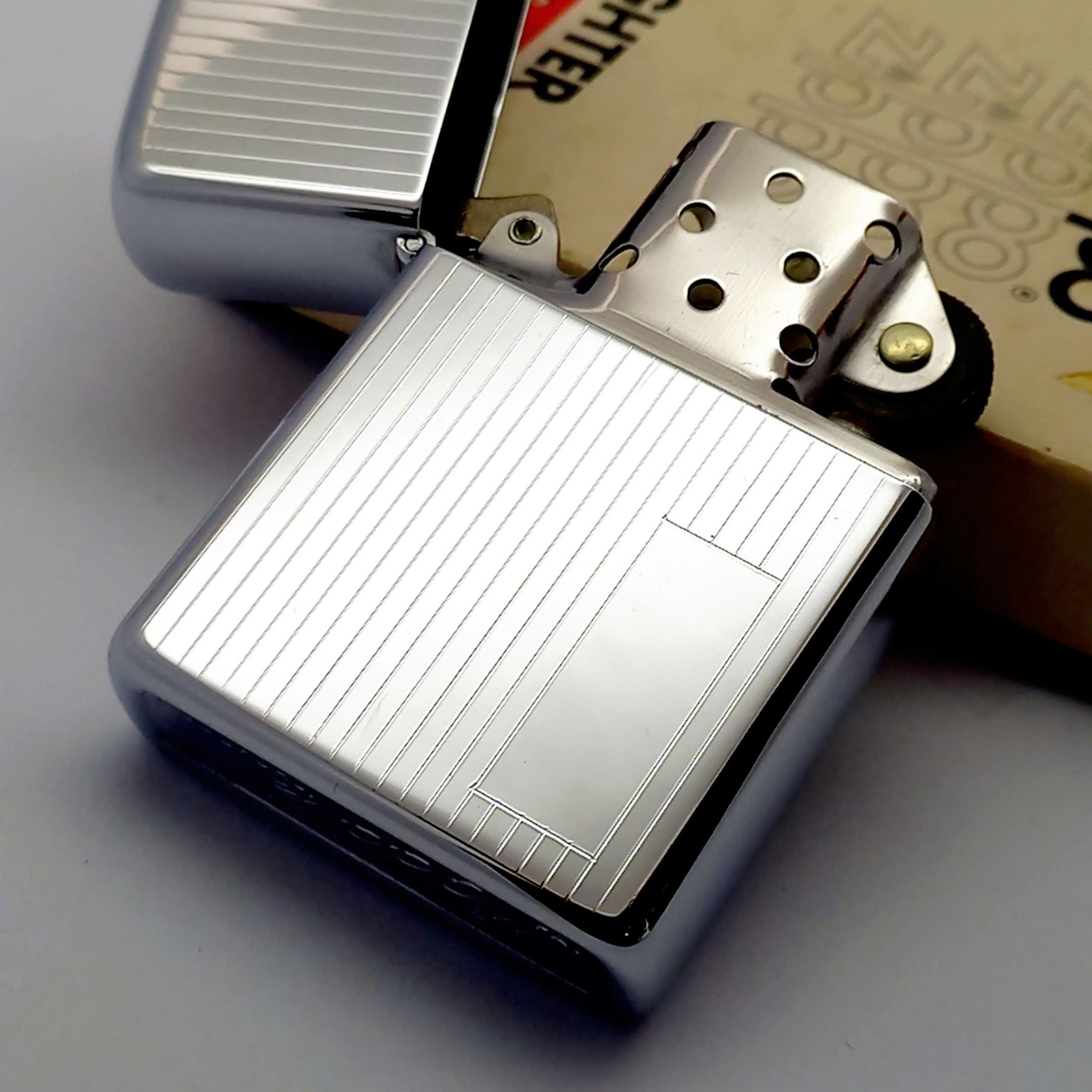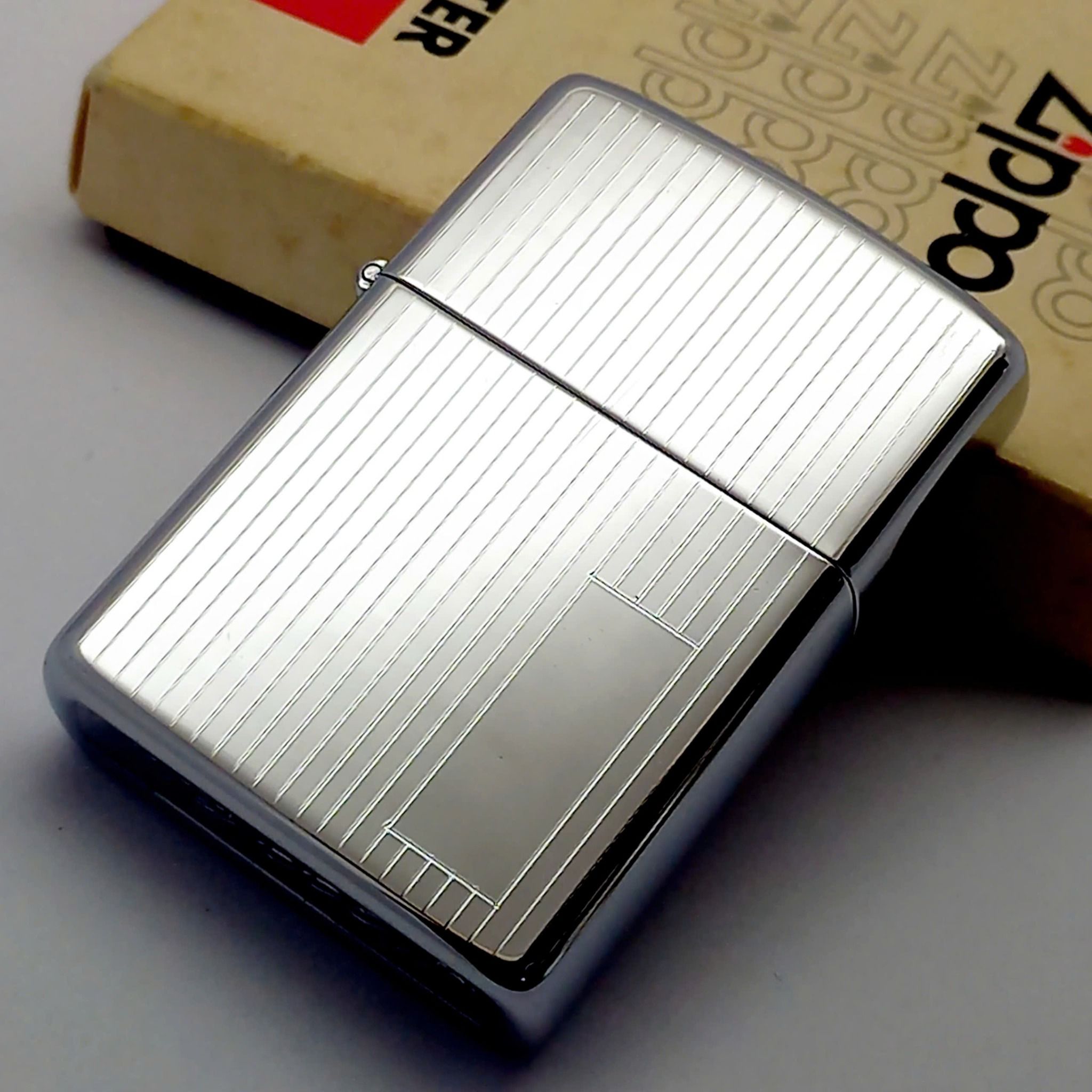 Bật Lửa Zippo Cổ Đồng Khối Mạ Chrome Trơn Bóng Vân Sọc Dưa Hiếm Gặp Năm 1979 Đời 3 Vạch Sắc ZC411