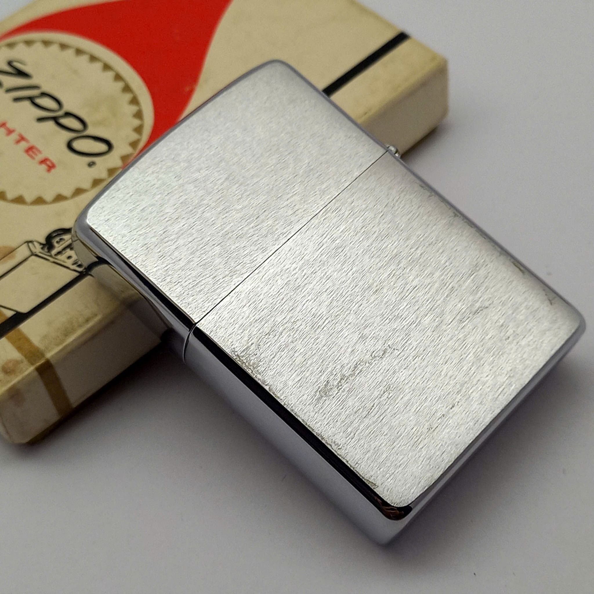 Bật Lửa Zippo Cổ Đồng Khối Mạ Chrome Trơn Phay Xước Hiếm Gặp Năm 1973 Đời 1 Vạch Thẳng ZC470
