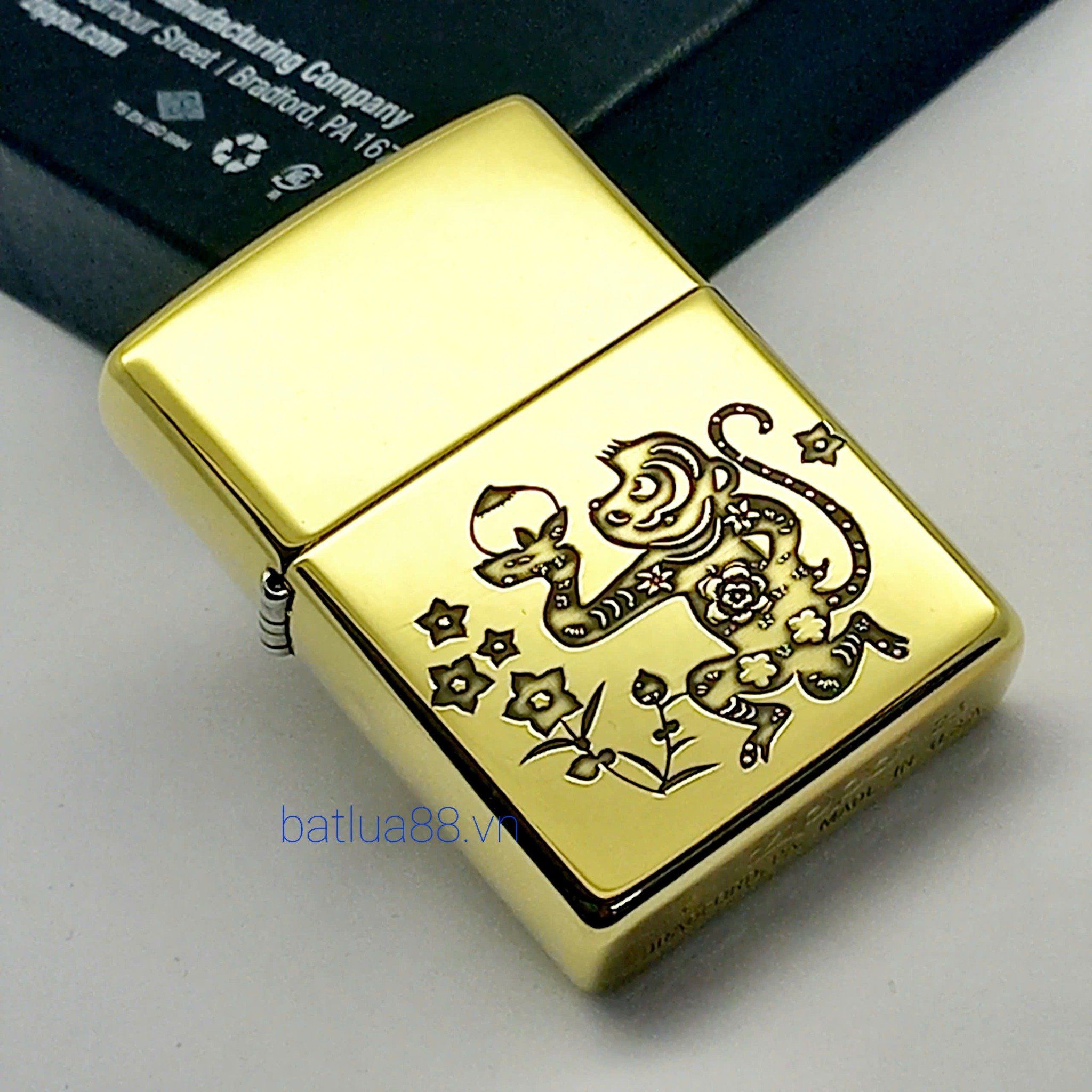 Bật Lửa Zippo Đồng Khối Khắc Tuổi Thân Con Khỉ - Chủ Đề 12 Con Giáp ZKB119