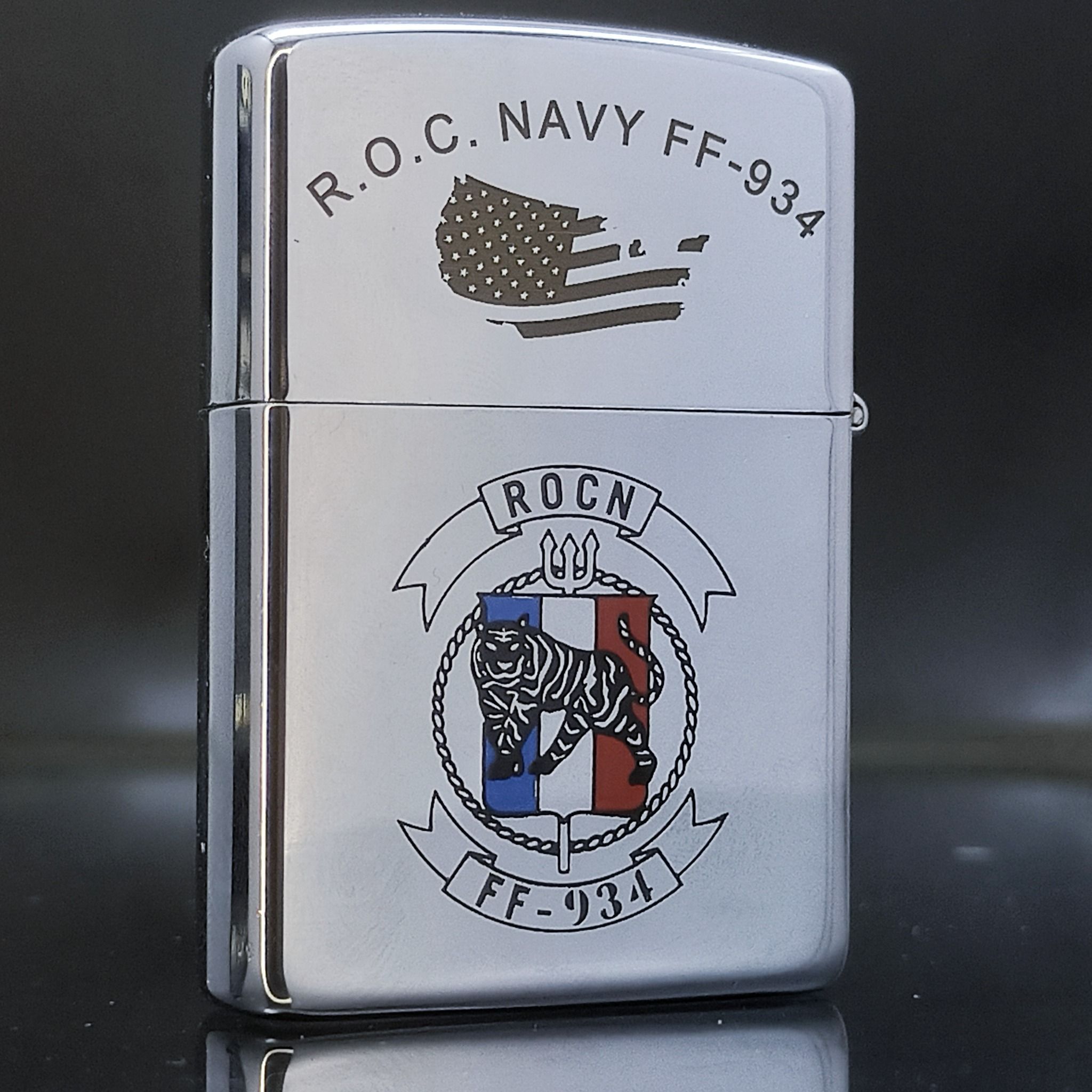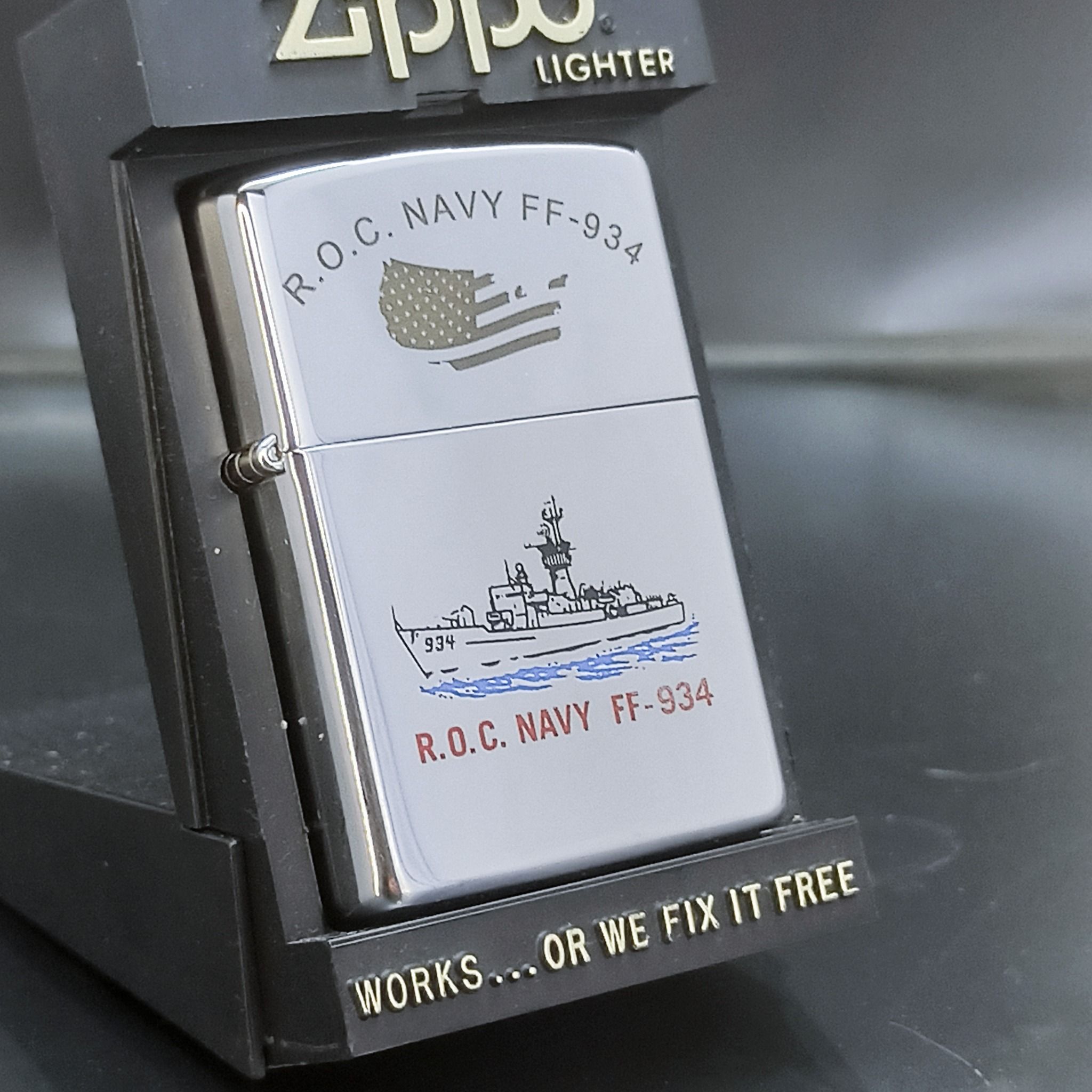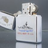 Bật Lửa Zippo Đồng Khối Mạ Chrome Bóng Khắc Ăn Mòn Phủ Sơn Tầu Chiến 2 Mặt Năm 1993 Đời IX La Mã ZL515