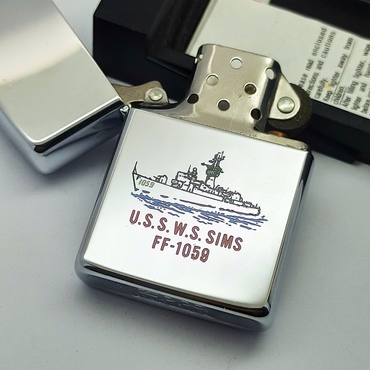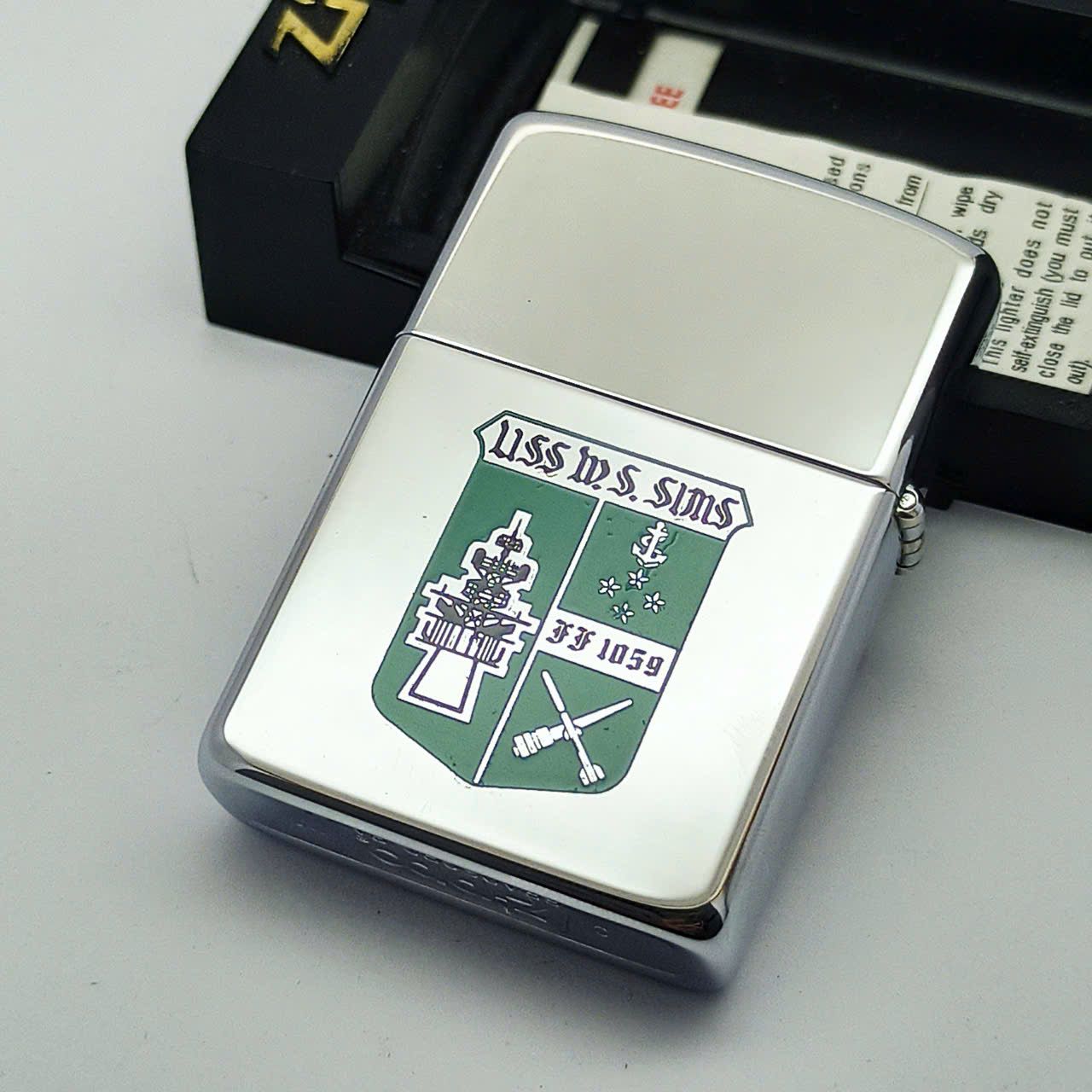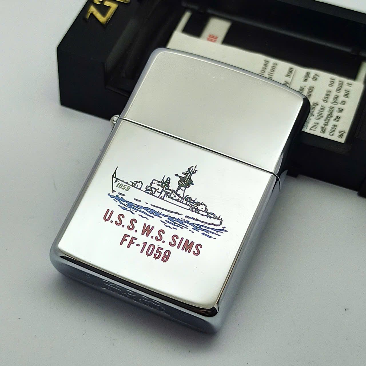 Bật Lửa Zippo Đồng Khối Mạ Chrome Chủ Đề Tàu Chiến Hiếm Gặp Năm 1988 Đời IV La Mã ZL689
