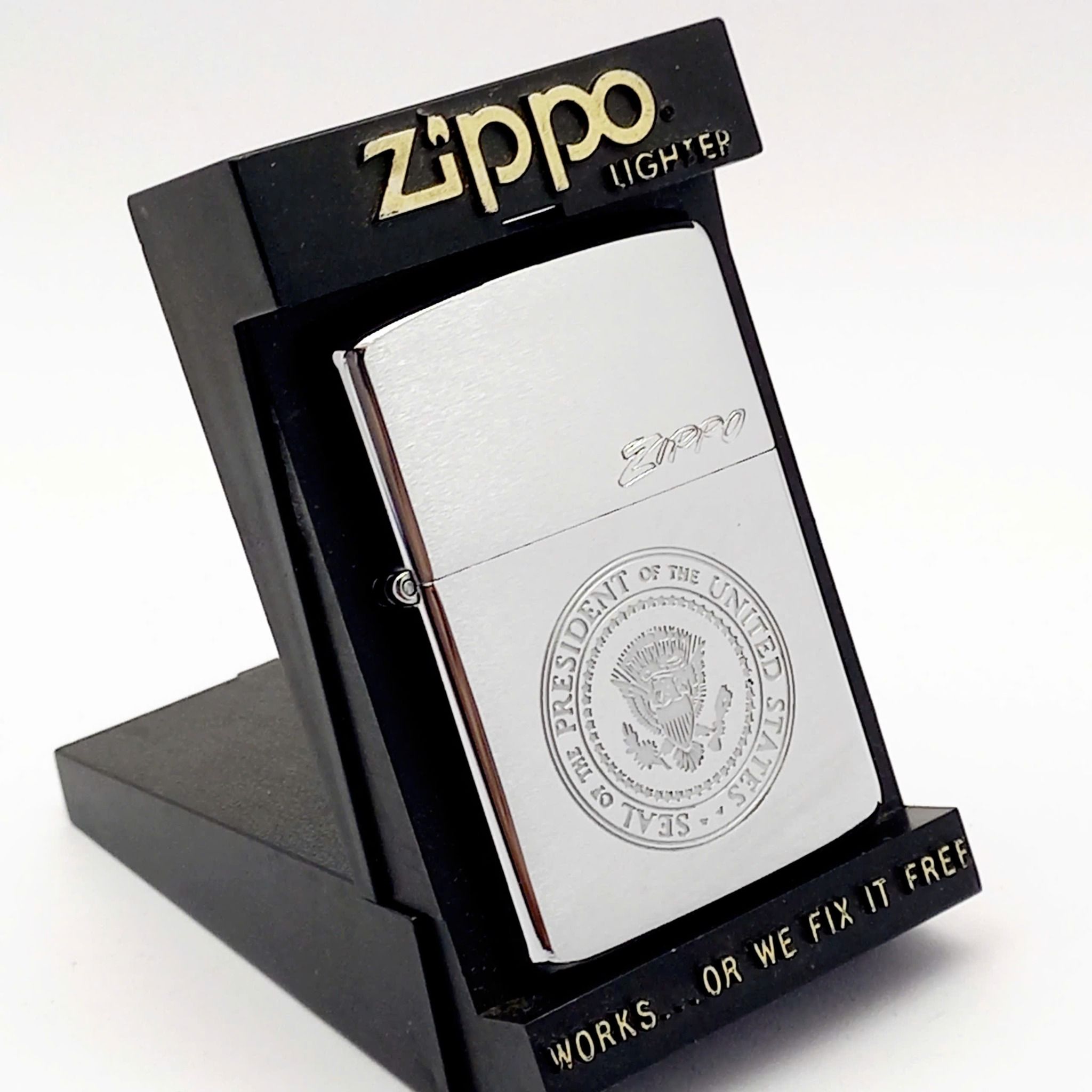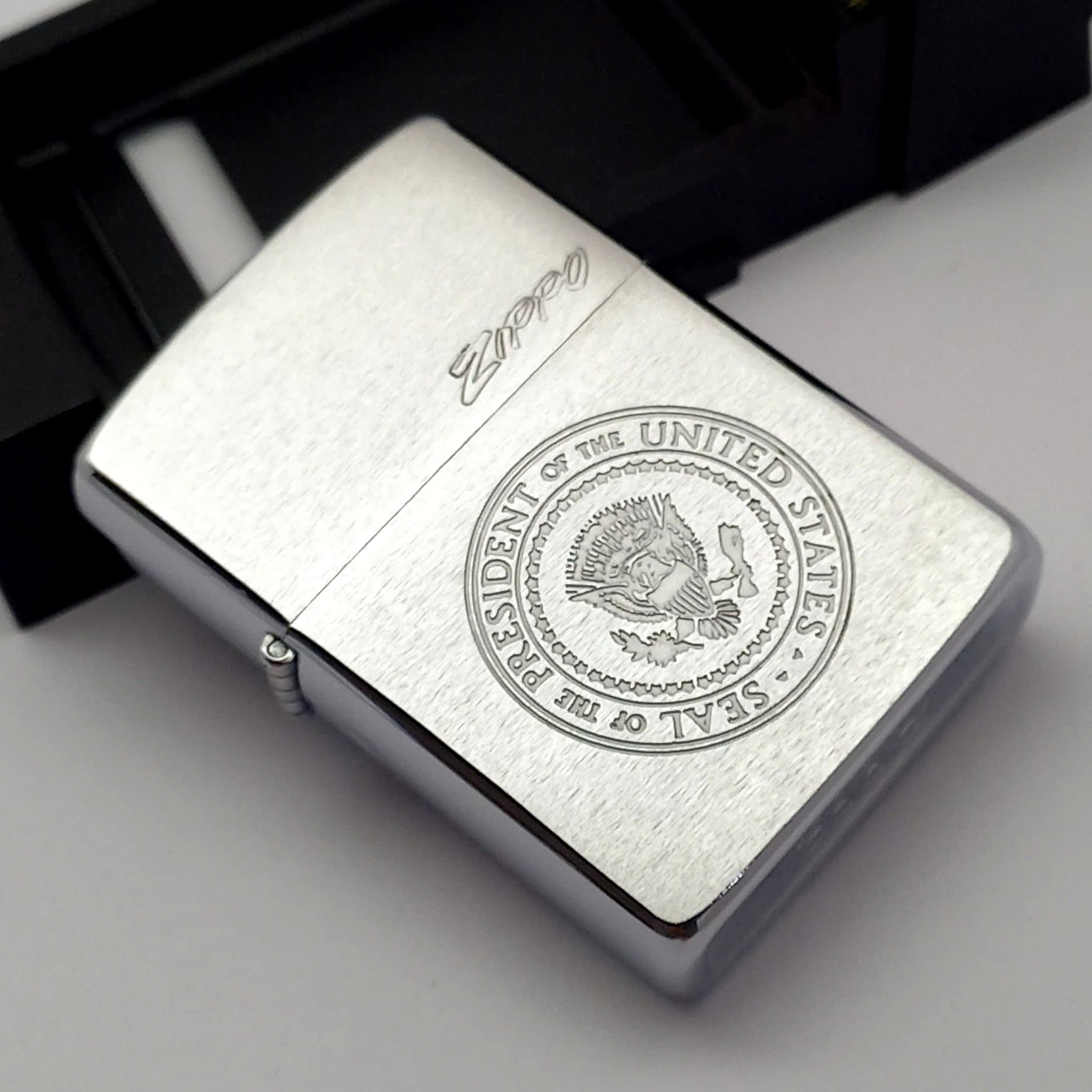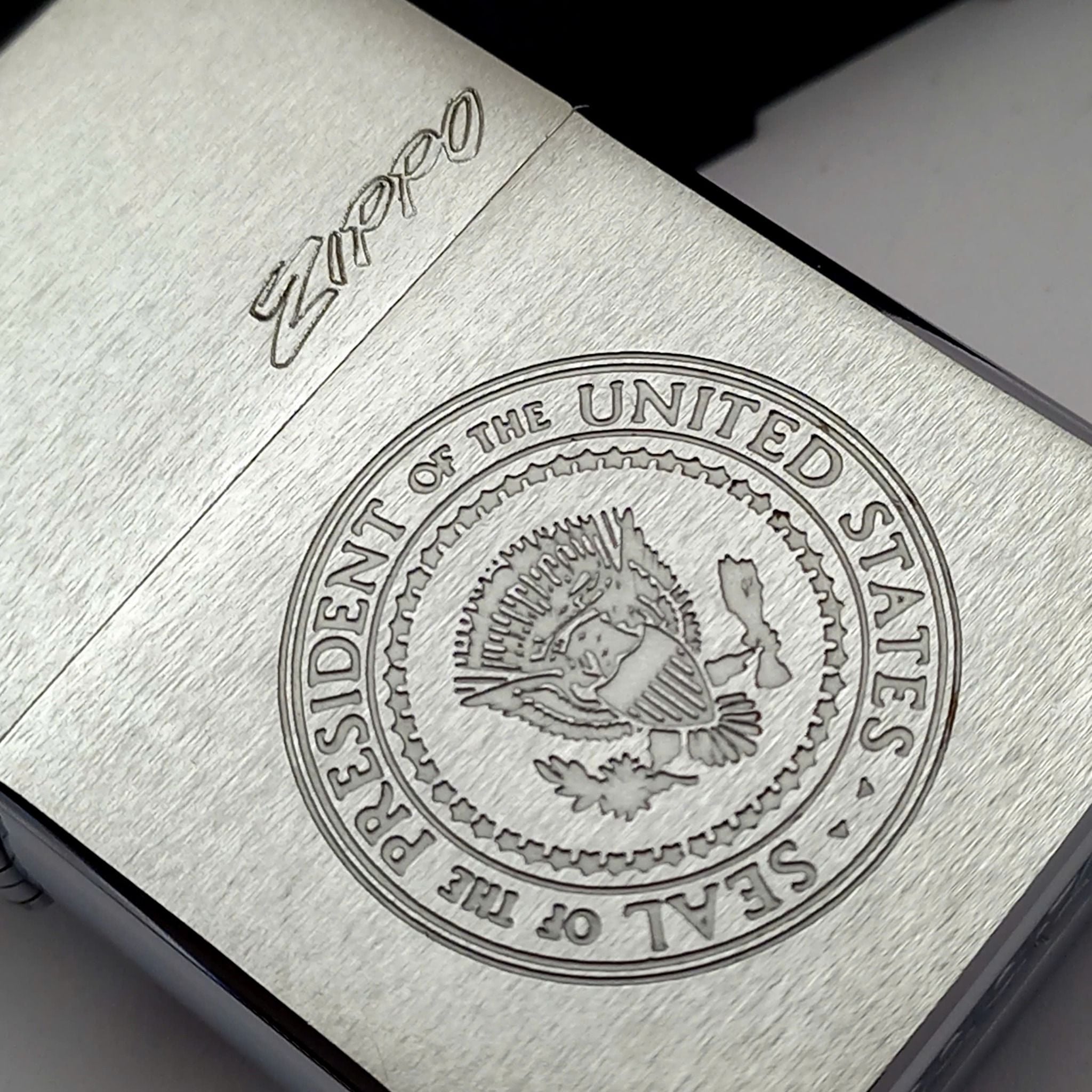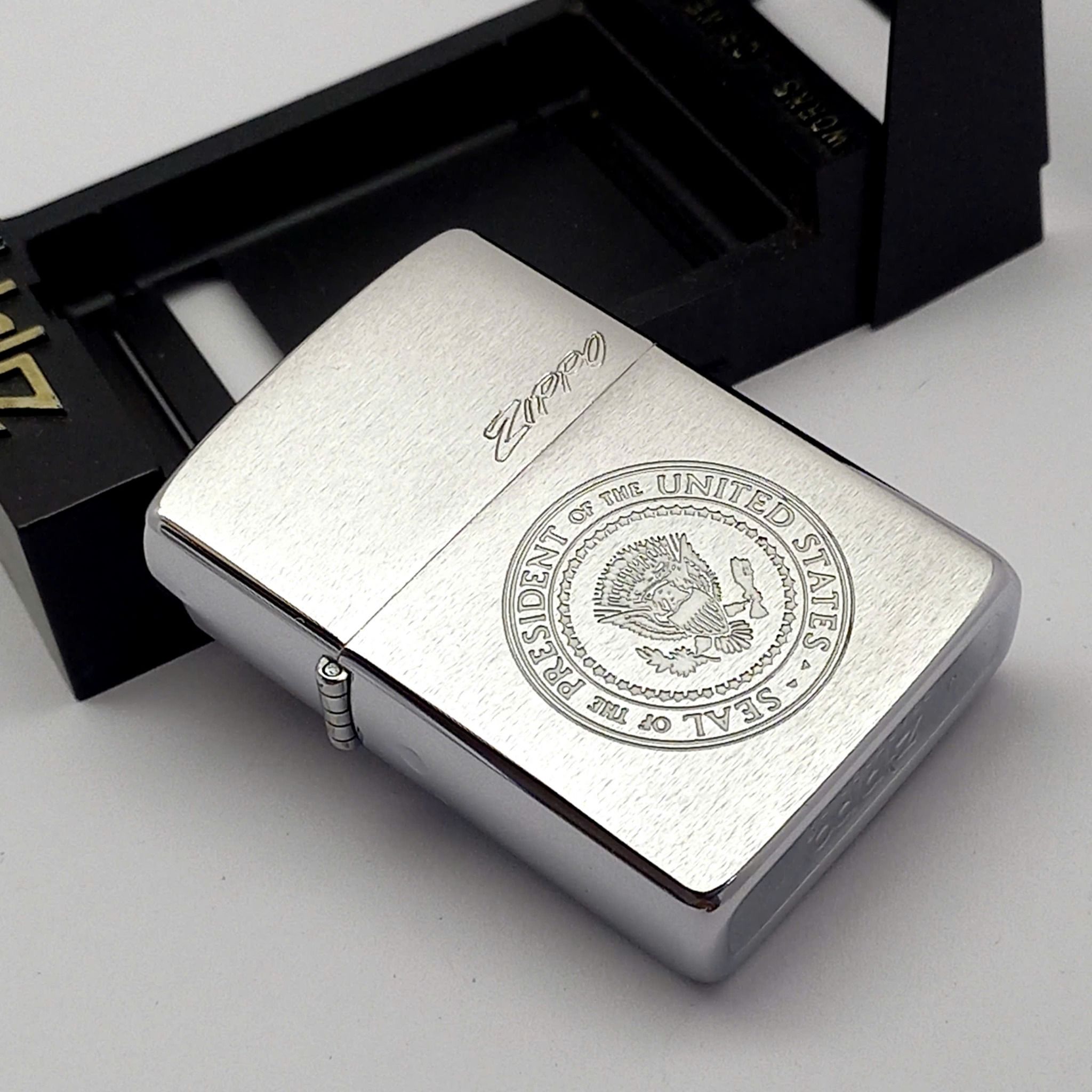 Bật Lửa Zippo Đồng Khối Mạ Chrome Phay Xước Ăn Mòn Con Dấu Tổng Thống Hoa Kỳ Hiếm Gặp Đời IV La Mã Năm 1988 ZQH186