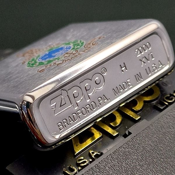 Bật Lửa Zippo Đồng Khối Mạ Chrome Phay Xước Chủ Đề Sơn Hấp Nhiệt Chính Hãng Đời XVI La Mã Năm 2000 ZL543