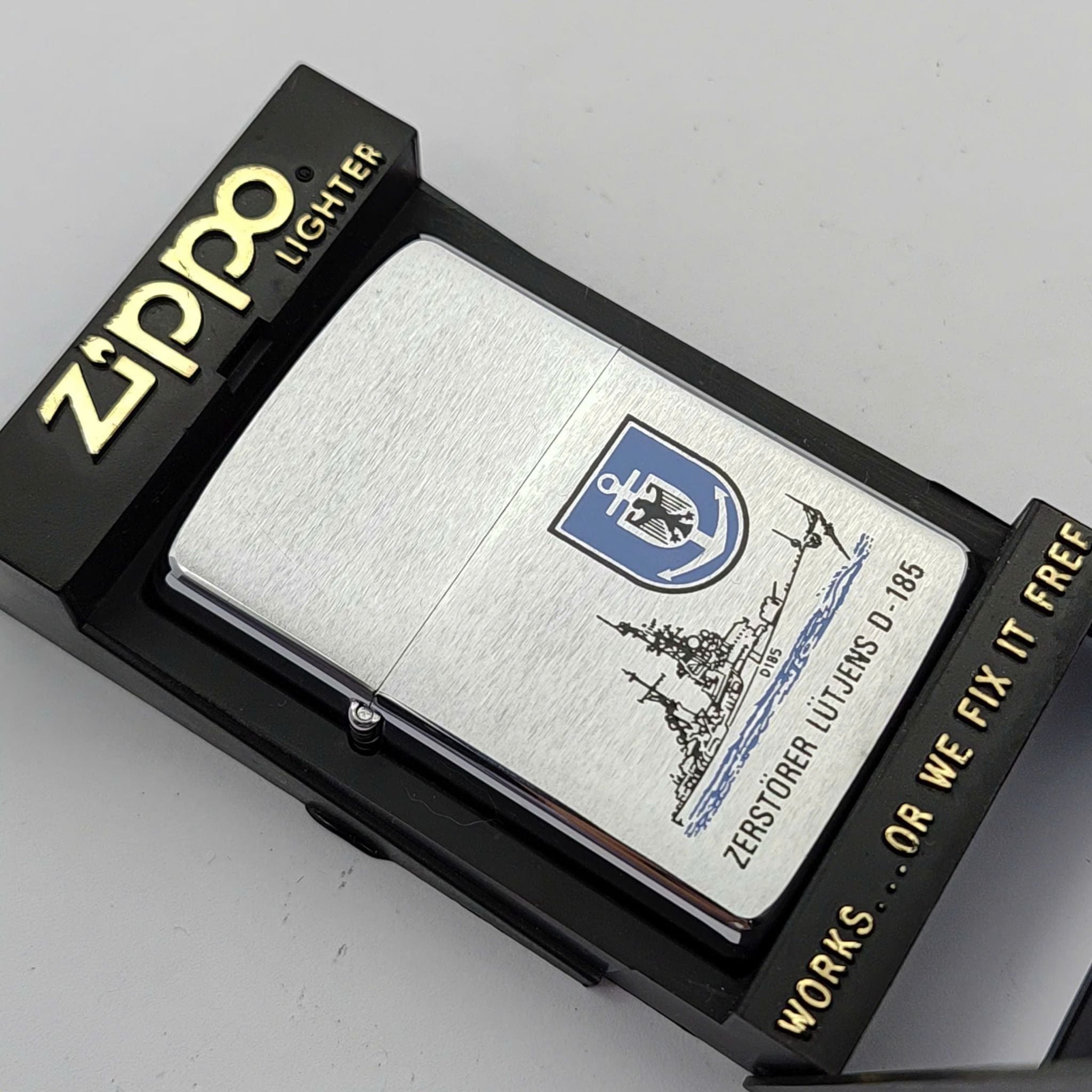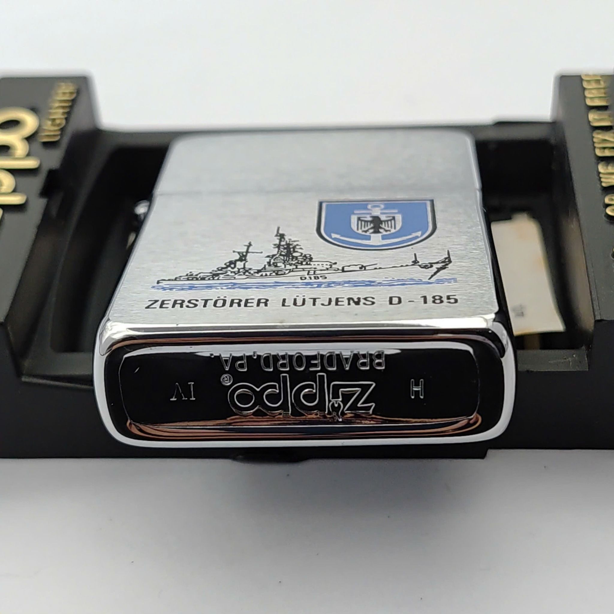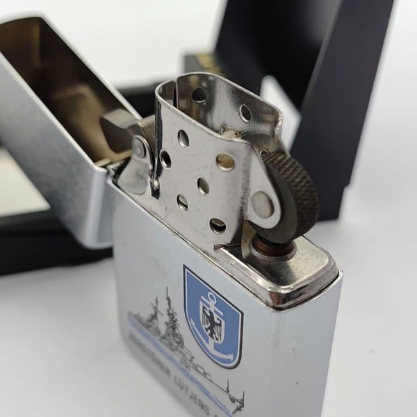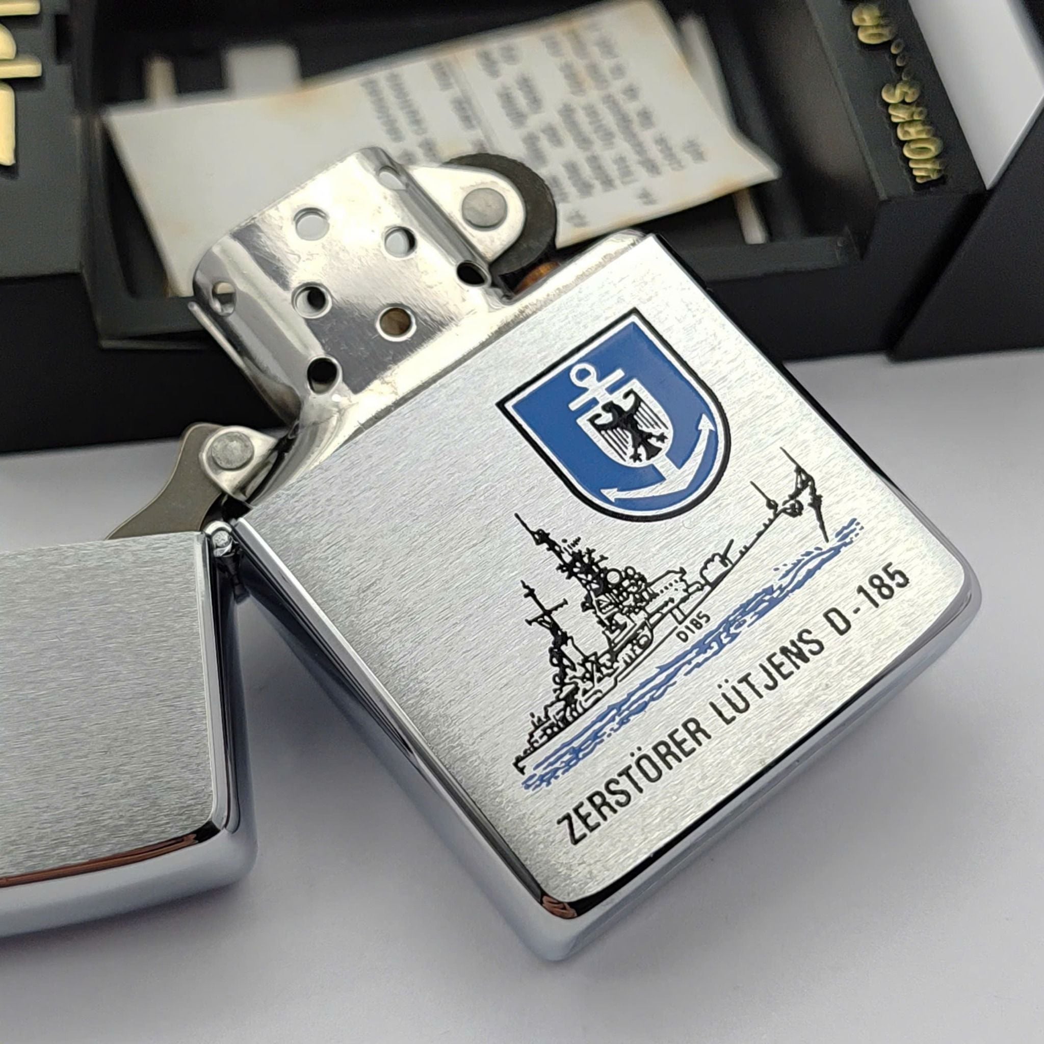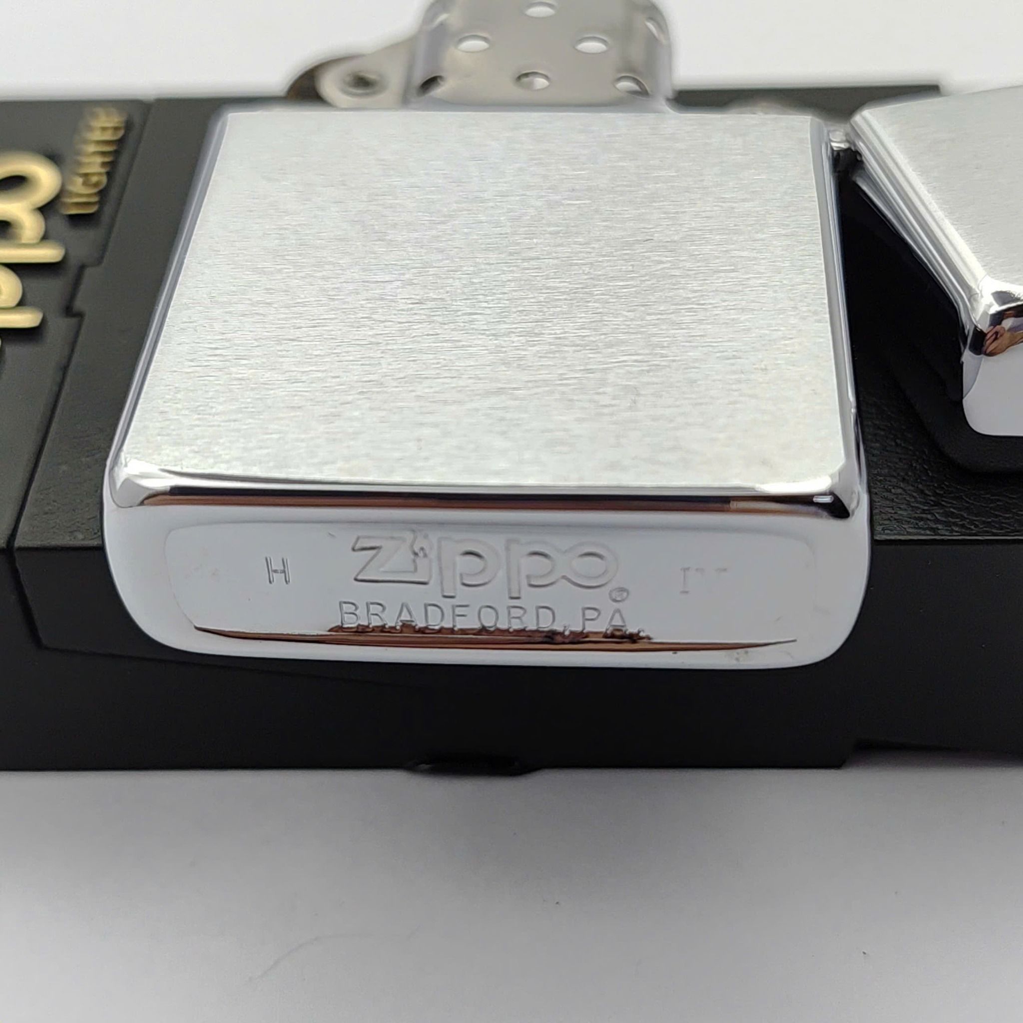 Bật Lửa Zippo Đồng Khối Mạ Chrome Phay Xước Khắc Ăn Mòn Chủ Đề Tàu Chiến Hiếm Gặp, Đời IV Sản Xuất Năm 1988 ZL764