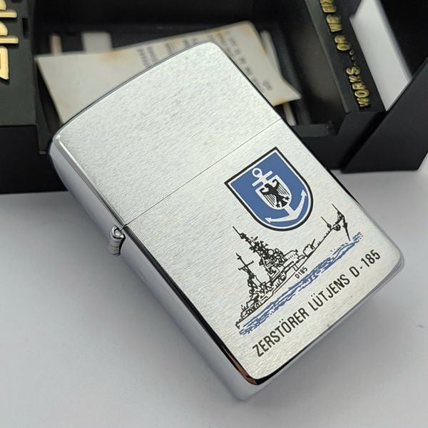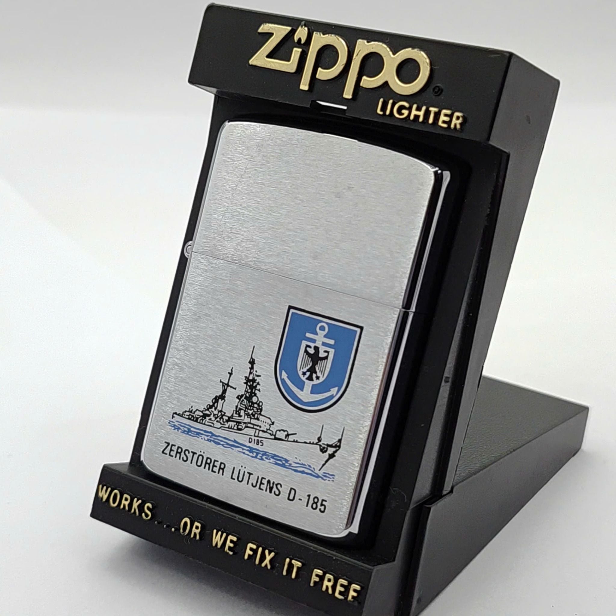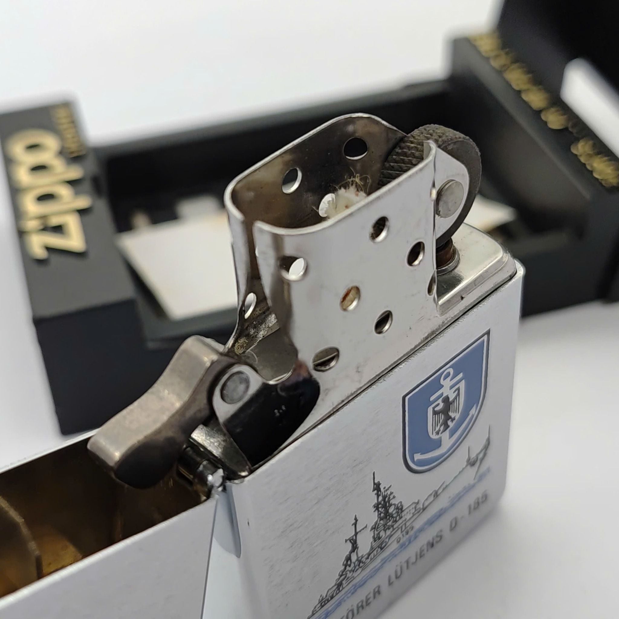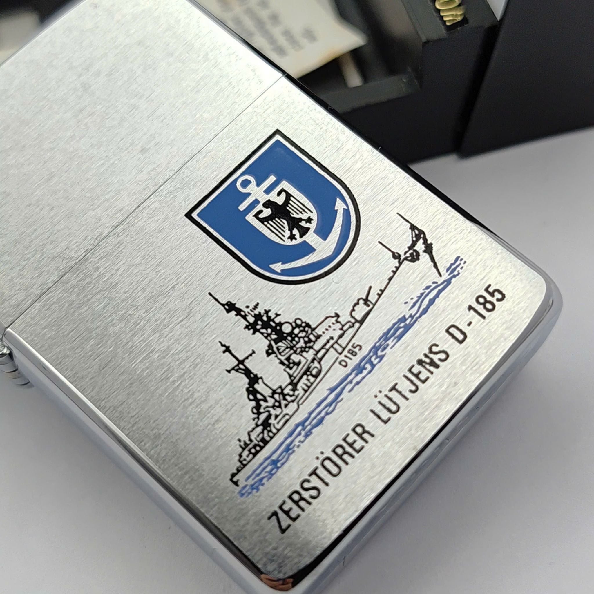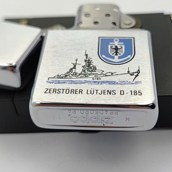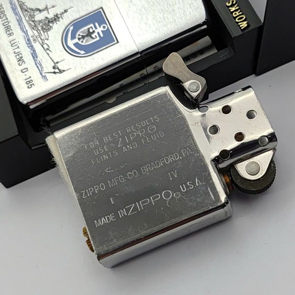 Bật Lửa Zippo Đồng Khối Mạ Chrome Phay Xước Khắc Ăn Mòn Chủ Đề Tàu Chiến Hiếm Gặp, Đời IV Sản Xuất Năm 1988 ZL764