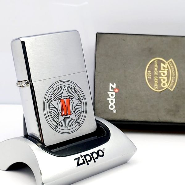 Bật Lửa Zippo Đồng Khối Mạ Chrome Phay Xước Vintage Chủ Đề Marlboro Ngôi Sao Năm 2003 ZL410