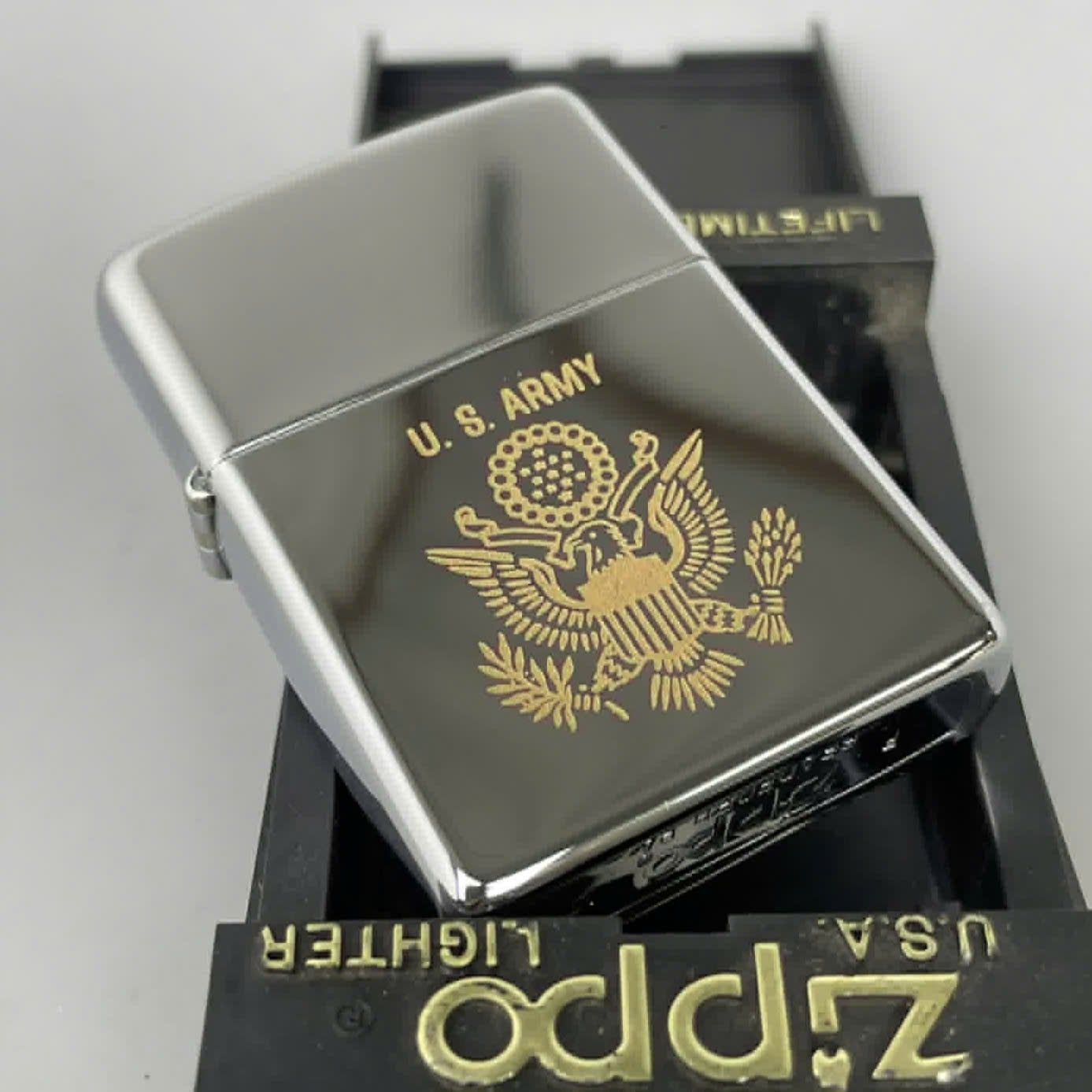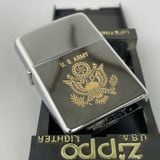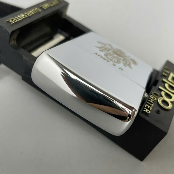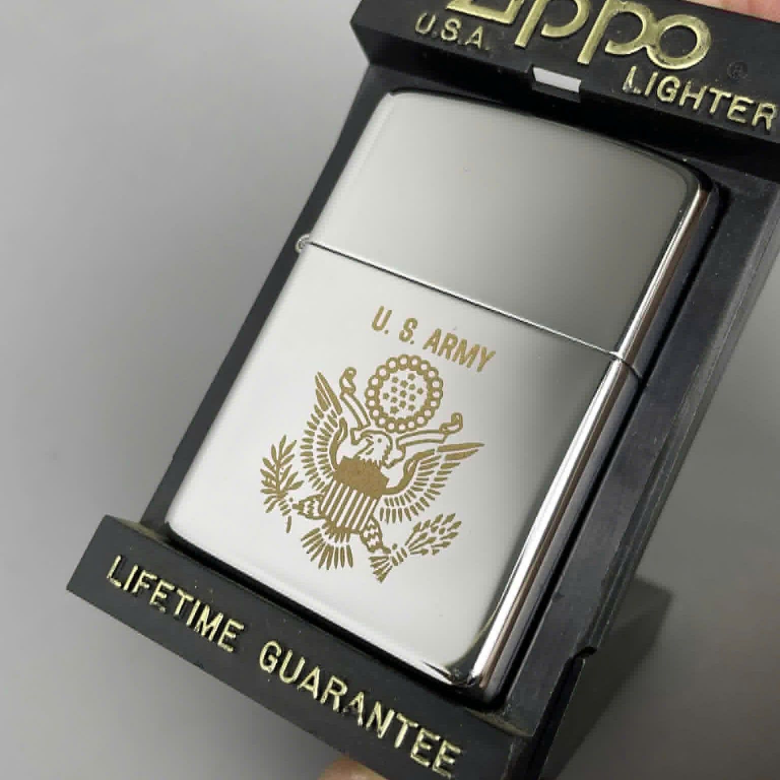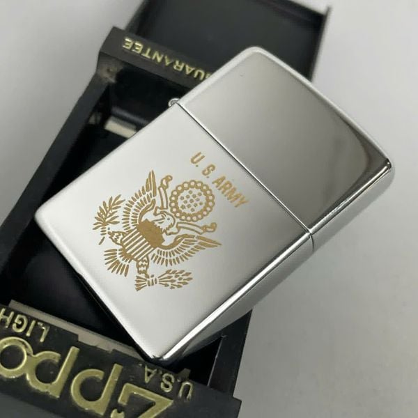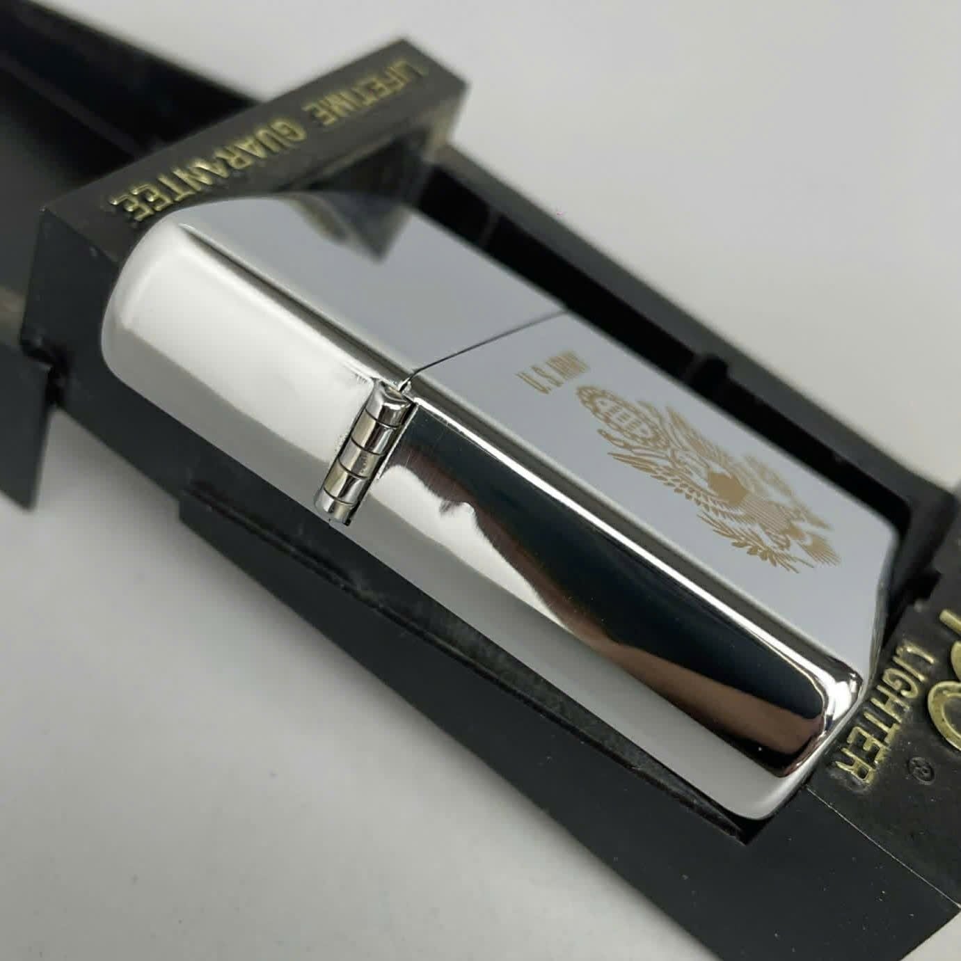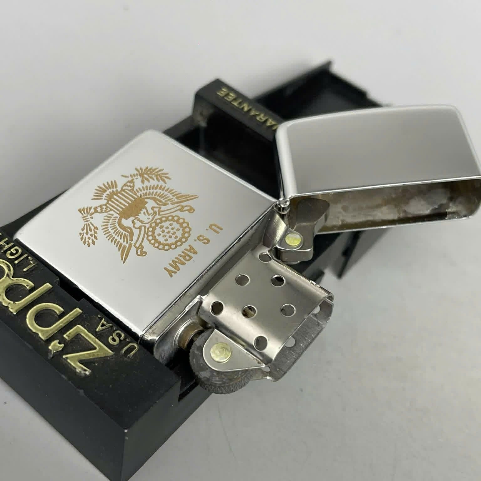 Bật Lửa Zippo Đồng Khối Mạ Chrome Trắng Bóng Logo Quân Sự Đời VI La Mã Sản Xuất Năm 1990 ZL788