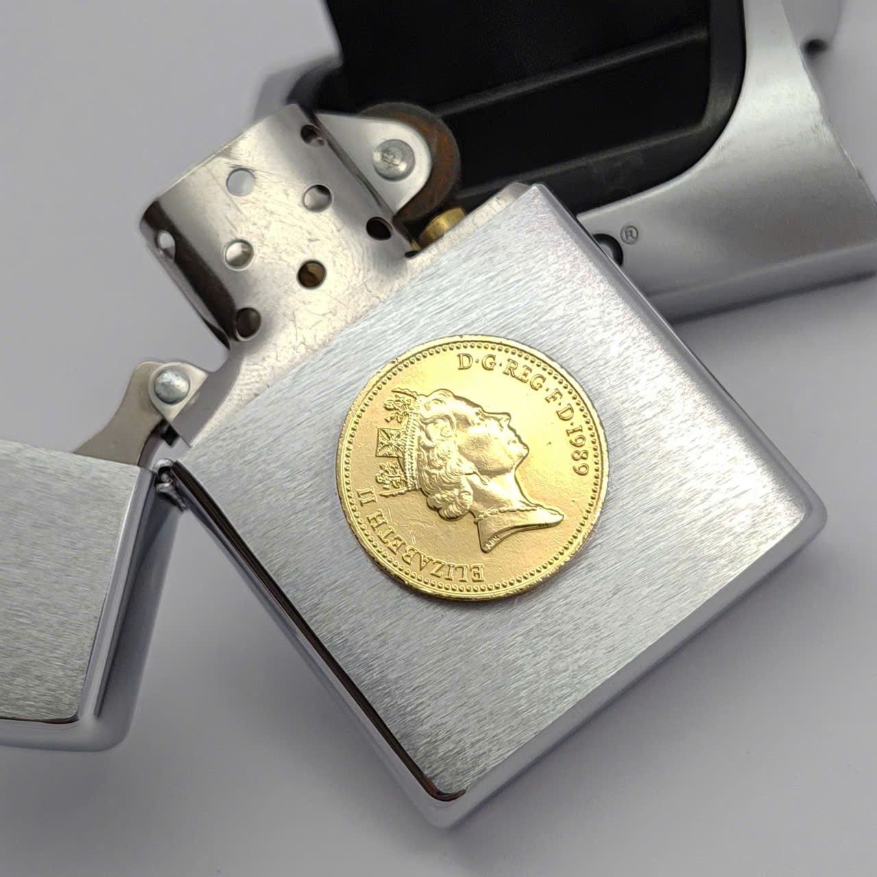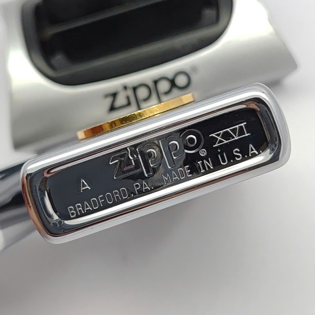 Bật Lửa Zippo Đồng Khối Mạ Chrome Trắng Phay Xước Emblem Đời XVI La Mã Năm 2000 ZL742