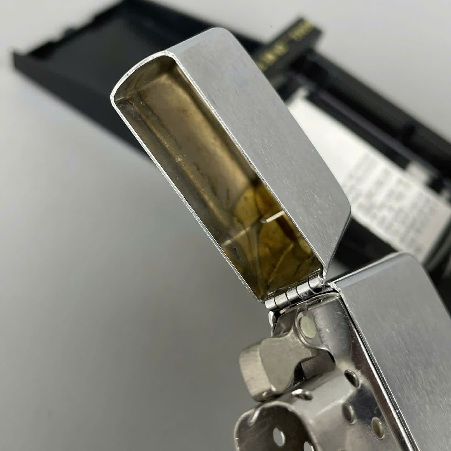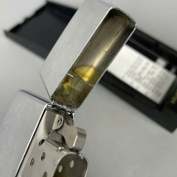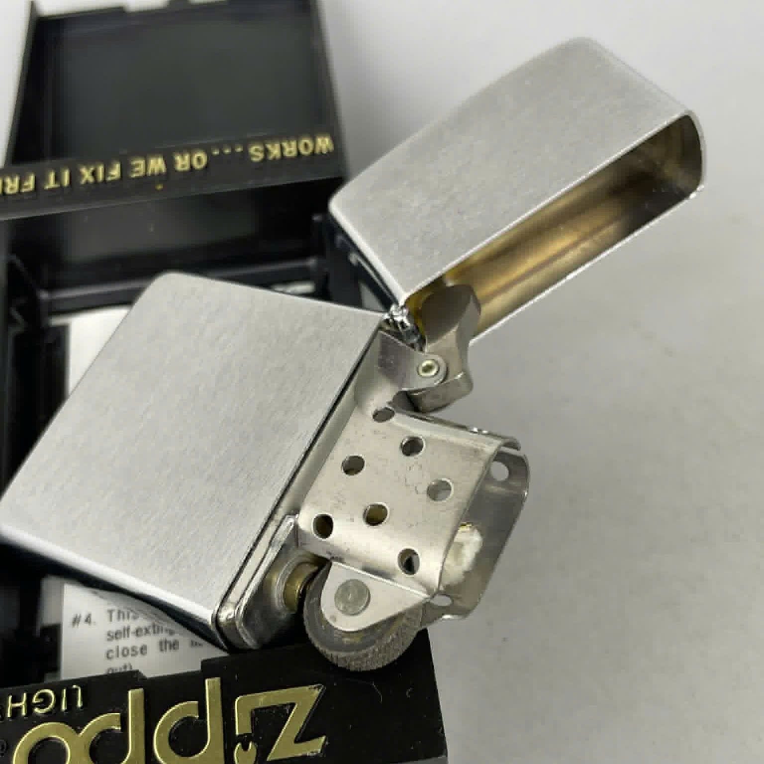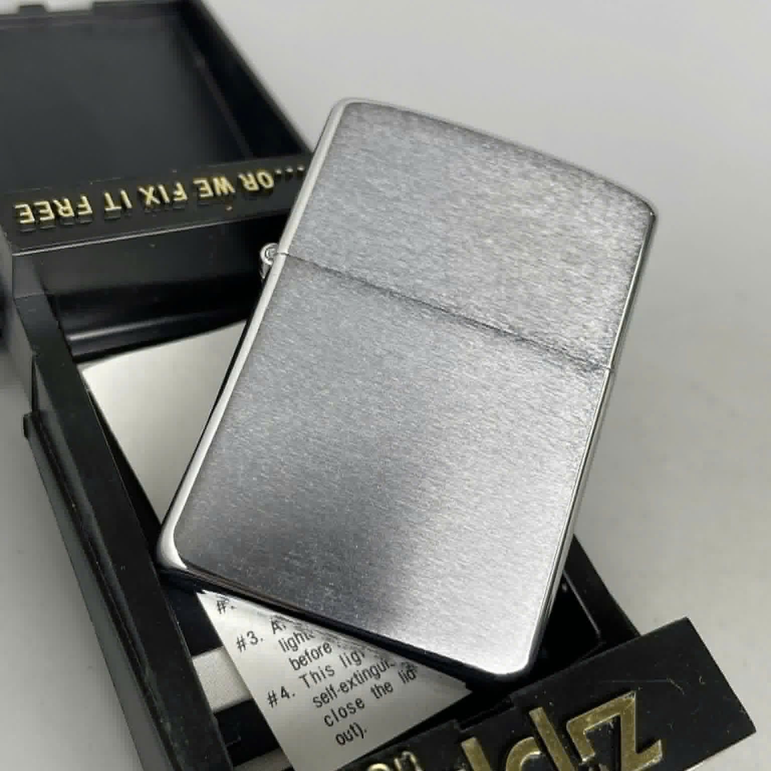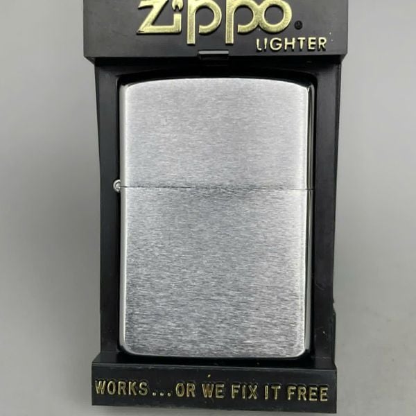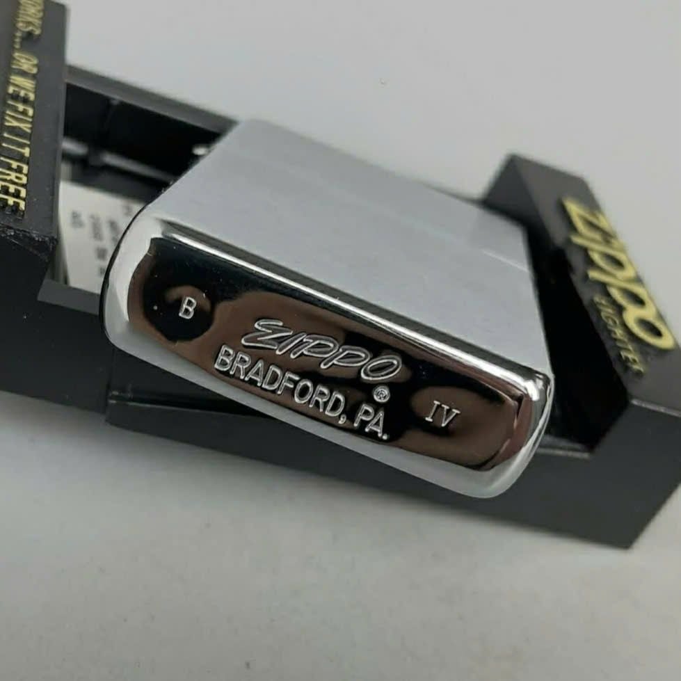 Bật Lửa Zippo Đồng Khối Mạ Chrome Trắng Trơn Phay Xước Chữ Xéo Đời IV La Mã Sản Xuất Năm 1988 ZL785