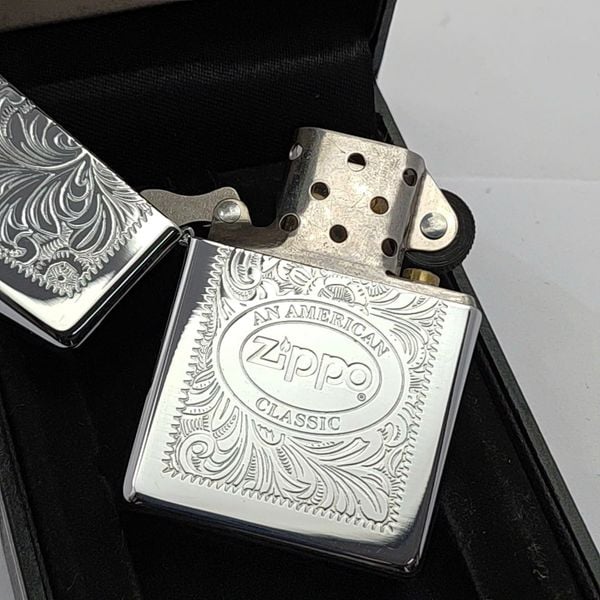 Bật Lửa Zippo Đồng Khối Mạ Chrome Venetian Logo Zippo, Bản Xuất Châu Âu Cực Hiếm Gặp Đời XV La Mã Năm 1999 ZL781