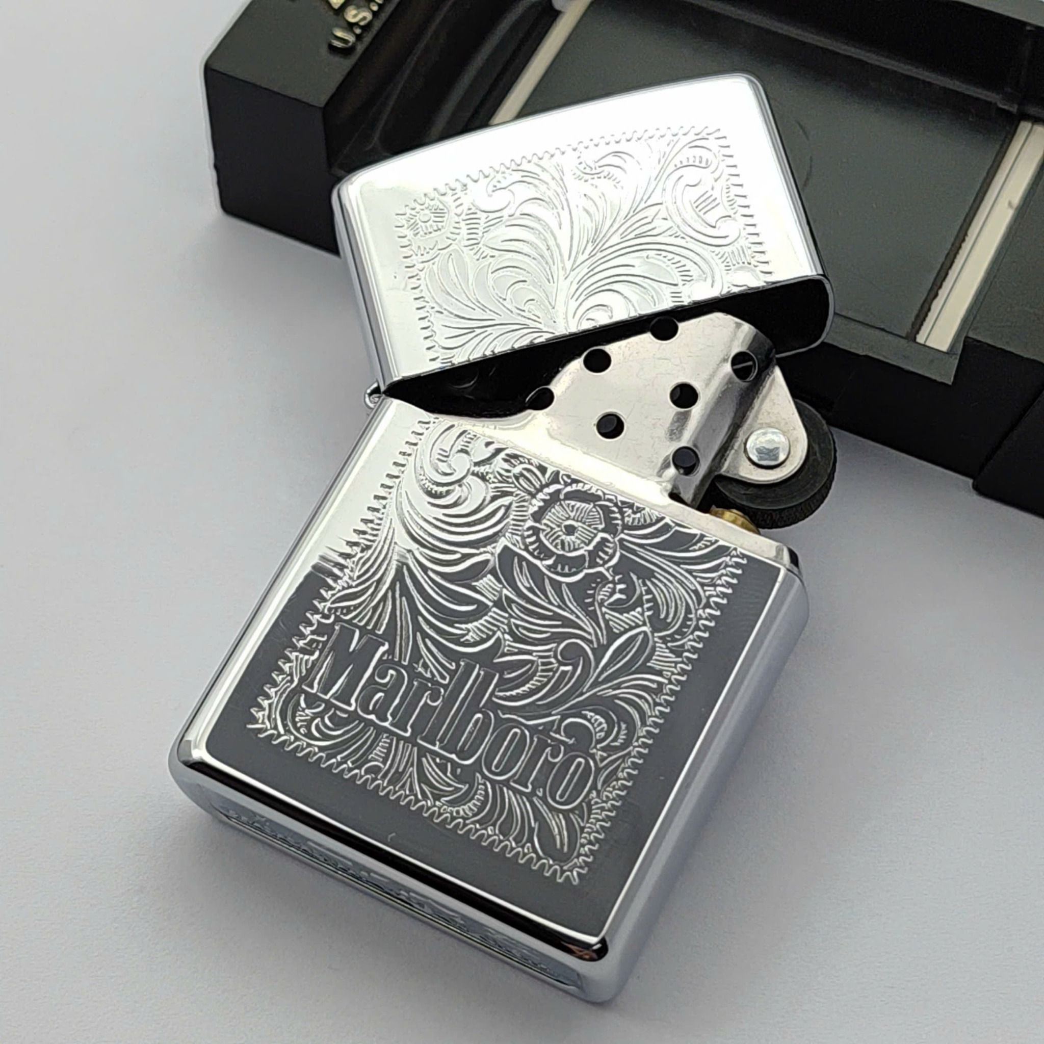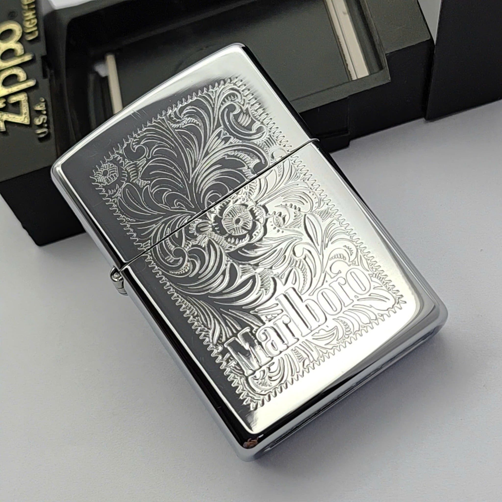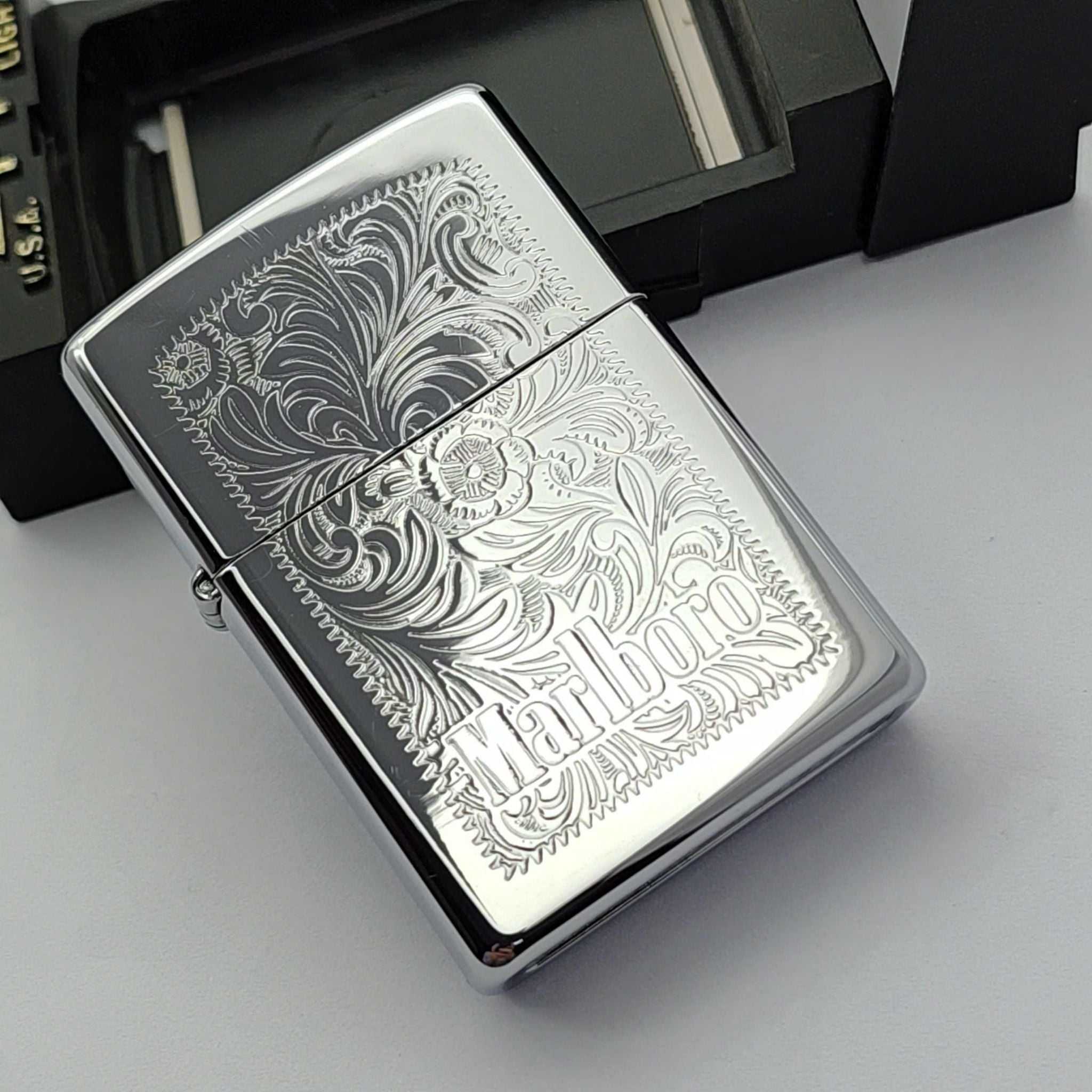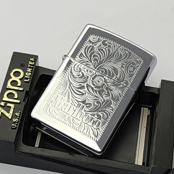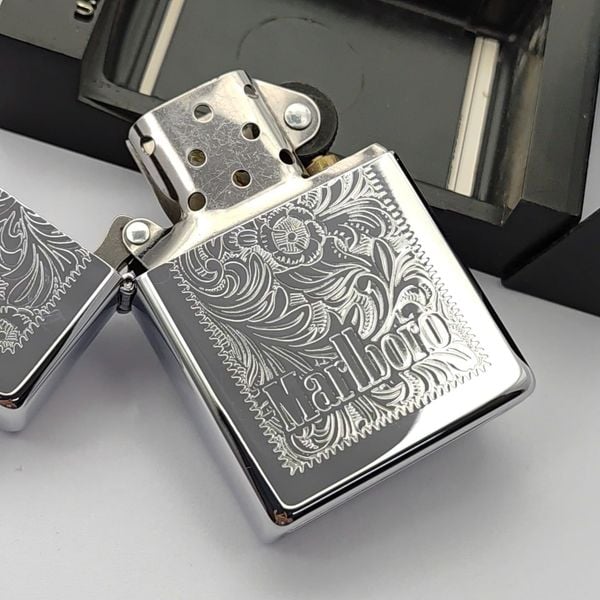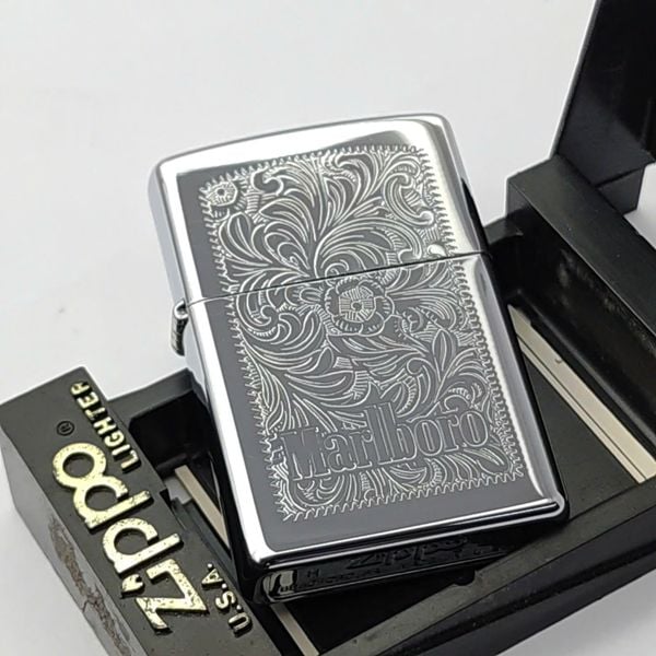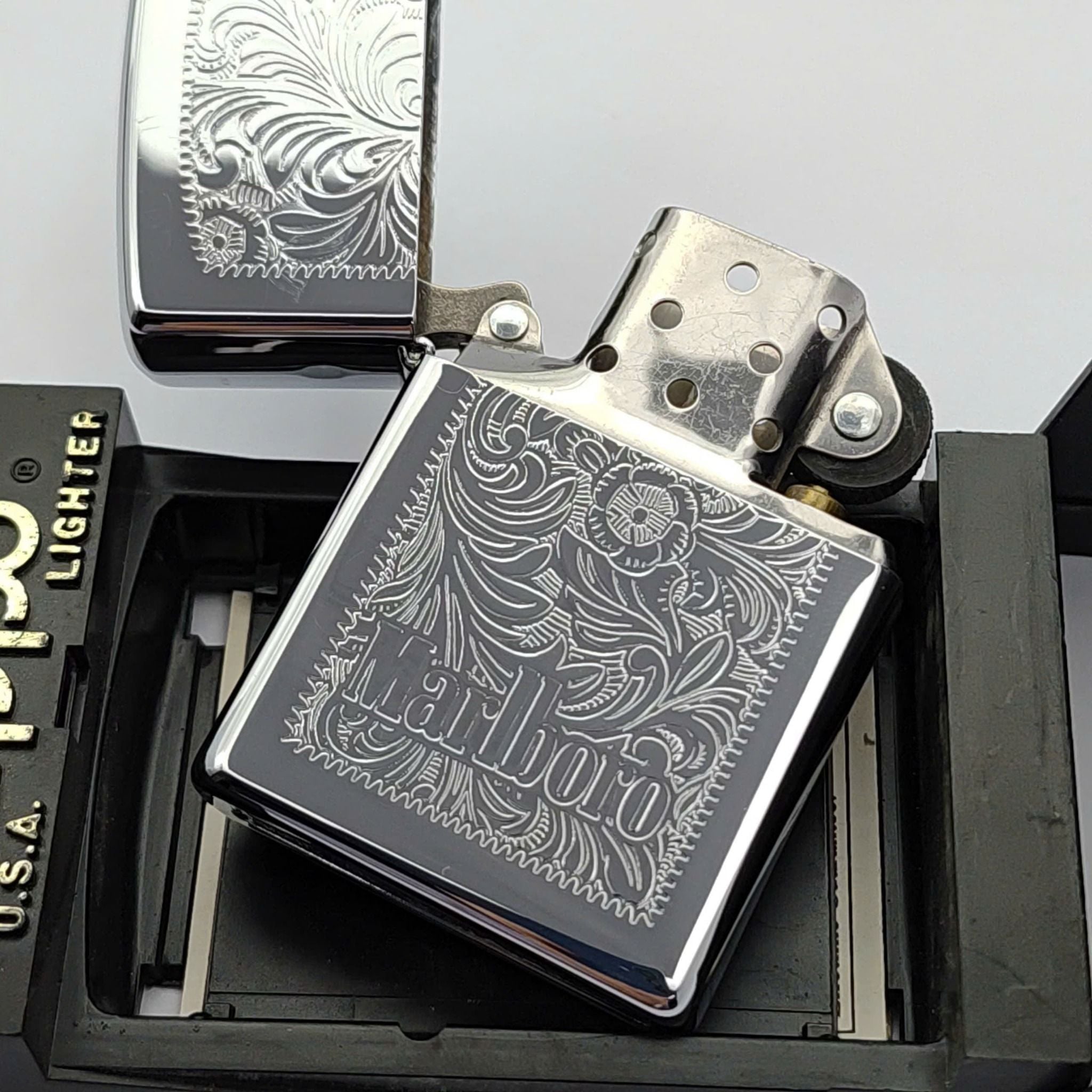 Bật Lửa Zippo Đồng Khối Mạ Chrome Venetian Marlboro Chính Hãng Bản Xuất Châu Âu Hiếm Gặp Đời XV La Mã Năm 1999 ZL768