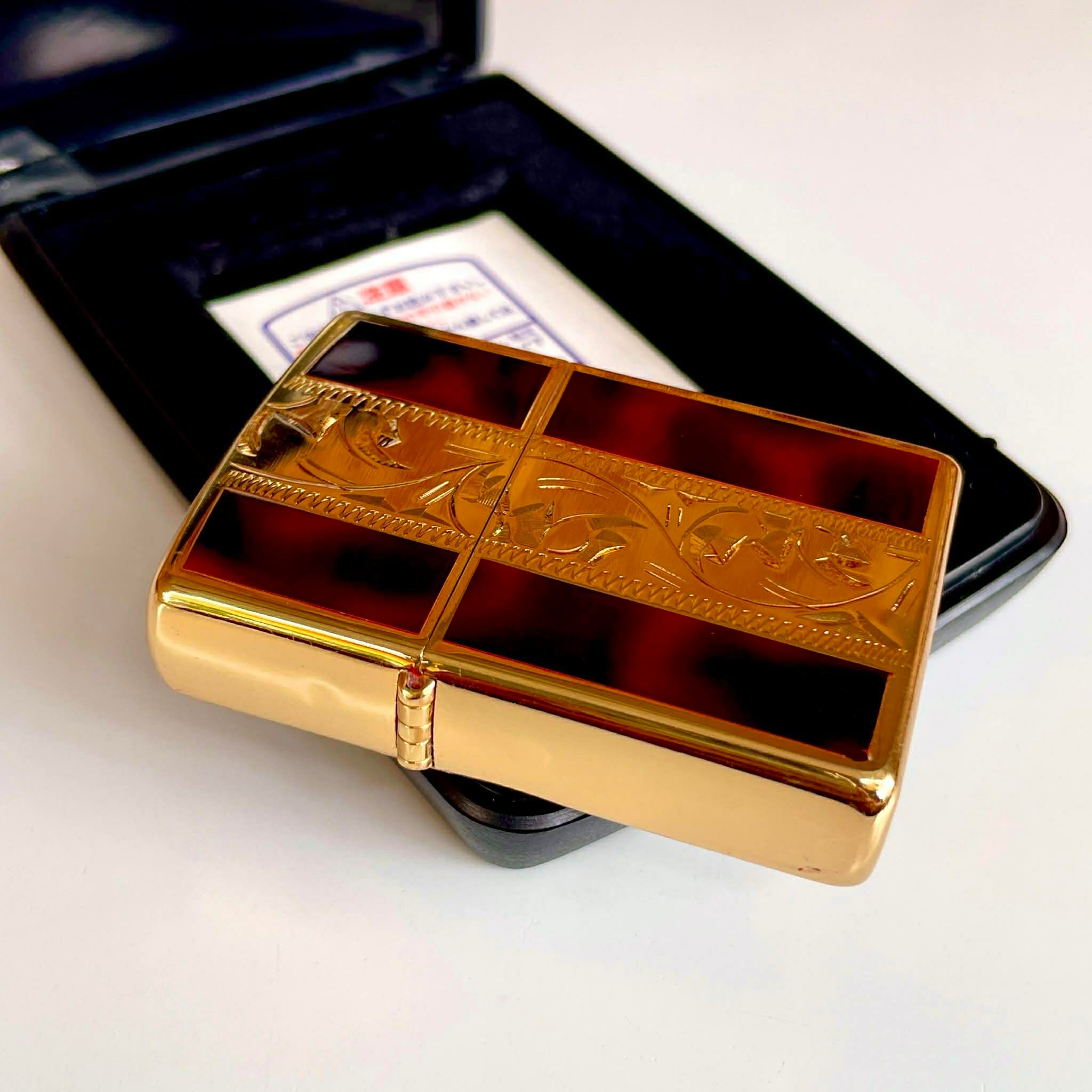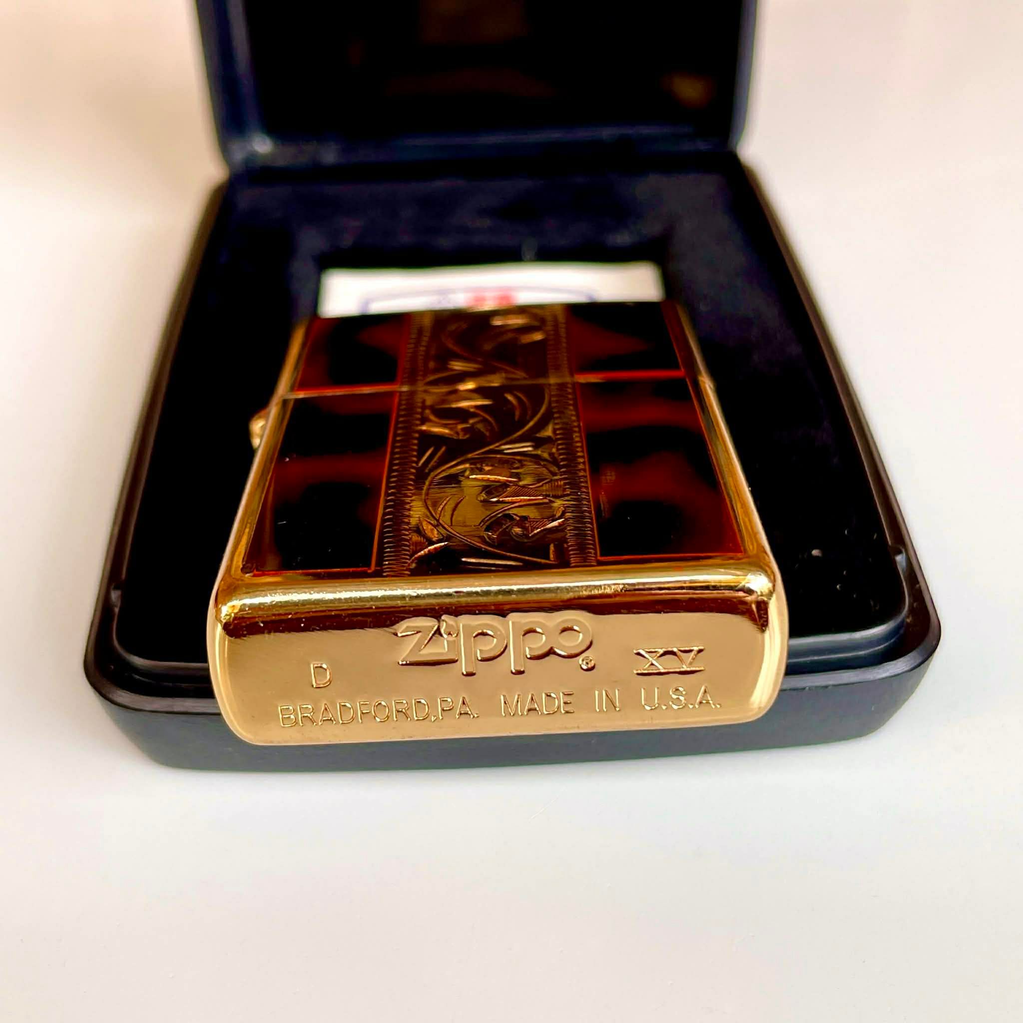 Bật Lửa Zippo Đồng Khối Mạ Vàng Gold Hoa Văn Men Cánh Gián Đời XV Năm 1999 ZL797