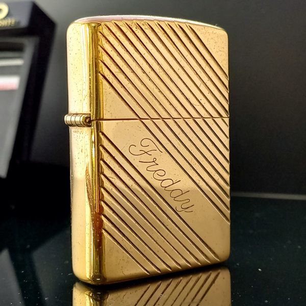 Bật Lửa Zippo Đồng Khối Mạ Vàng Vân Chéo Năm 1995 đời XI La Mã Gold Plated ZL378
