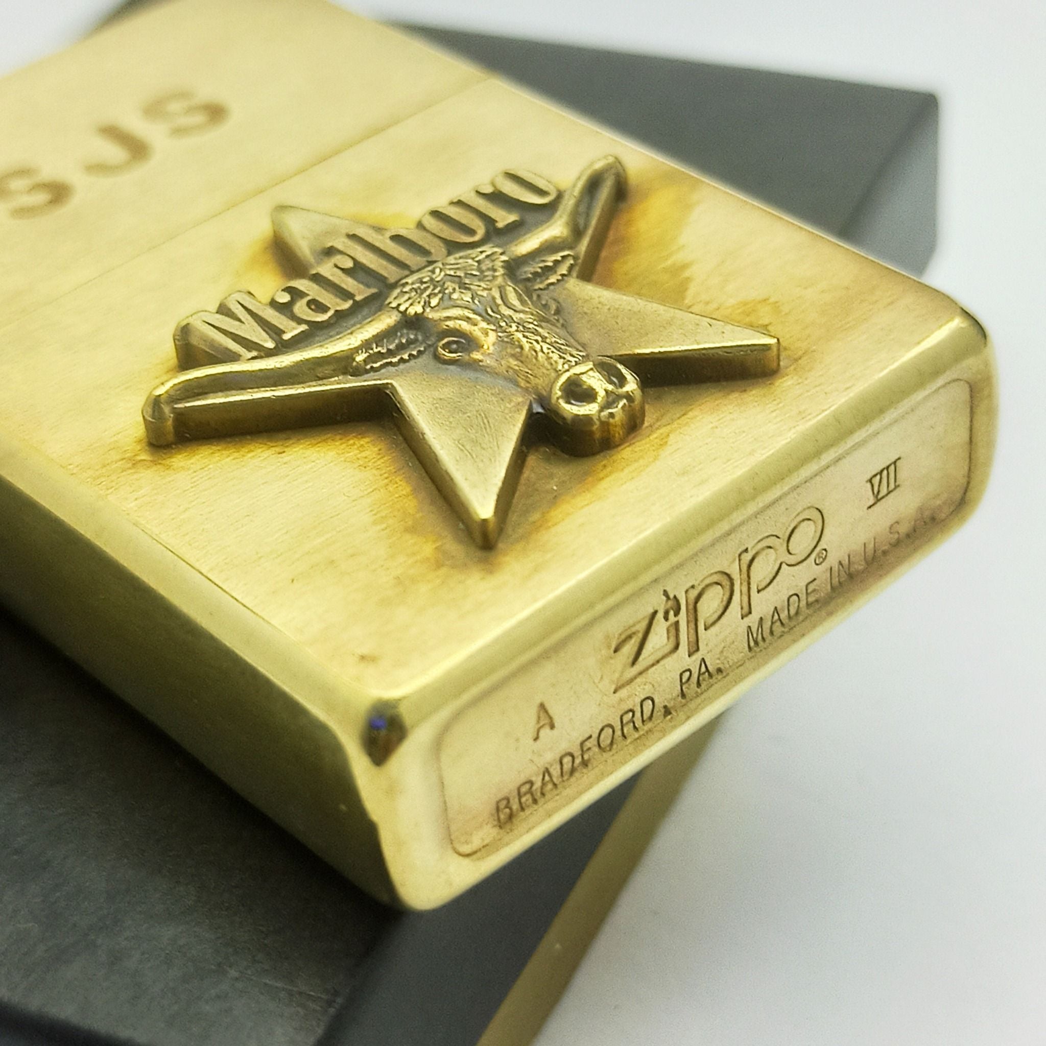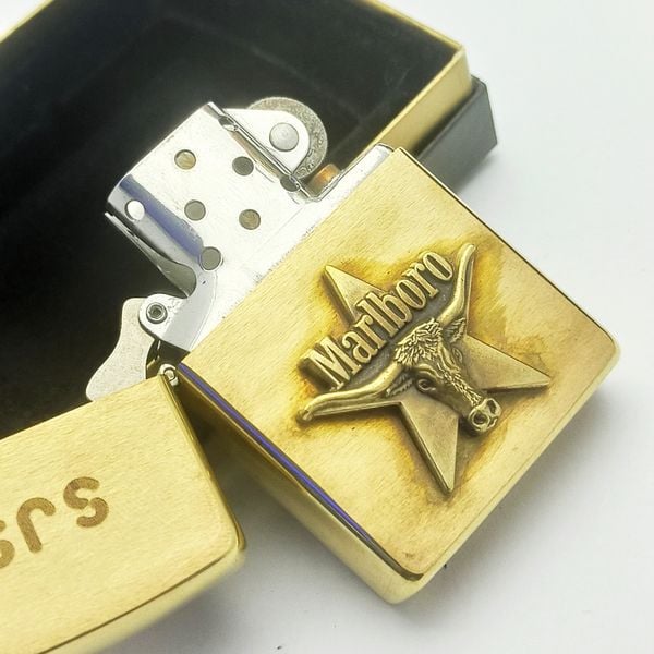Bật Lửa Zippo Đồng Khối Marlboro Longhorns Đầu Bò Đời VII La Mã Năm 1991 Cực Hiếm ZQH128
