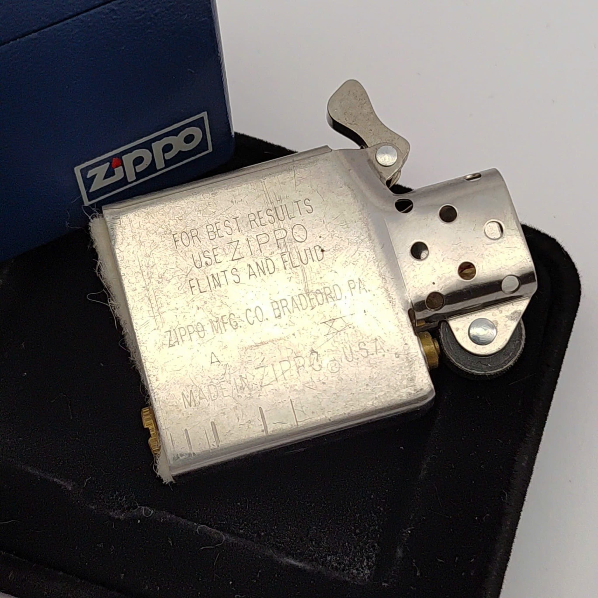 Bật Lửa Zippo Đồng Khối Phủ Sơn Tĩnh Điện Xanh Navy Logo Zippo Mộc Đáy Kép Đời XVI Năm 2000 ZL748