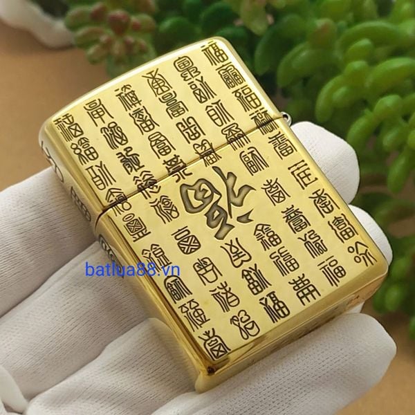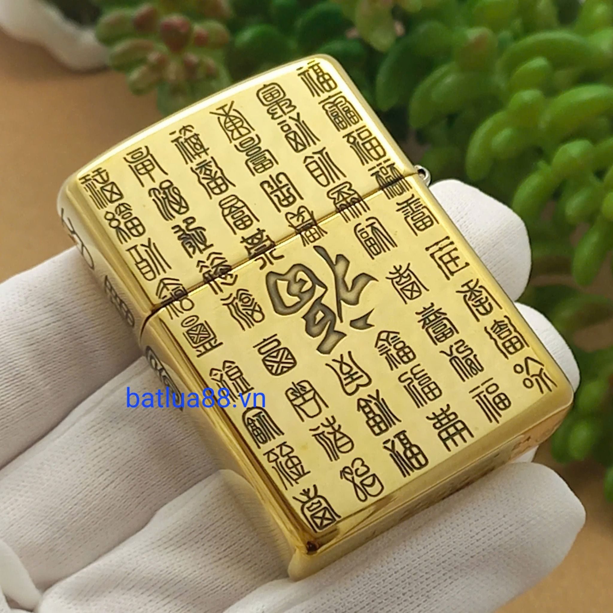 Bật Lửa Zippo Đồng Nguyên Khối Armor Vỏ Dày Chủ Đề Bách Phúc Đồ - 100 Chữ Phúc Cực Đẹp Và May Mắn ZKB100
