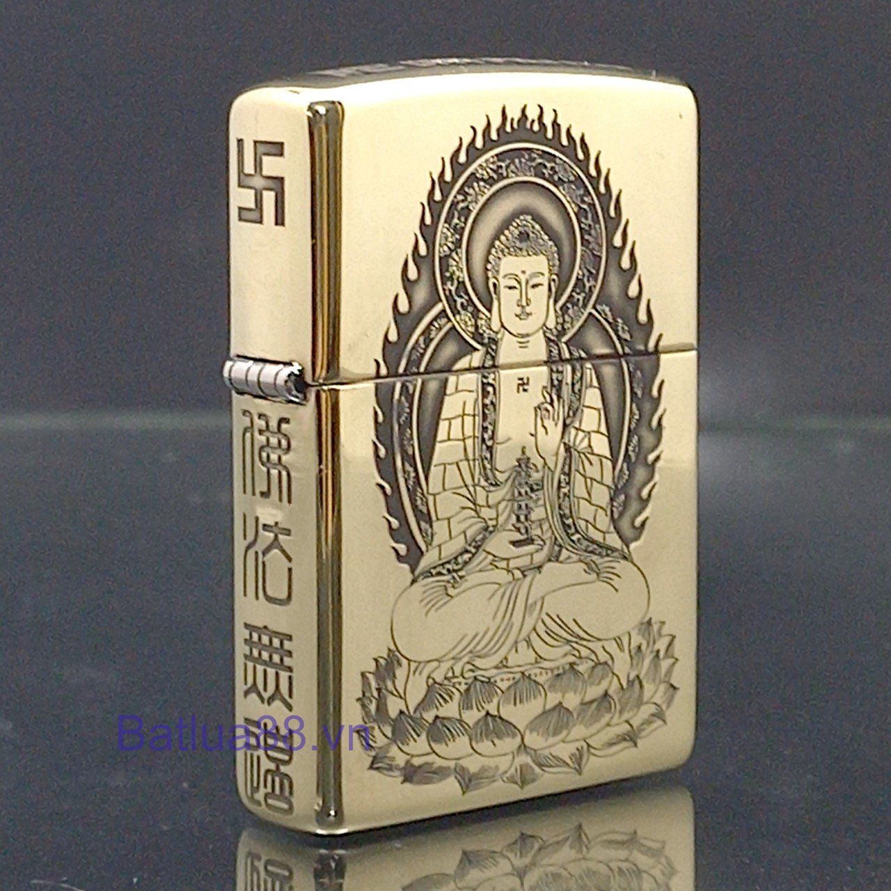 Bật Lửa Zippo Đồng Nguyên Khối Chủ Đề Đức Phật Dược Sư Tọa Đài Sen ZKB99